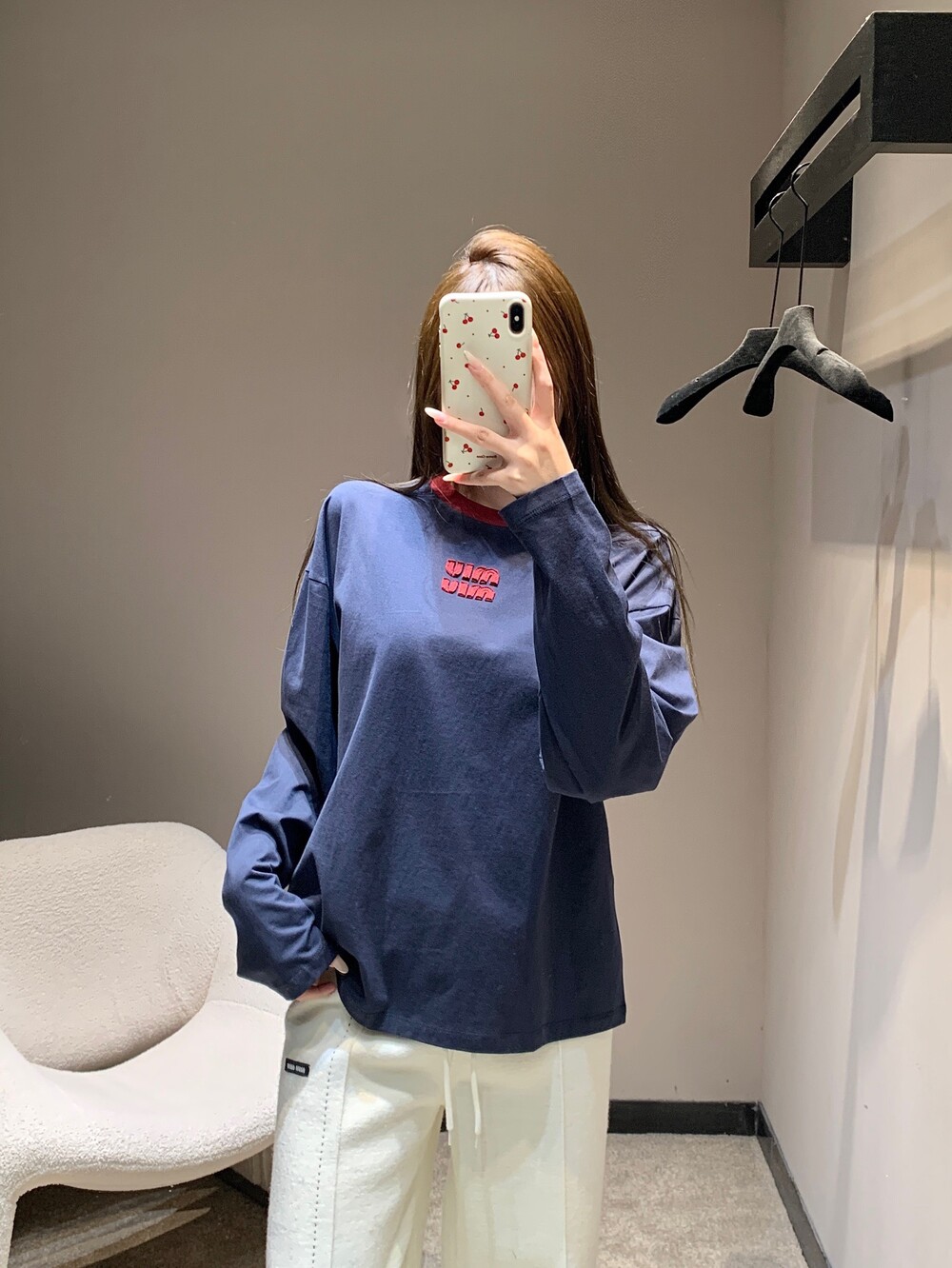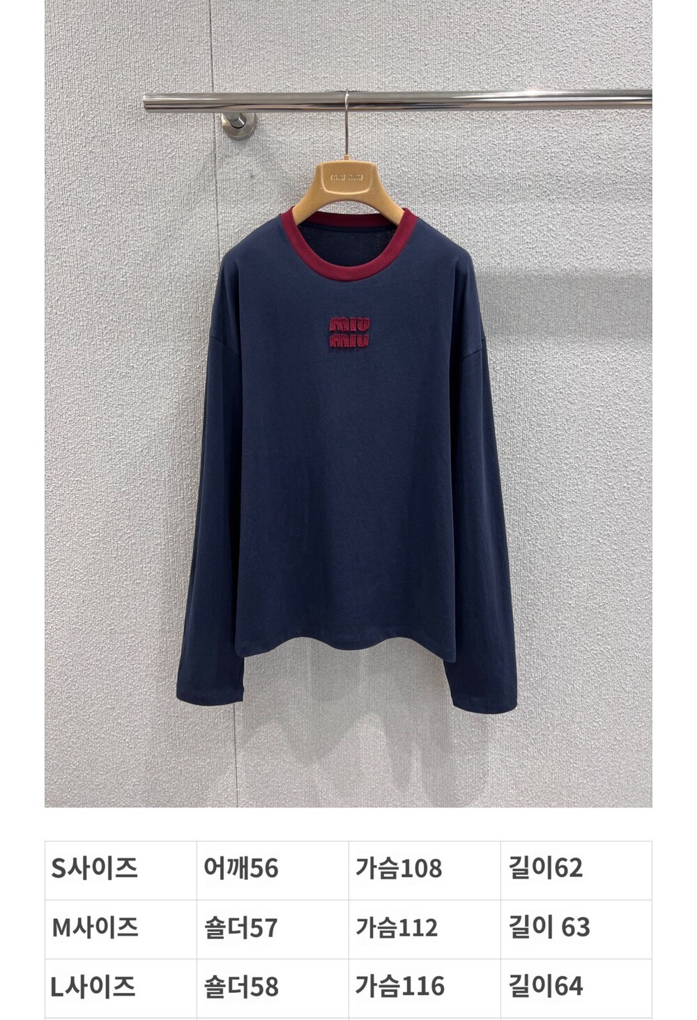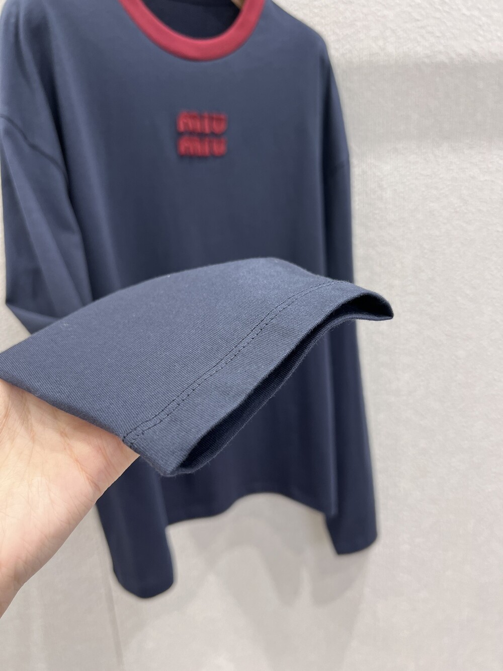 미우미우 롱 슬리브 코튼 저지 티셔츠