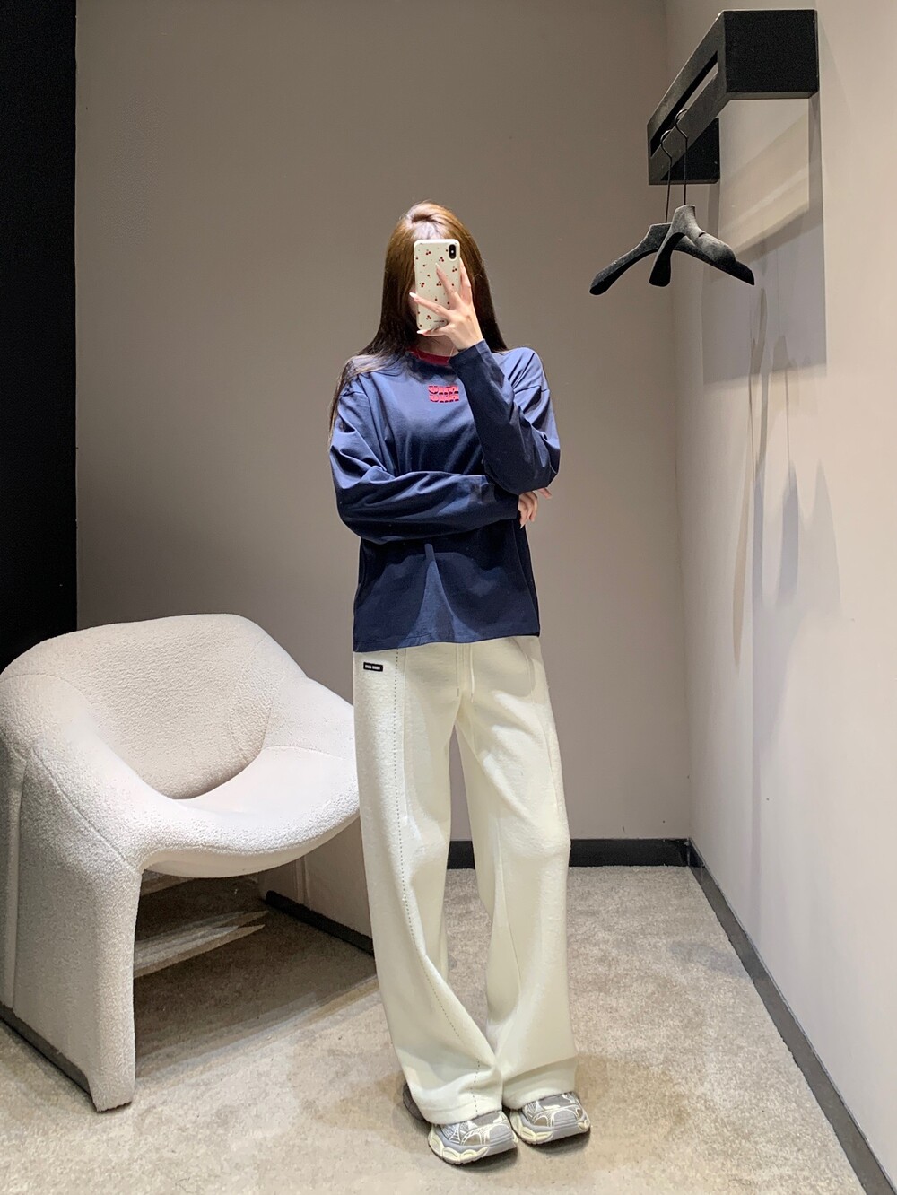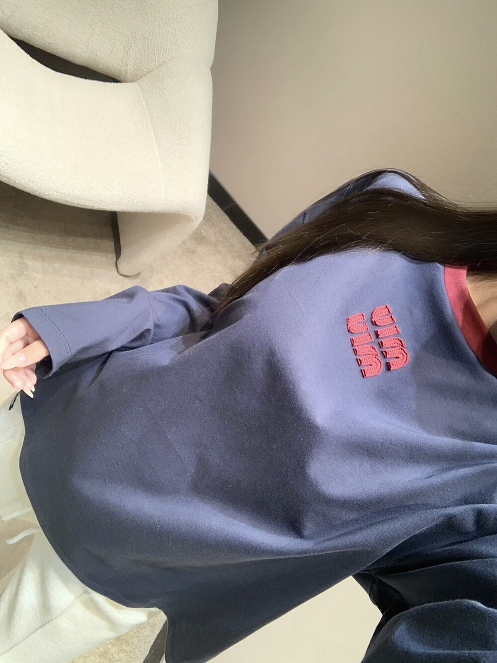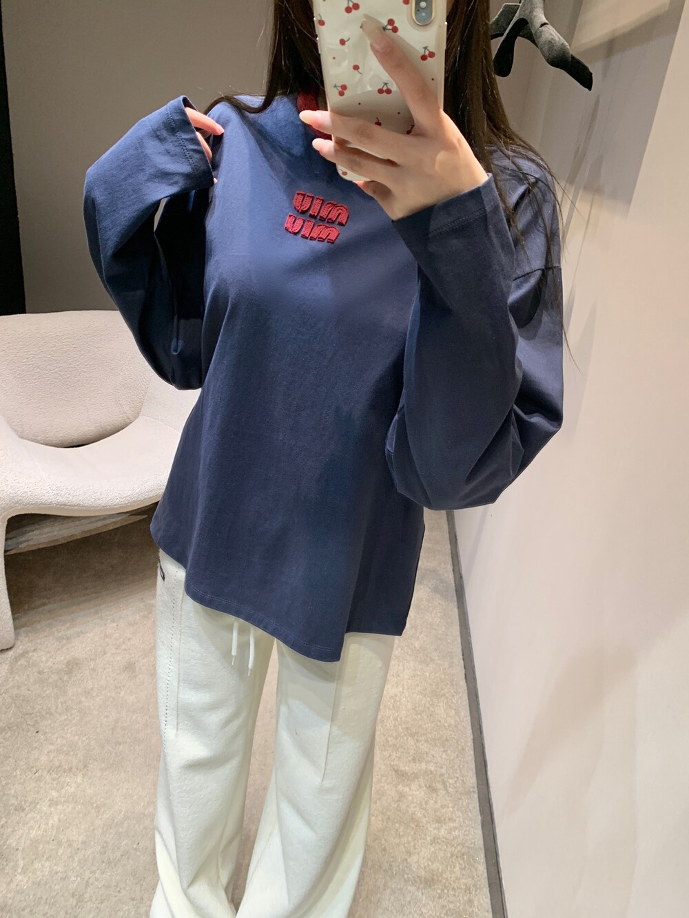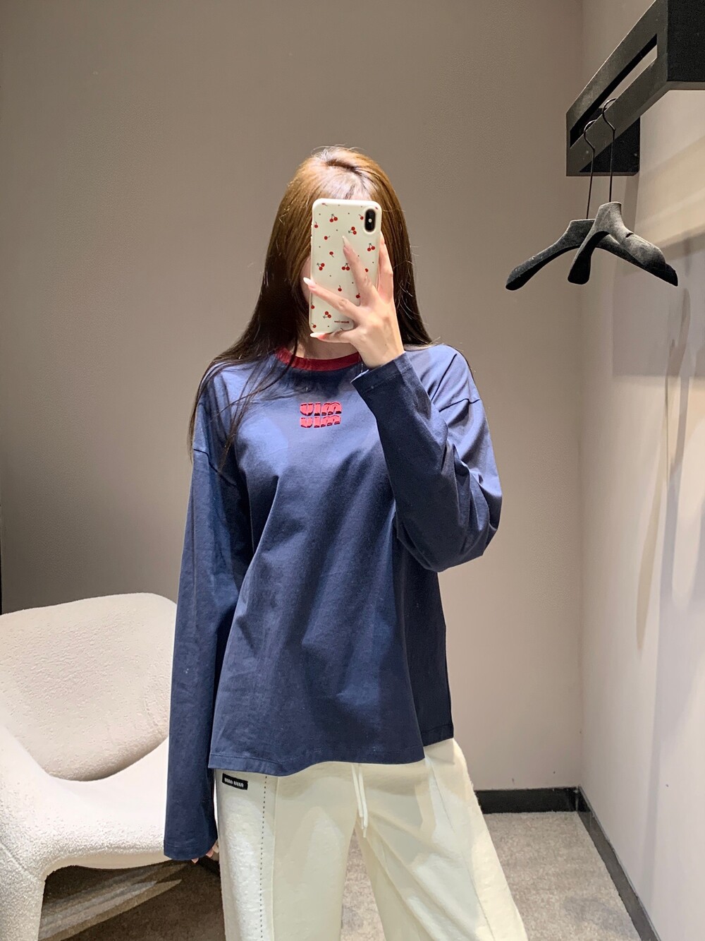 미우미우 롱 슬리브 코튼 저지 티셔츠