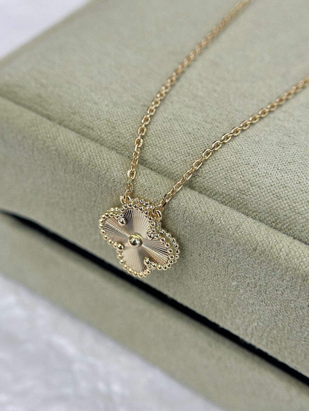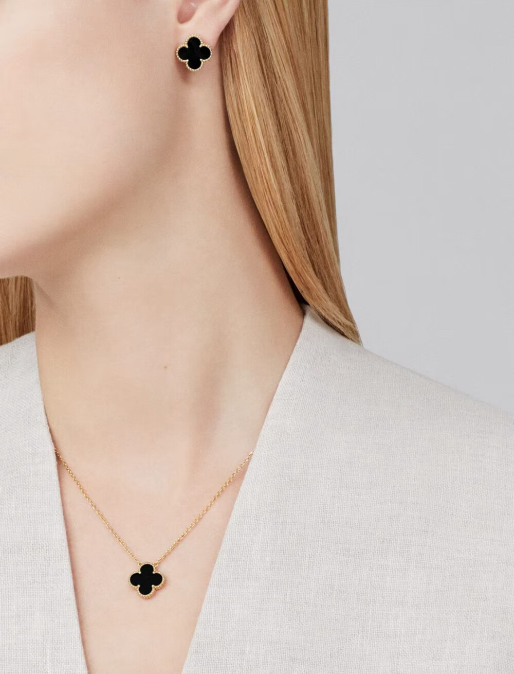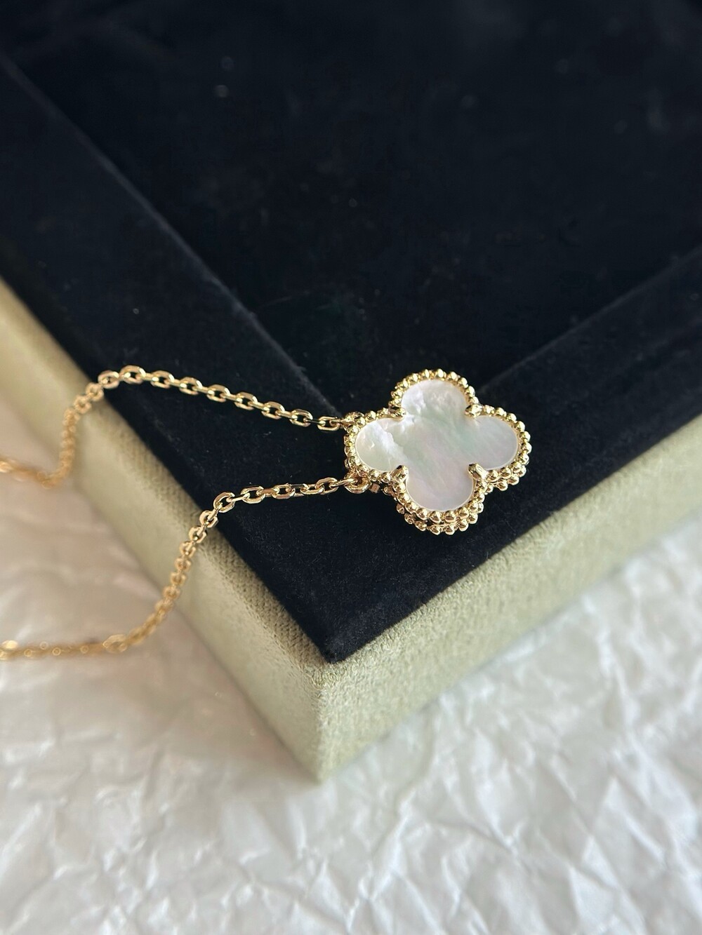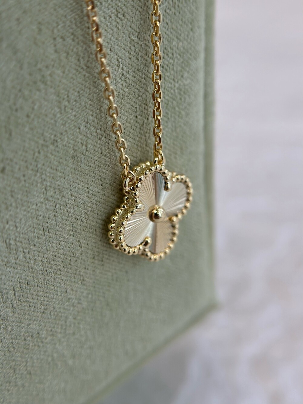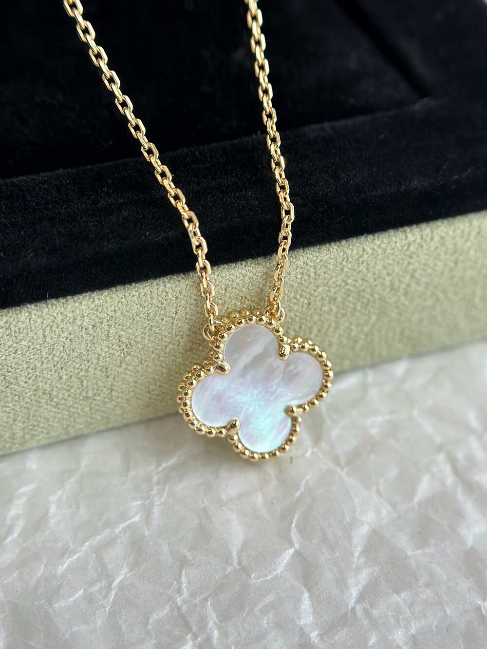 1968년에 첫 선을 보인 반클리프 아펠의 빈티지 알함브라 주얼리 컬렉션은 시대를 초월한 우아한 품격으로 널리 사랑받고 있습니다. 행운을 상징하는 네잎 클로버 형태의 작품 가장자리에는 골드 비즈가 장식되어 있습니다.