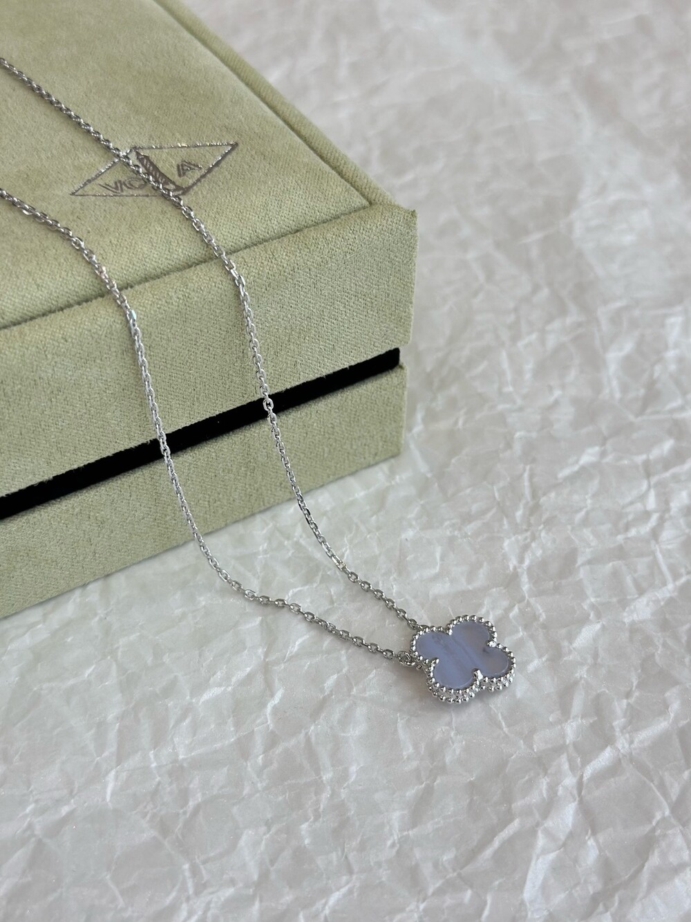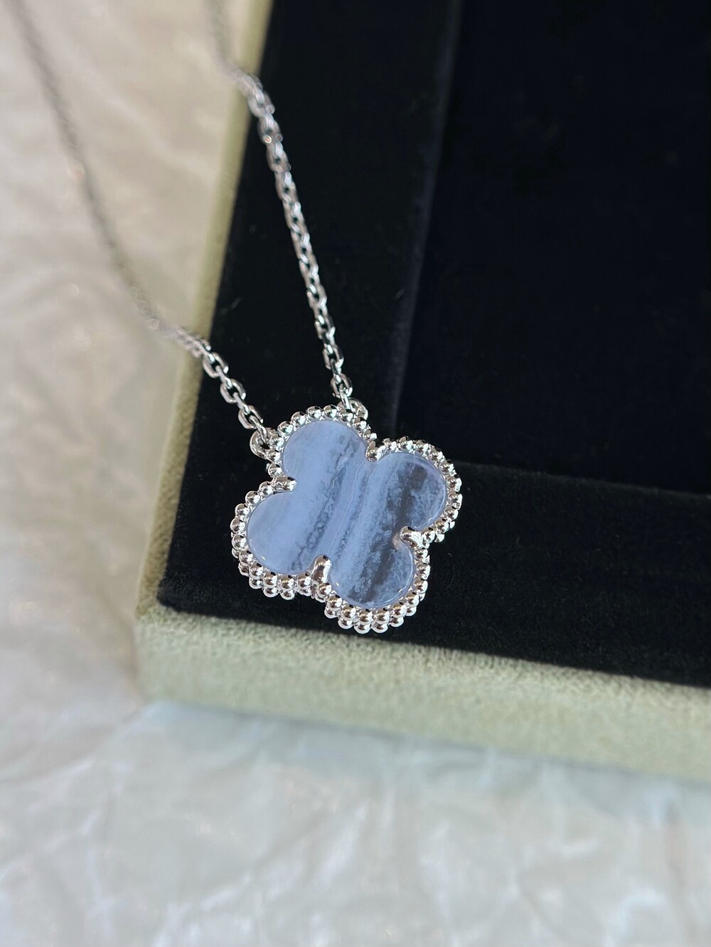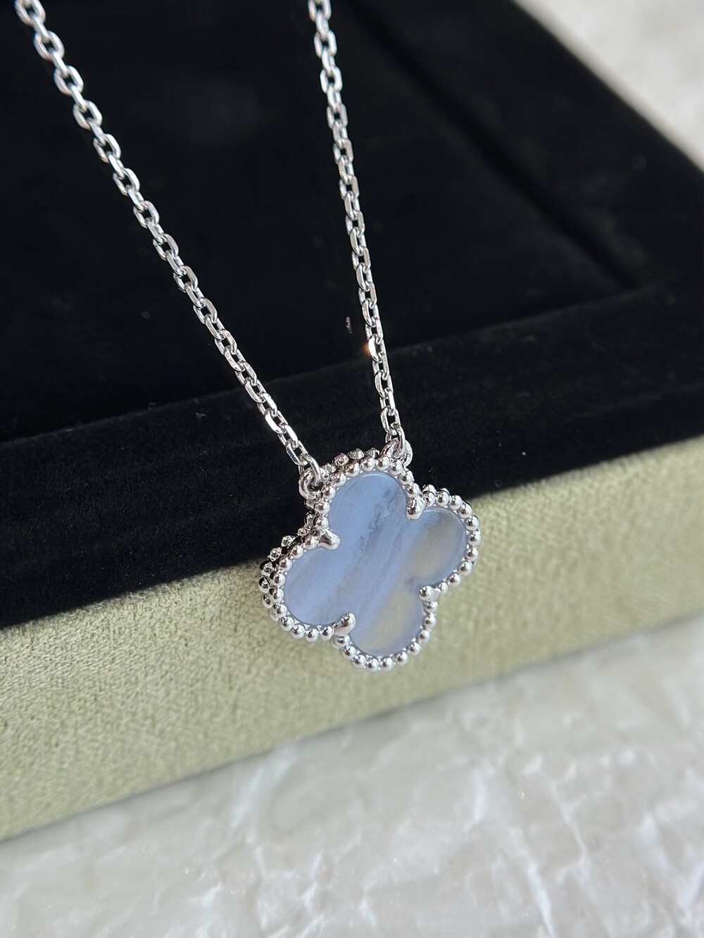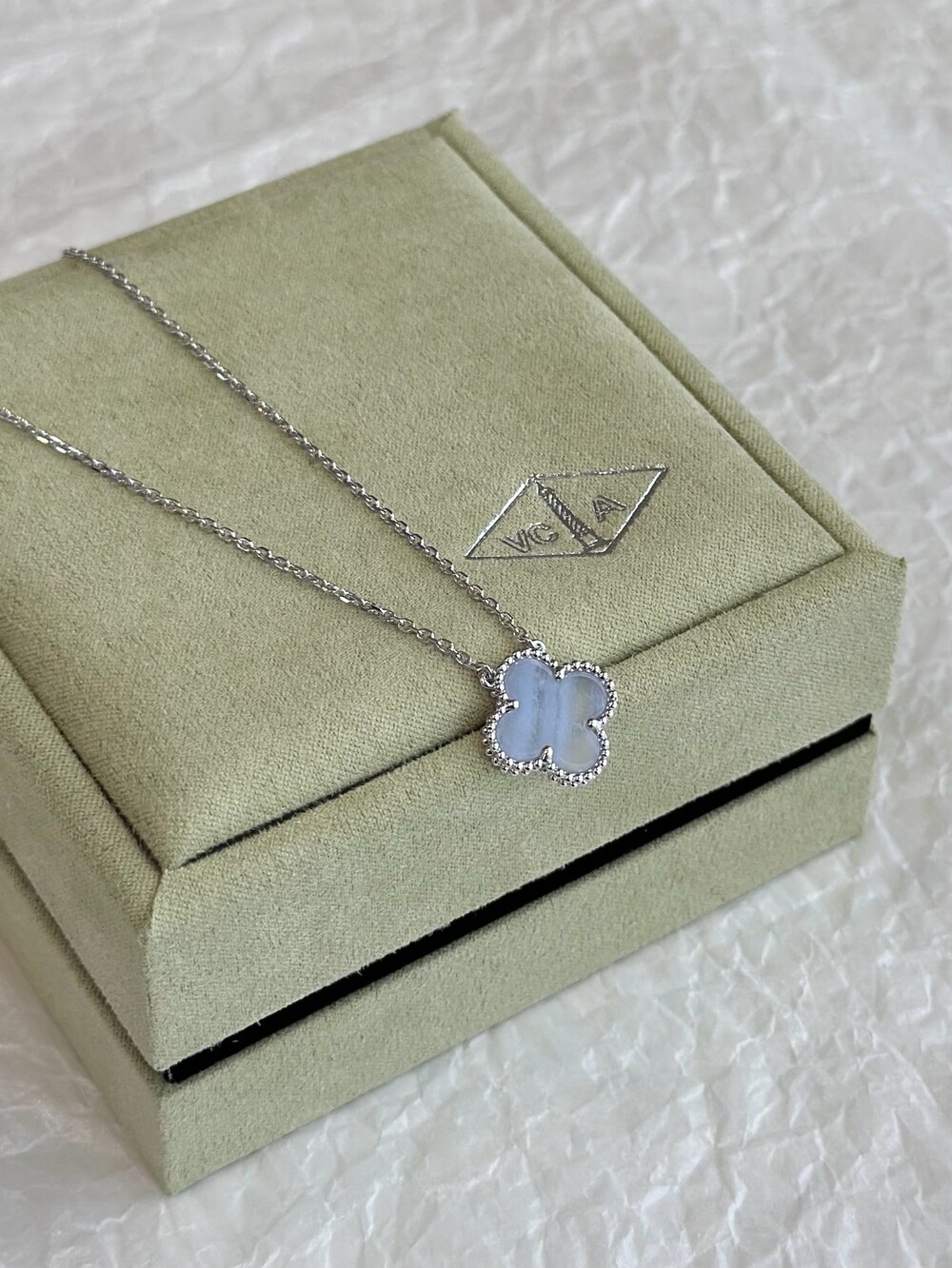 7. 로듐 도금 18K 화이트 골드, 칼세도니