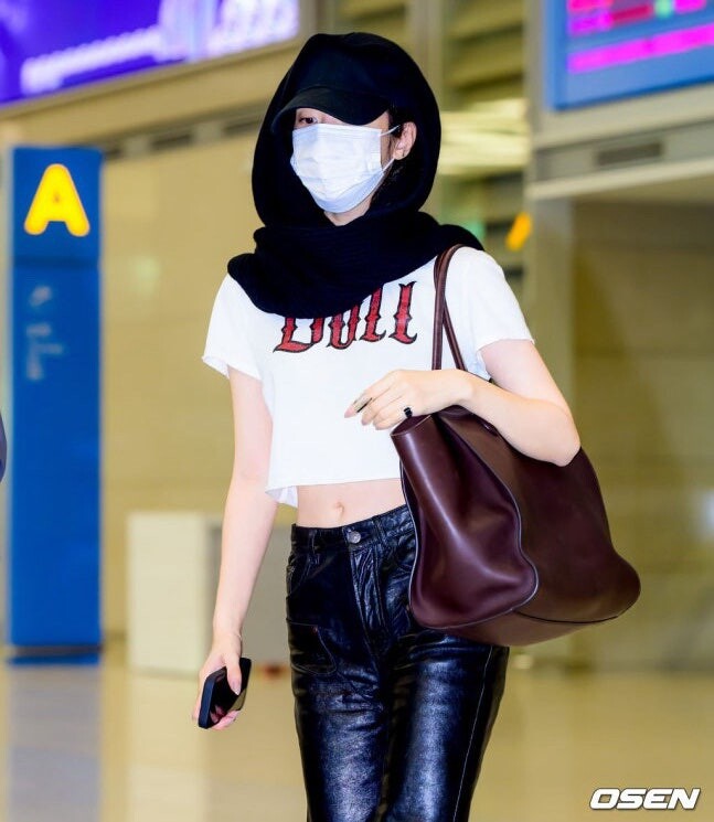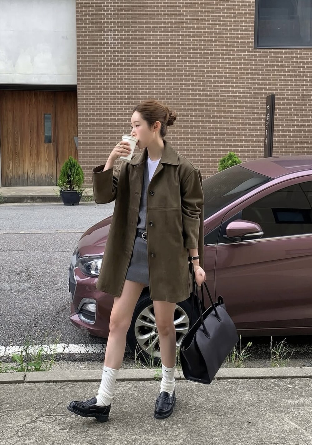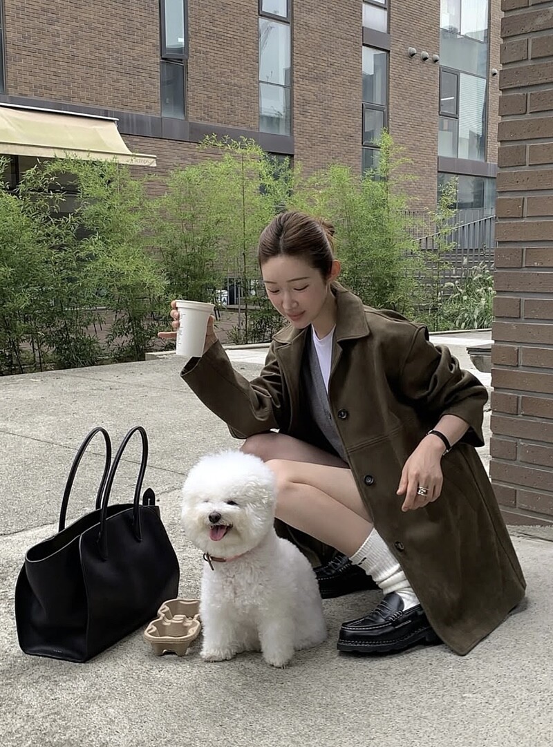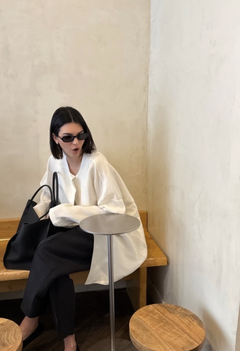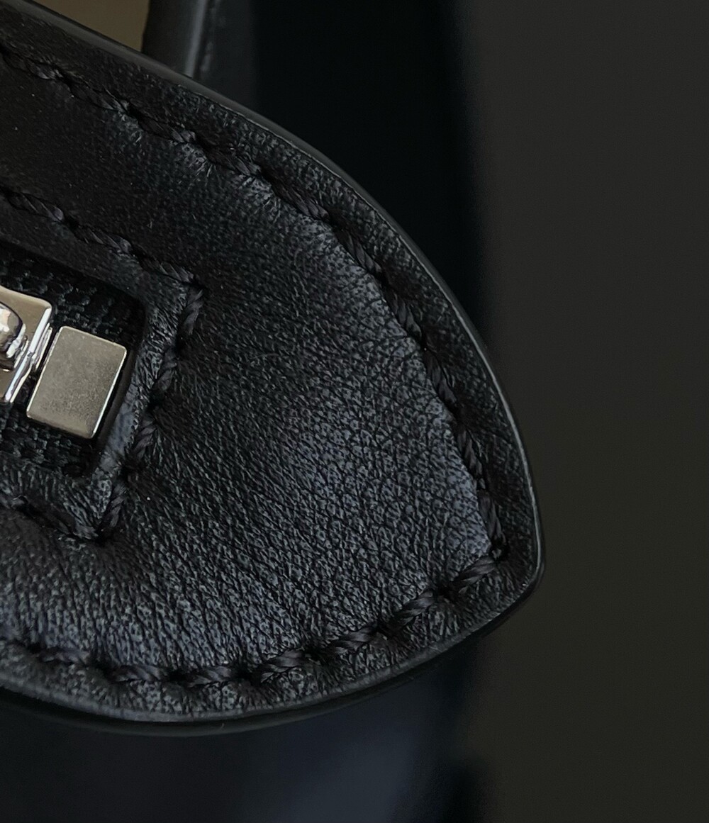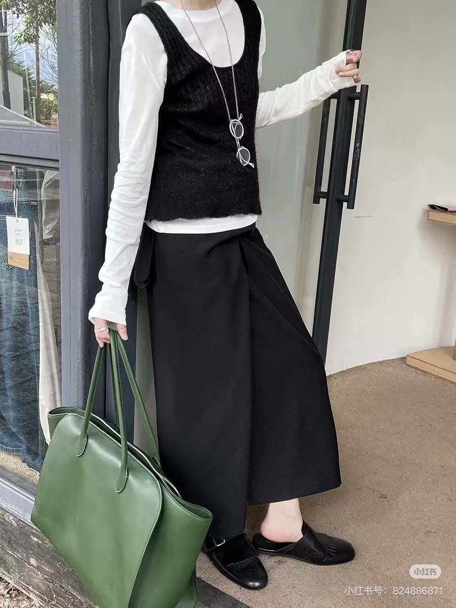 광택 마감된 새들 가죽 소재의 소프트 스트럭처 토트 백으로, 튜브형 핸들과 거싯 디테일의 옆면 패널이 특징입니다.