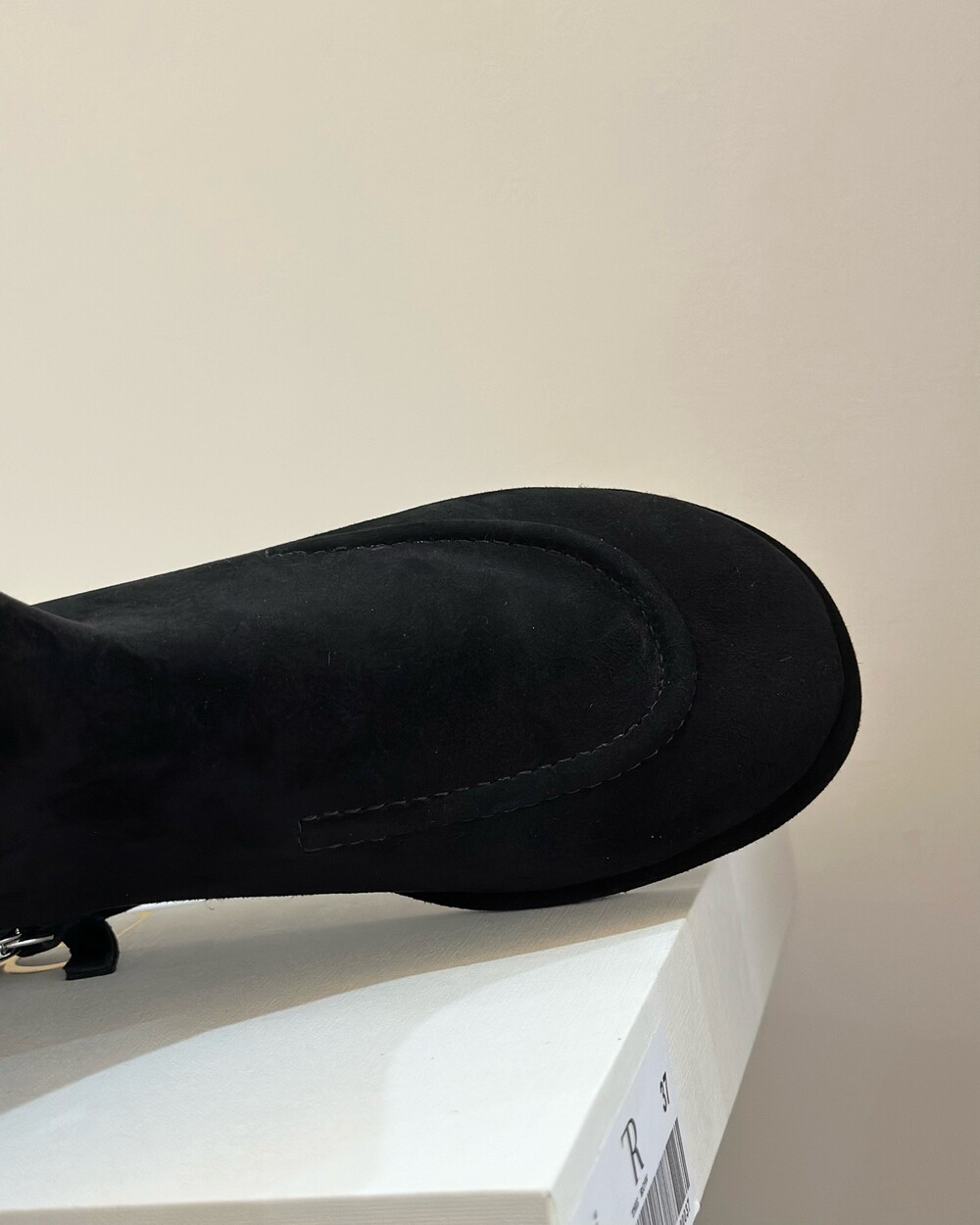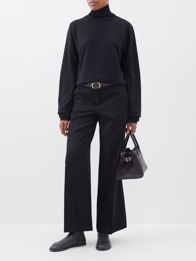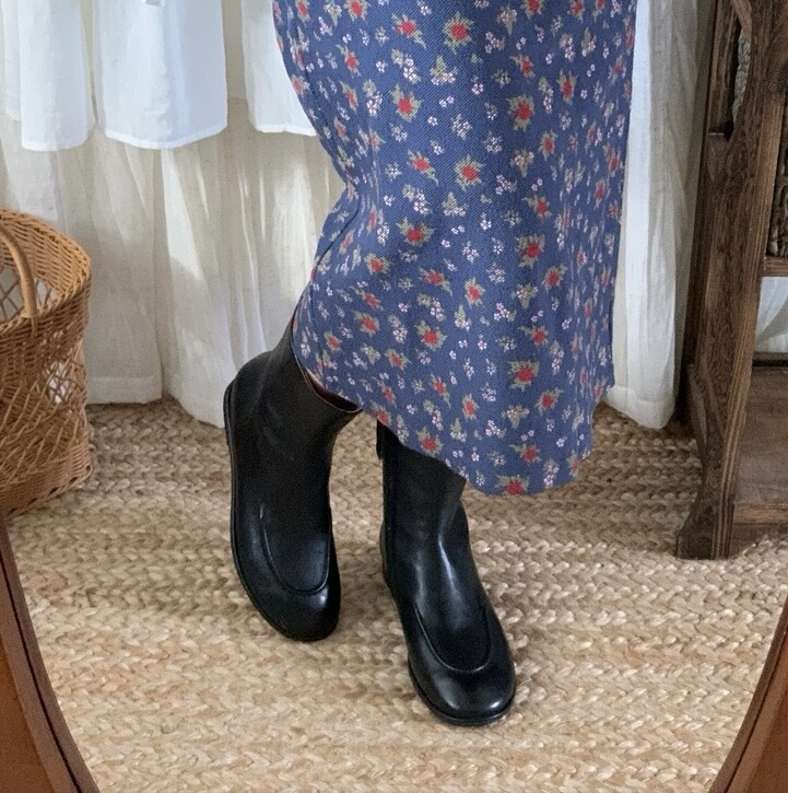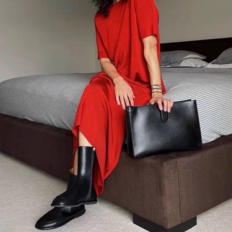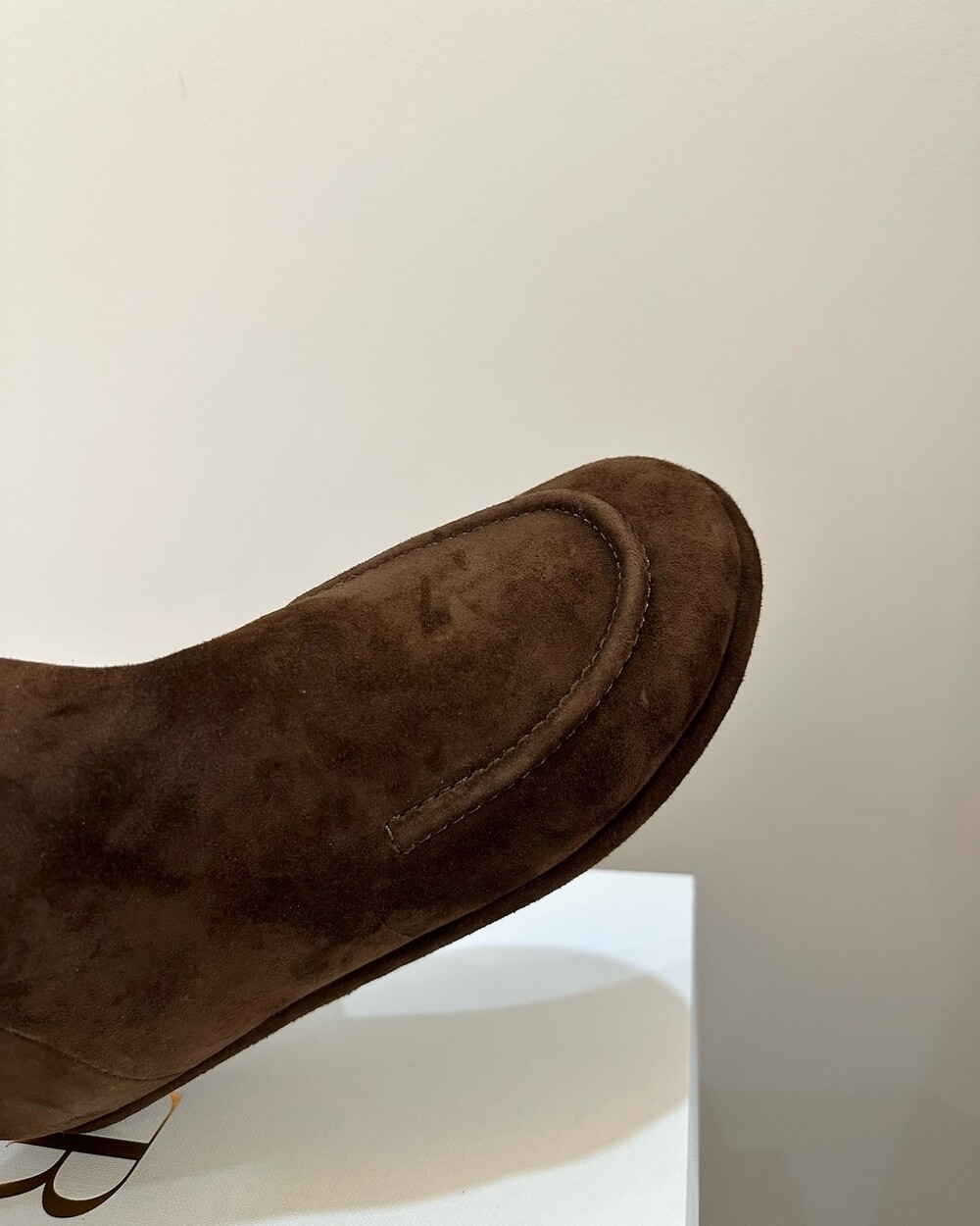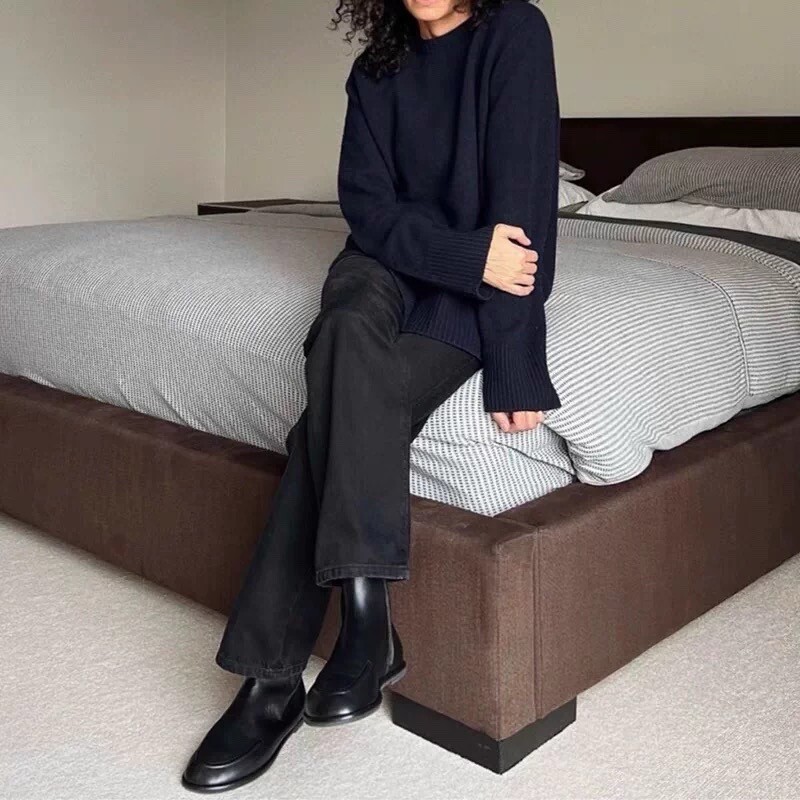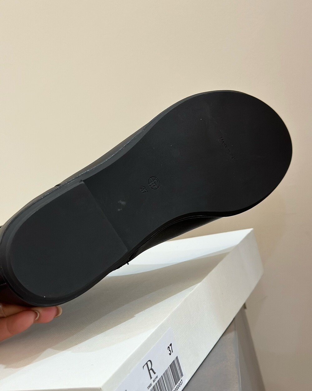 부드러운 나파 가죽으로 만든 The Row 미니멀리스트 앵클 부츠는 둥근 앞부분, 솟아오른 스티칭 앞부분 디테일, 내부 지퍼 잠금 장치가 특징입니다.