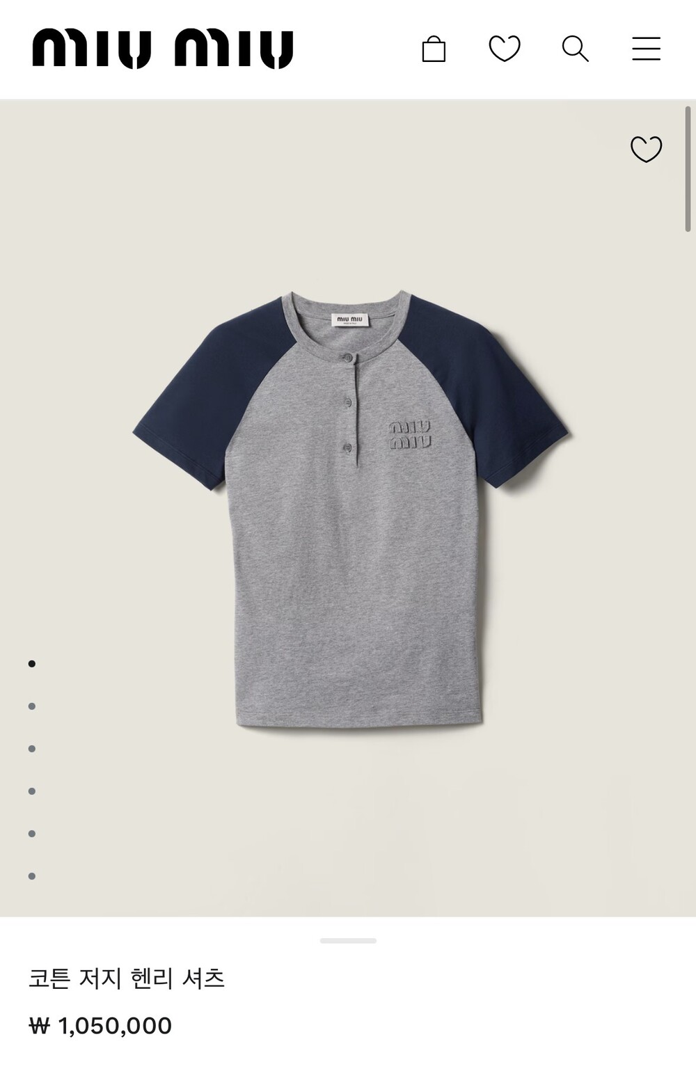 미우미우 코튼 저지 헨리 셔츠