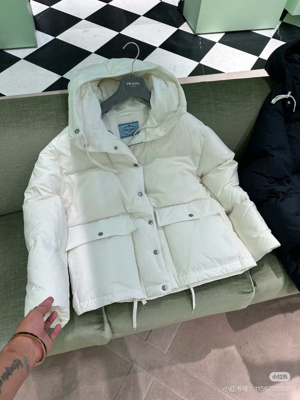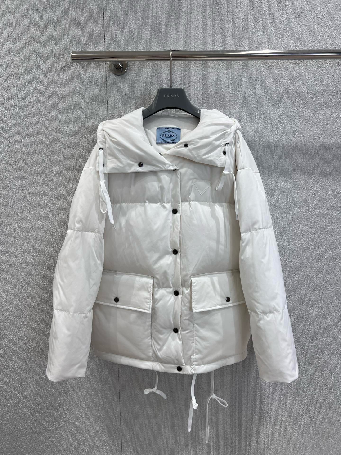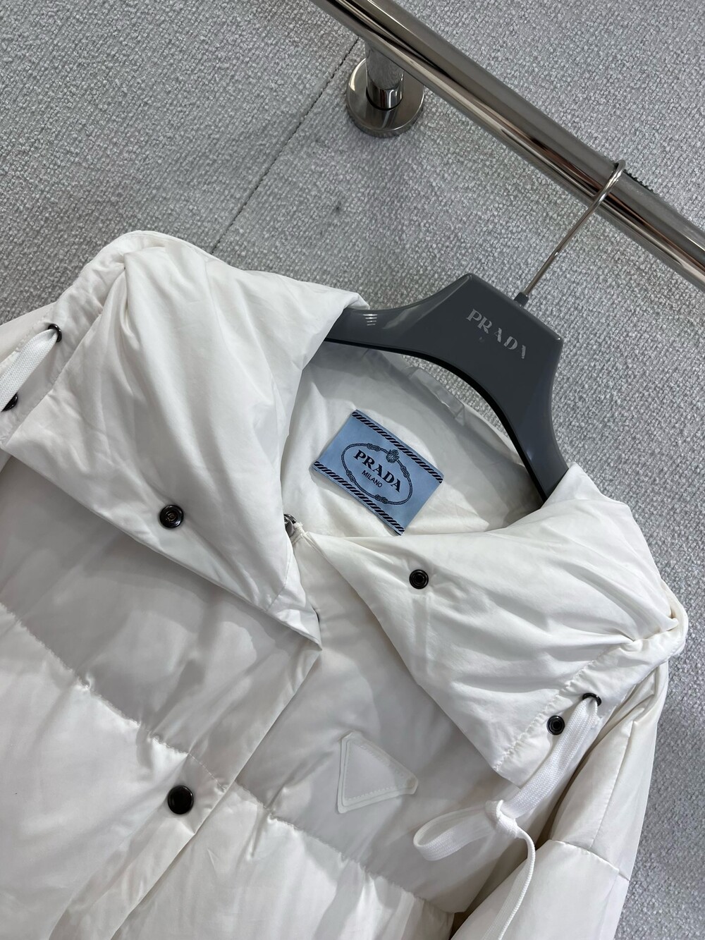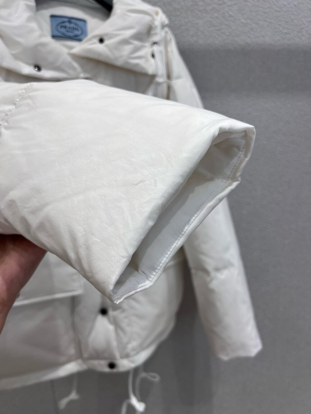 프라다 중량 후드 소프트 패브릭 다운 재킷