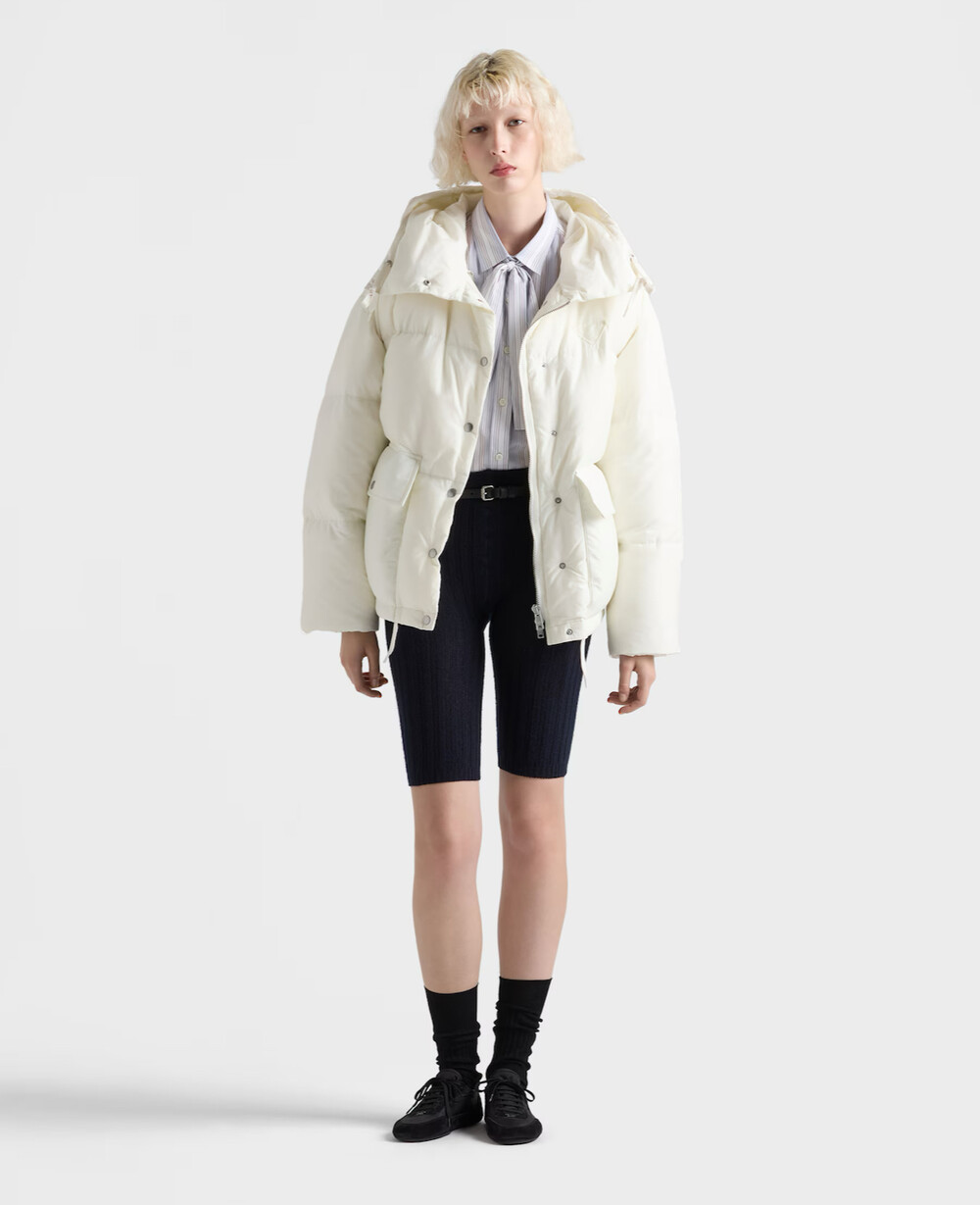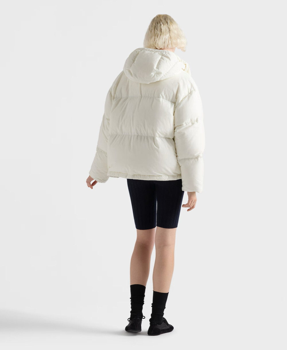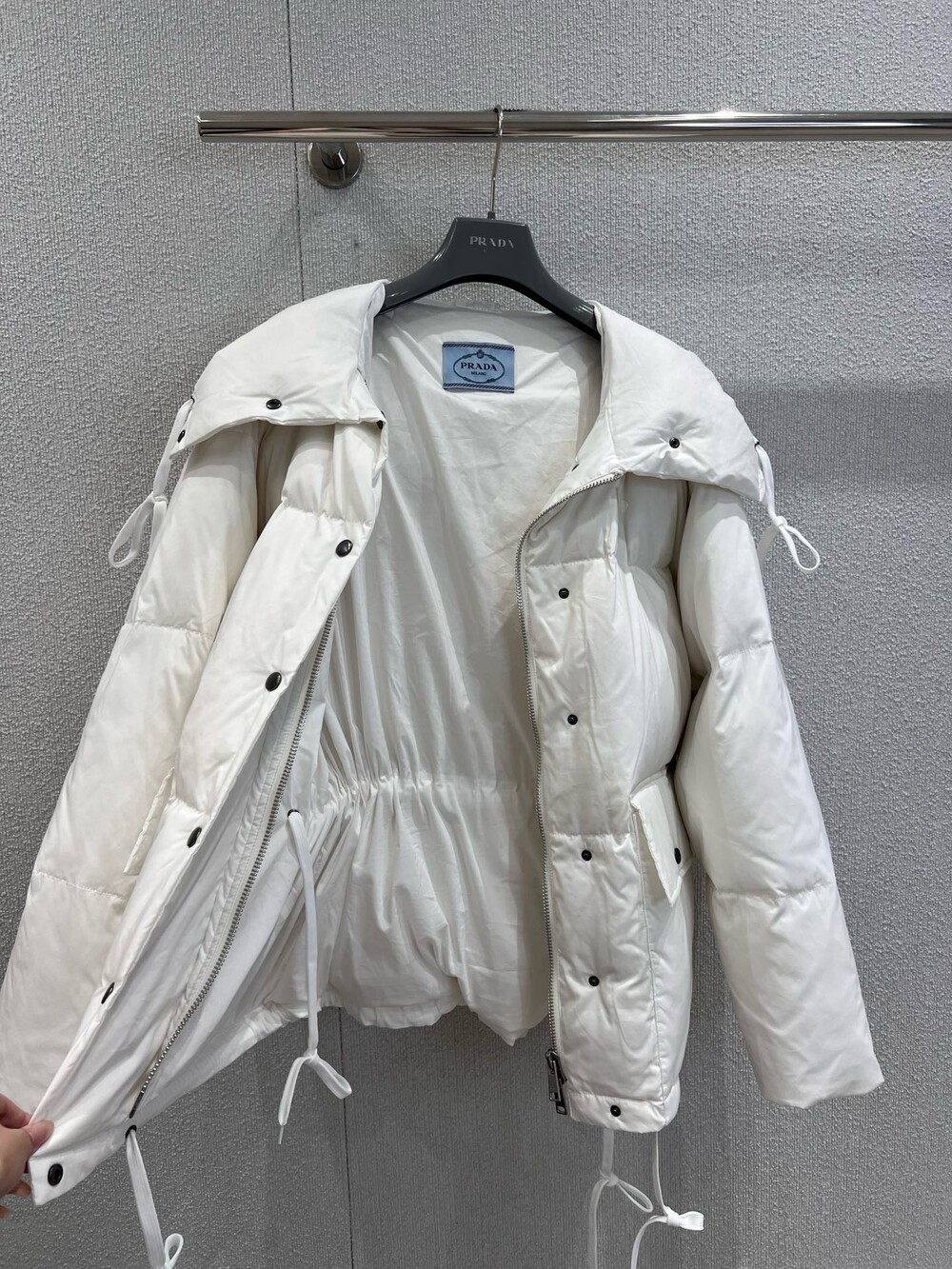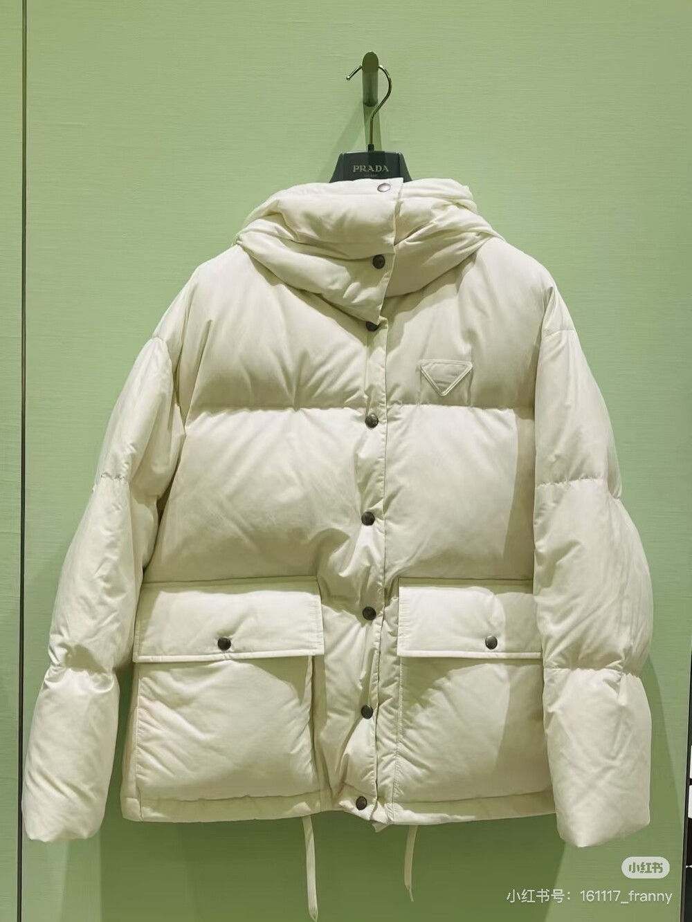 프라다 중량 후드 소프트 패브릭 다운 재킷