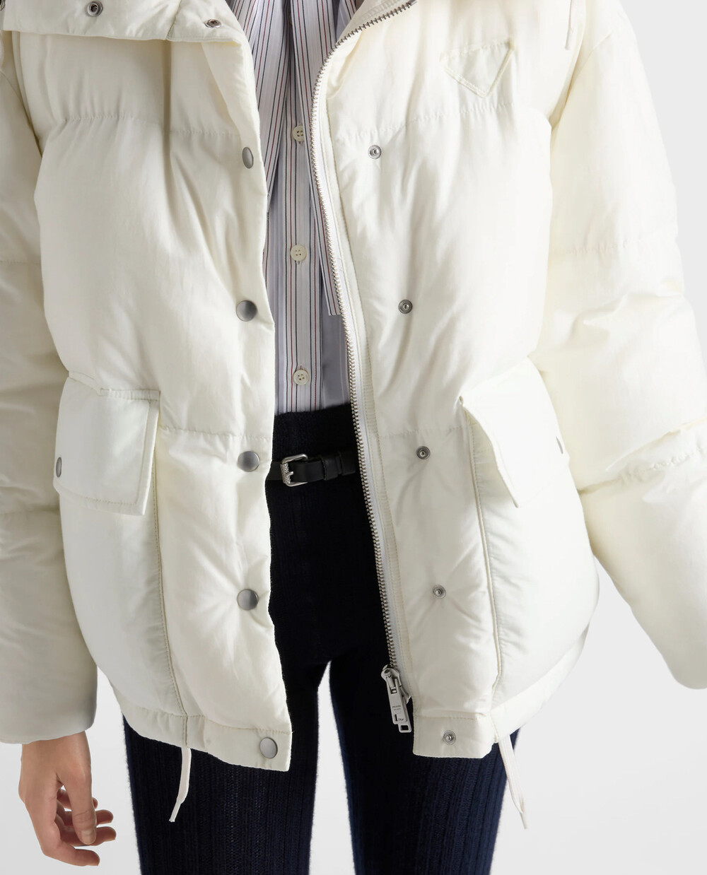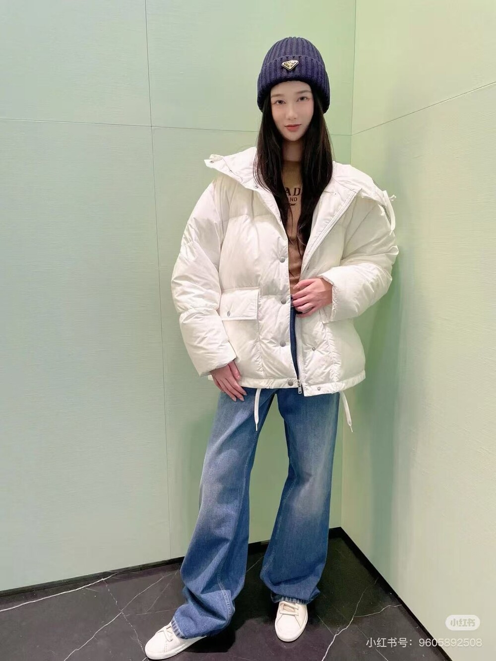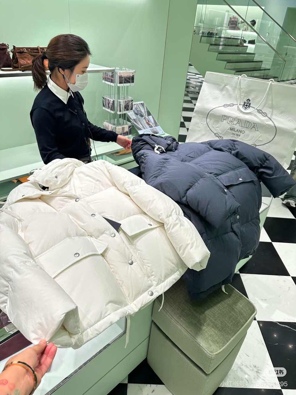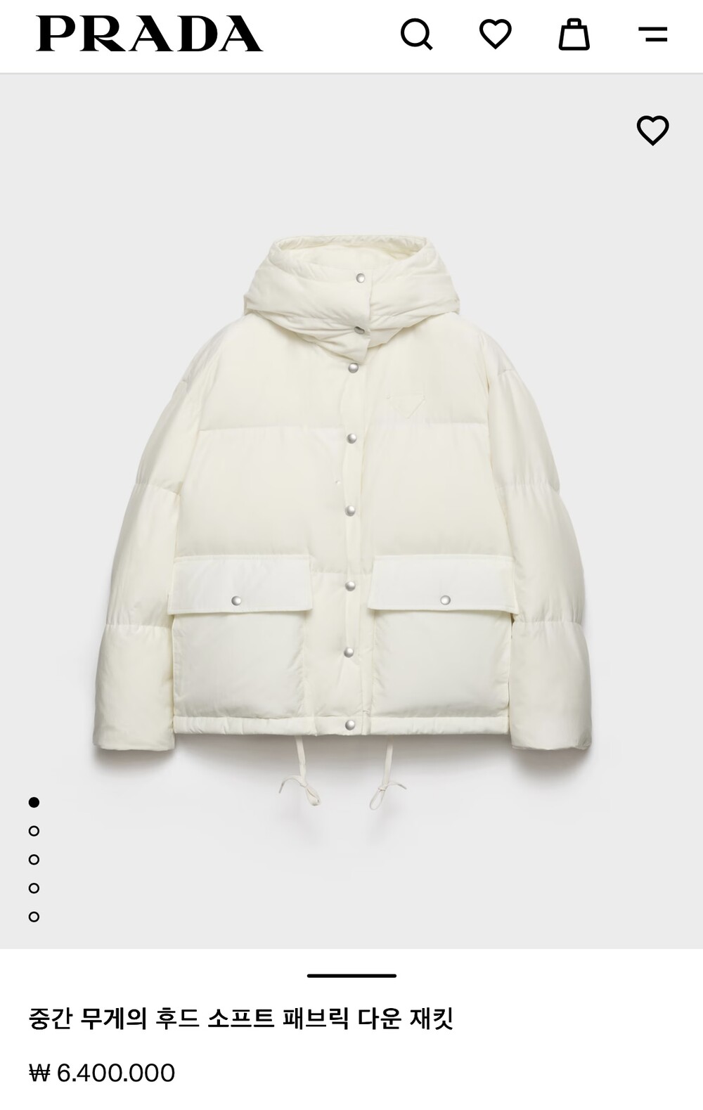 프라다 중량 후드 소프트 패브릭 다운 재킷