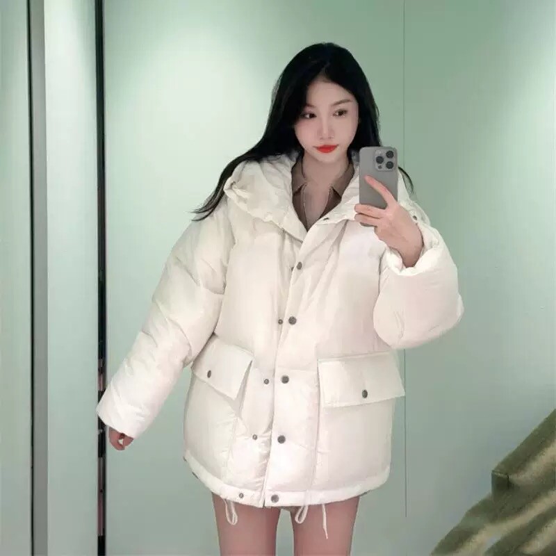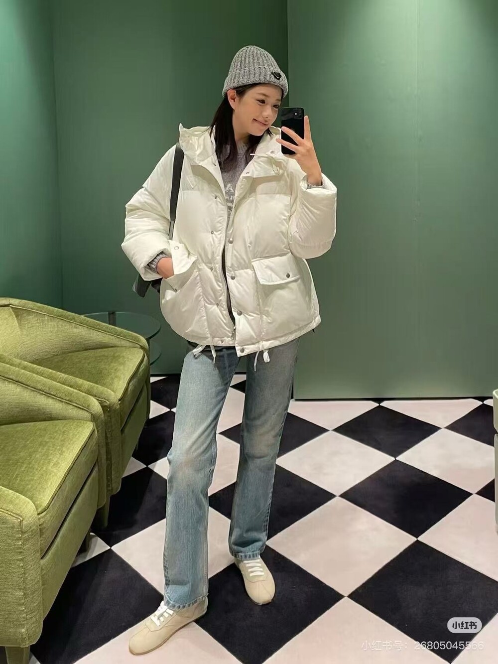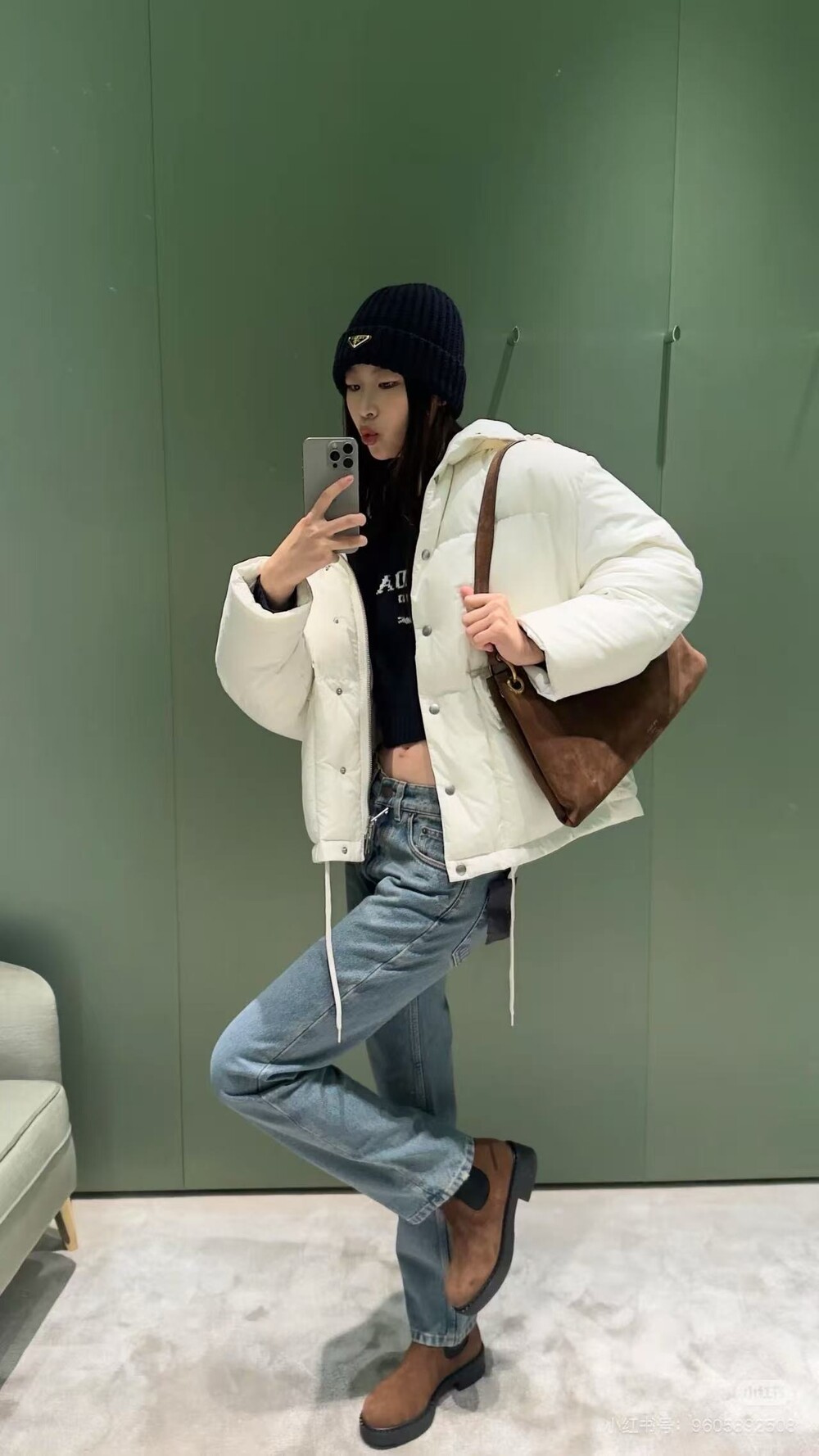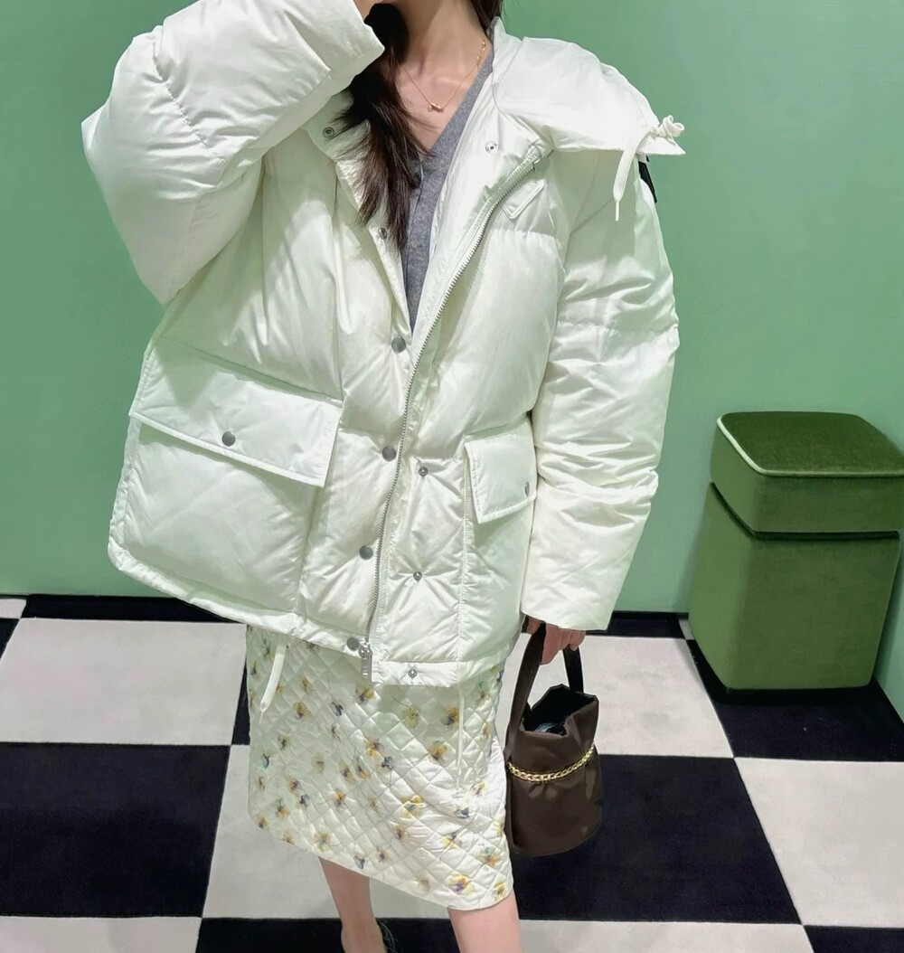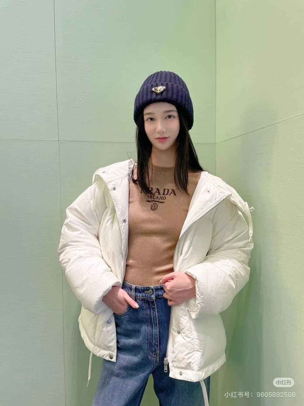 프라다 중량 후드 소프트 패브릭 다운 재킷