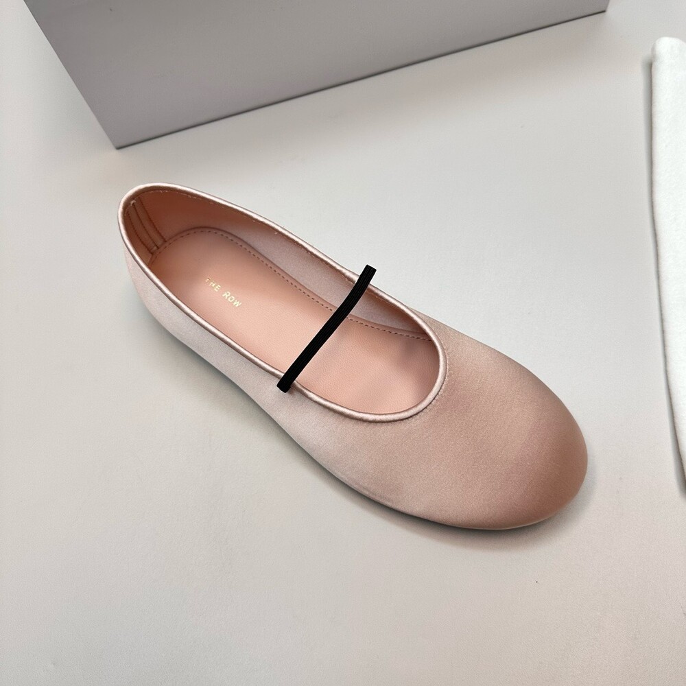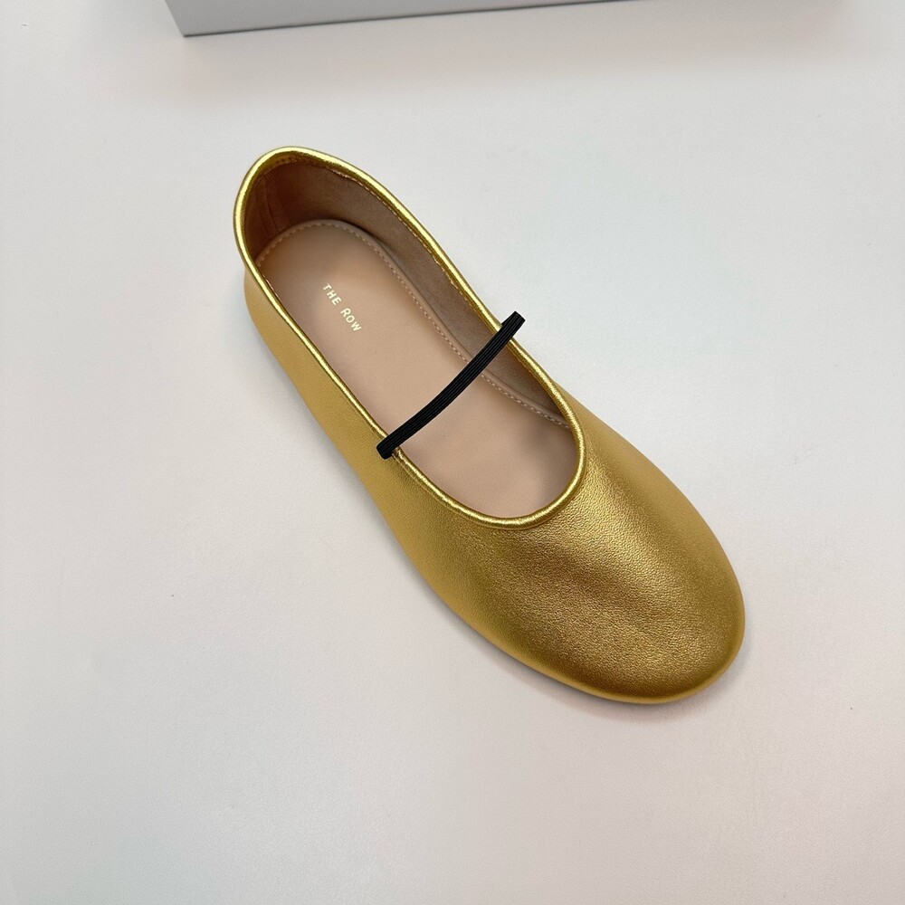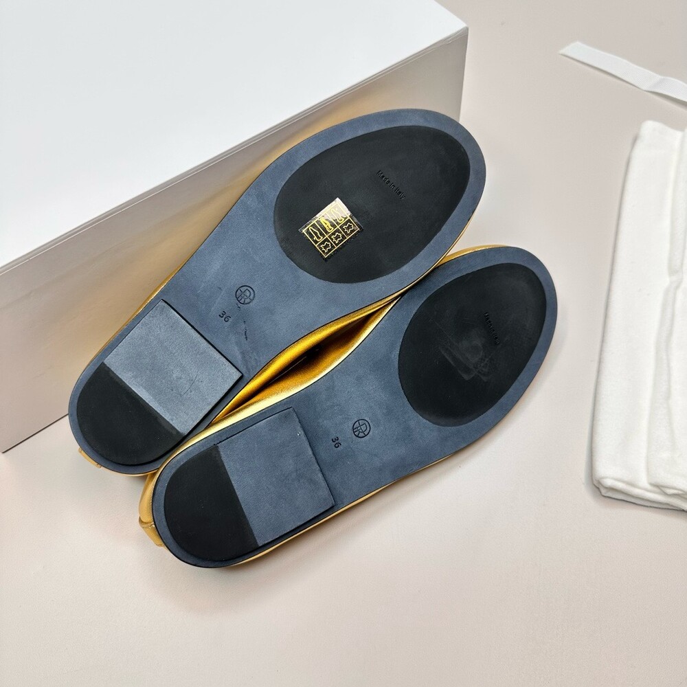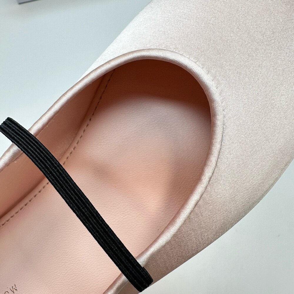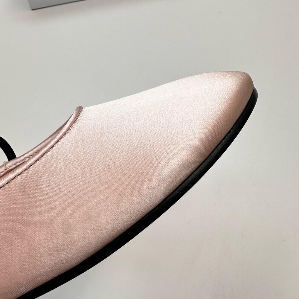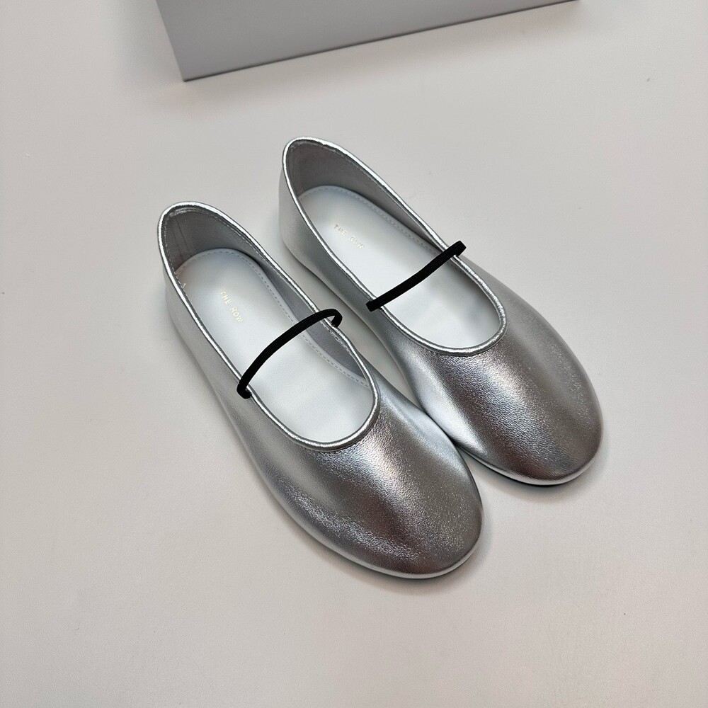 유연한 디컨스트럭티드 카프스킨 나파 가죽 소재의 클래식 발레 슬리퍼. 라운드 토 및 발등 부분의 섬세한 엘라스틱 스트랩.