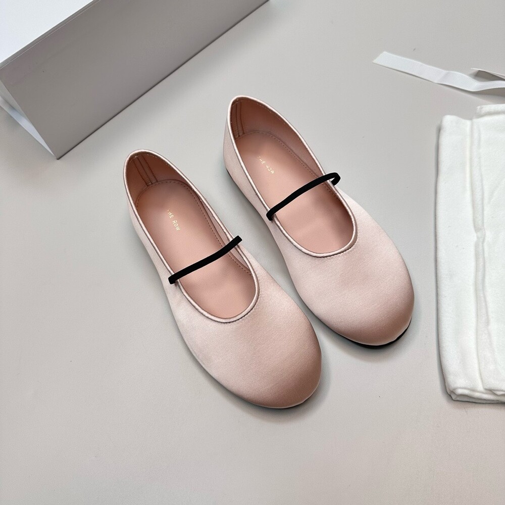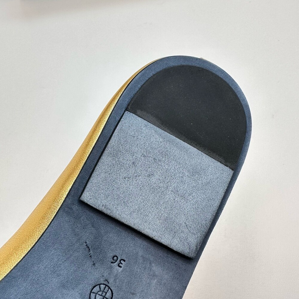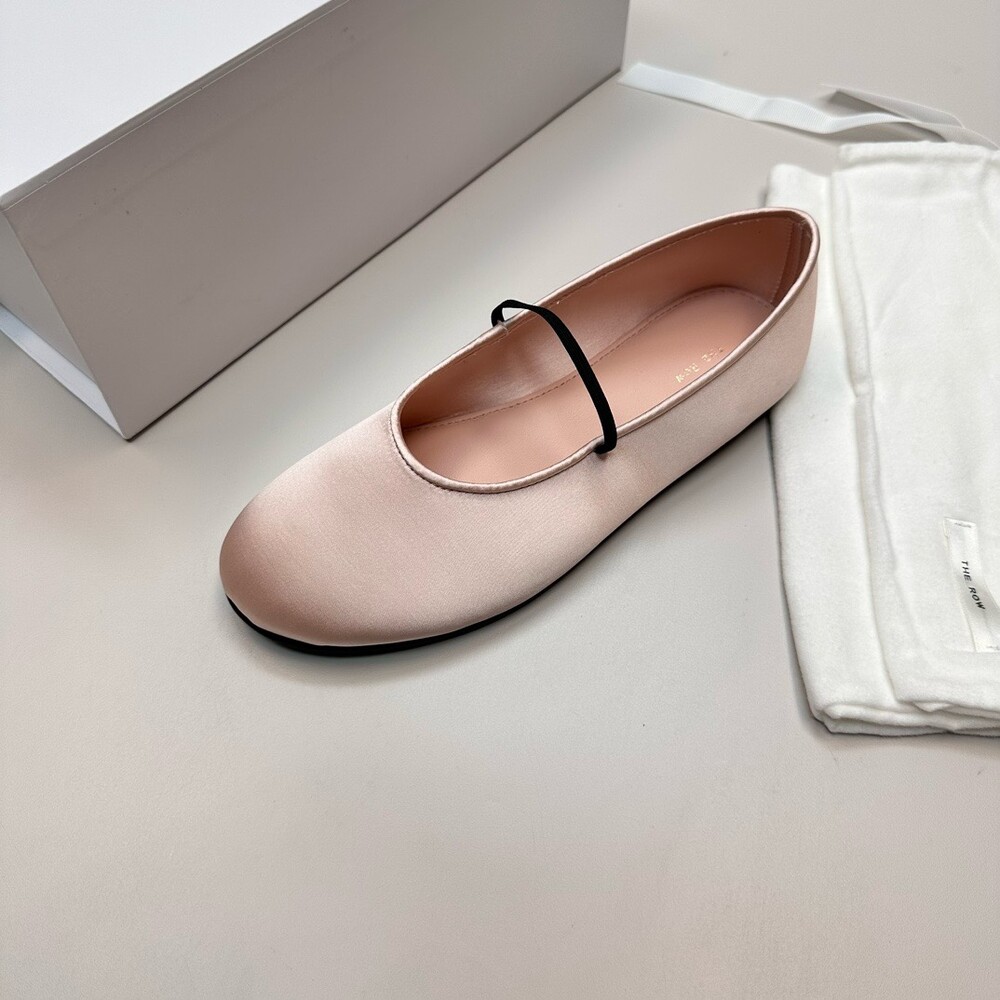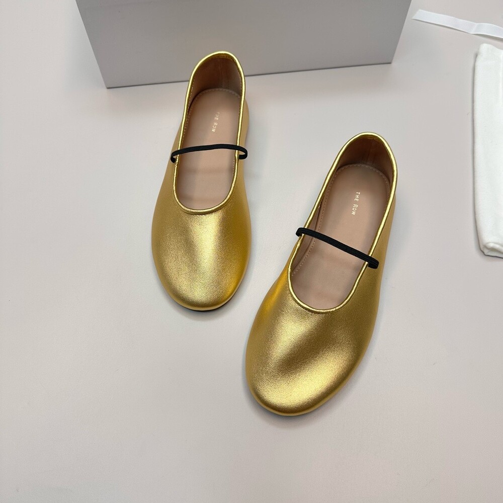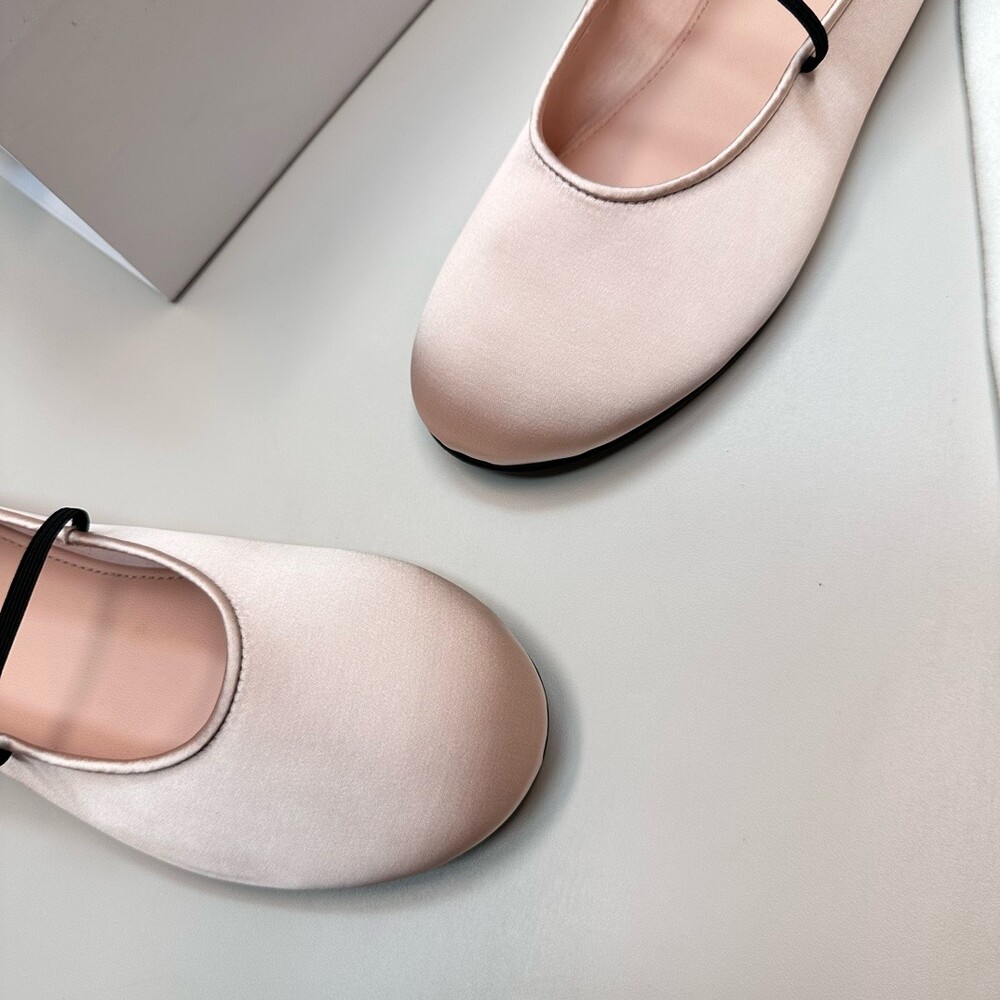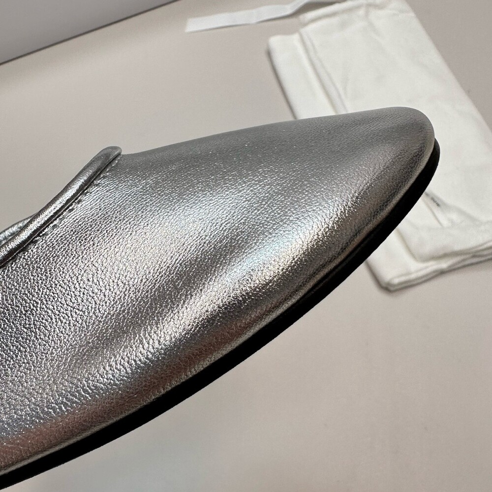 유연한 디컨스트럭티드 카프스킨 나파 가죽 소재의 클래식 발레 슬리퍼. 라운드 토 및 발등 부분의 섬세한 엘라스틱 스트랩.