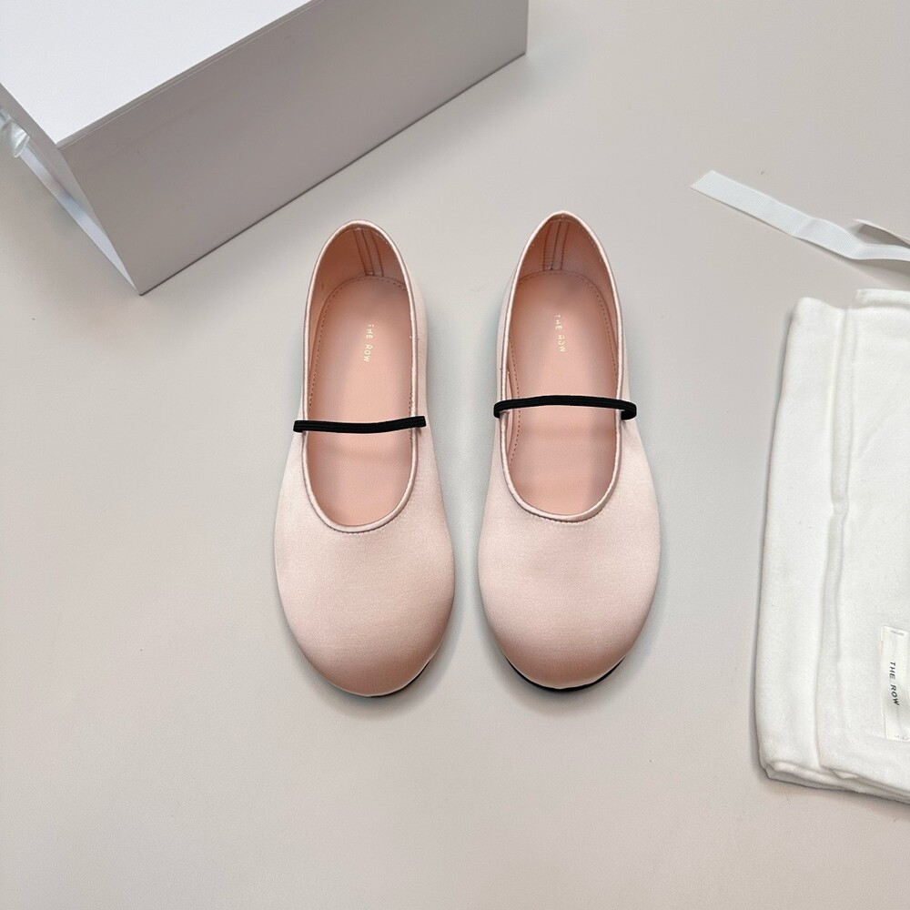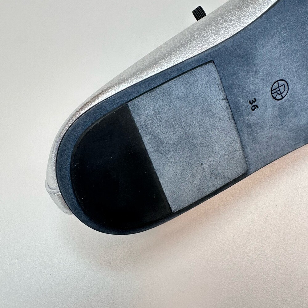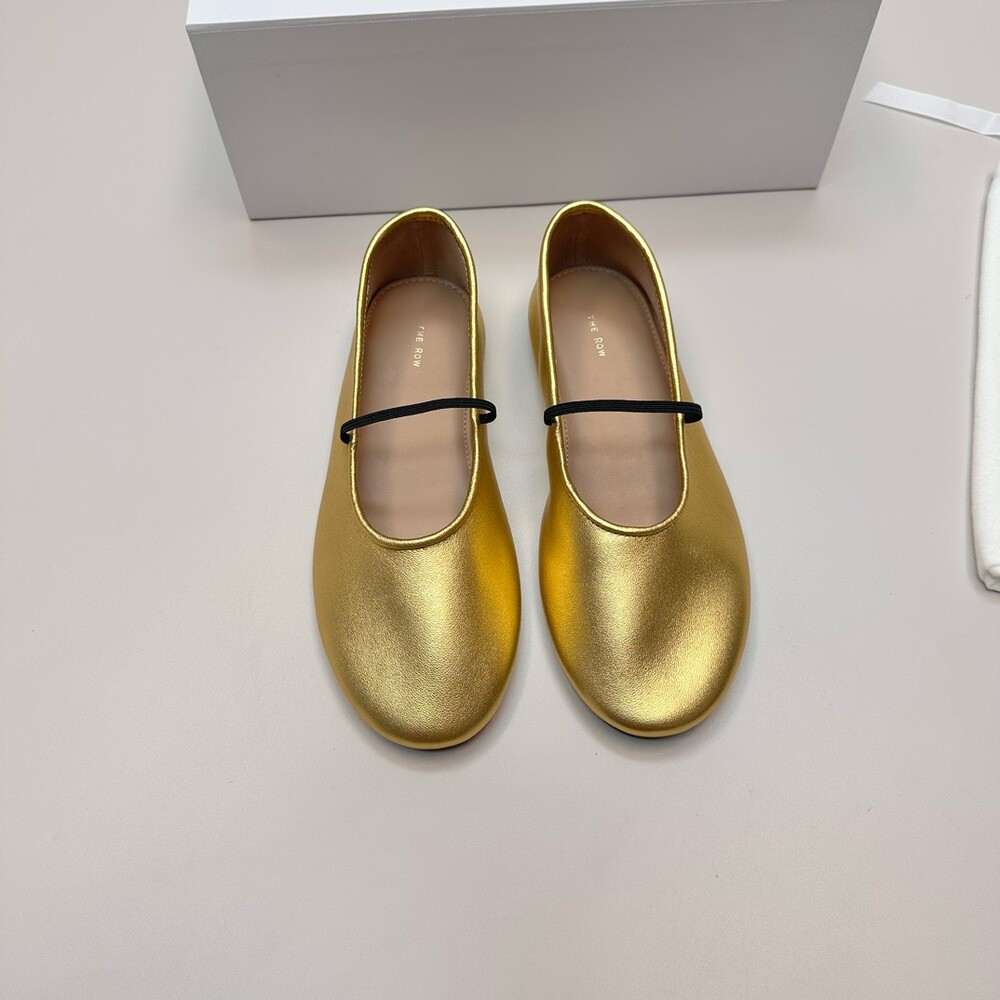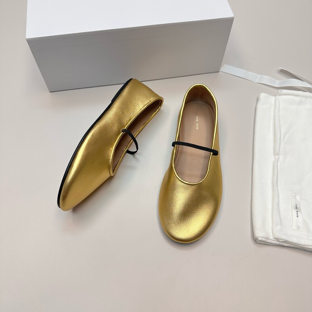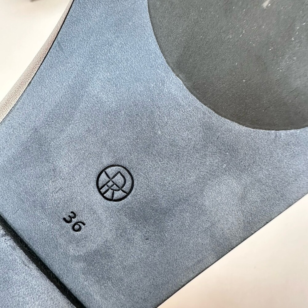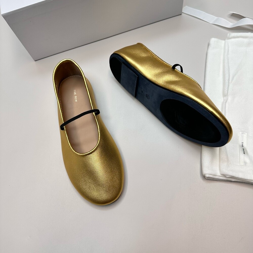 유연한 디컨스트럭티드 카프스킨 나파 가죽 소재의 클래식 발레 슬리퍼. 라운드 토 및 발등 부분의 섬세한 엘라스틱 스트랩.