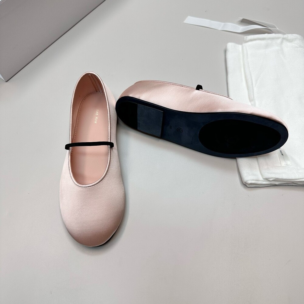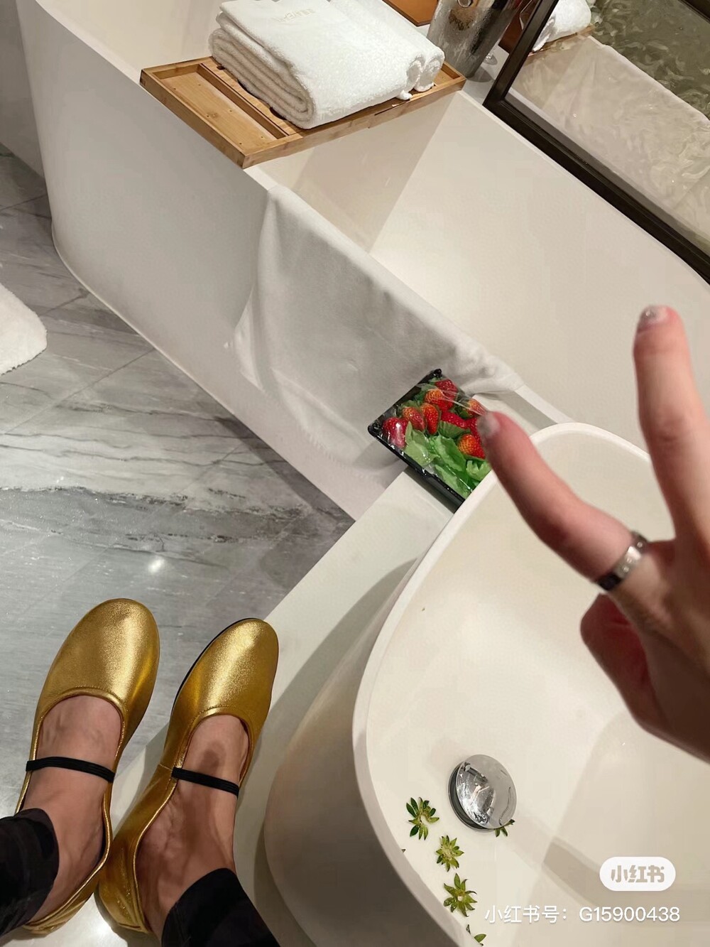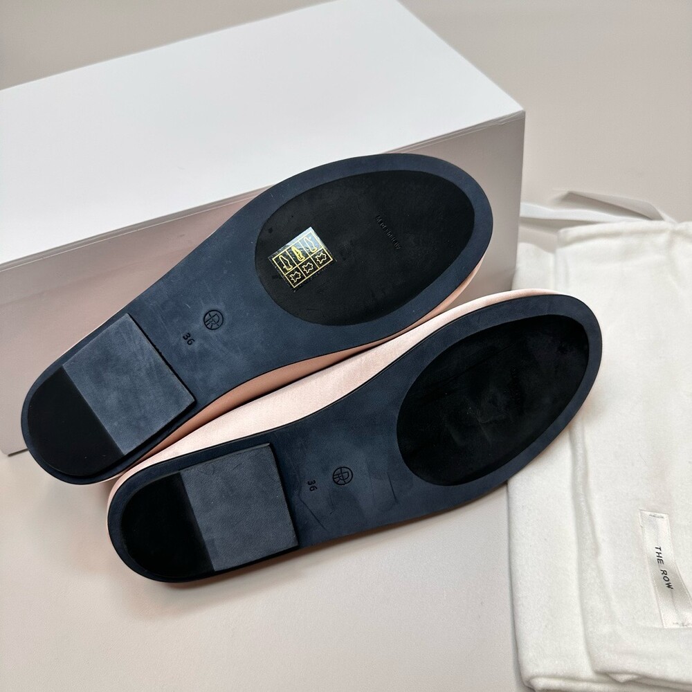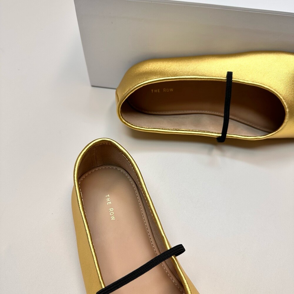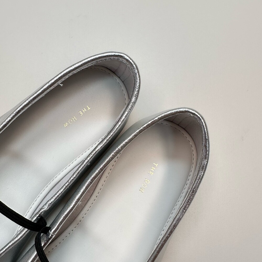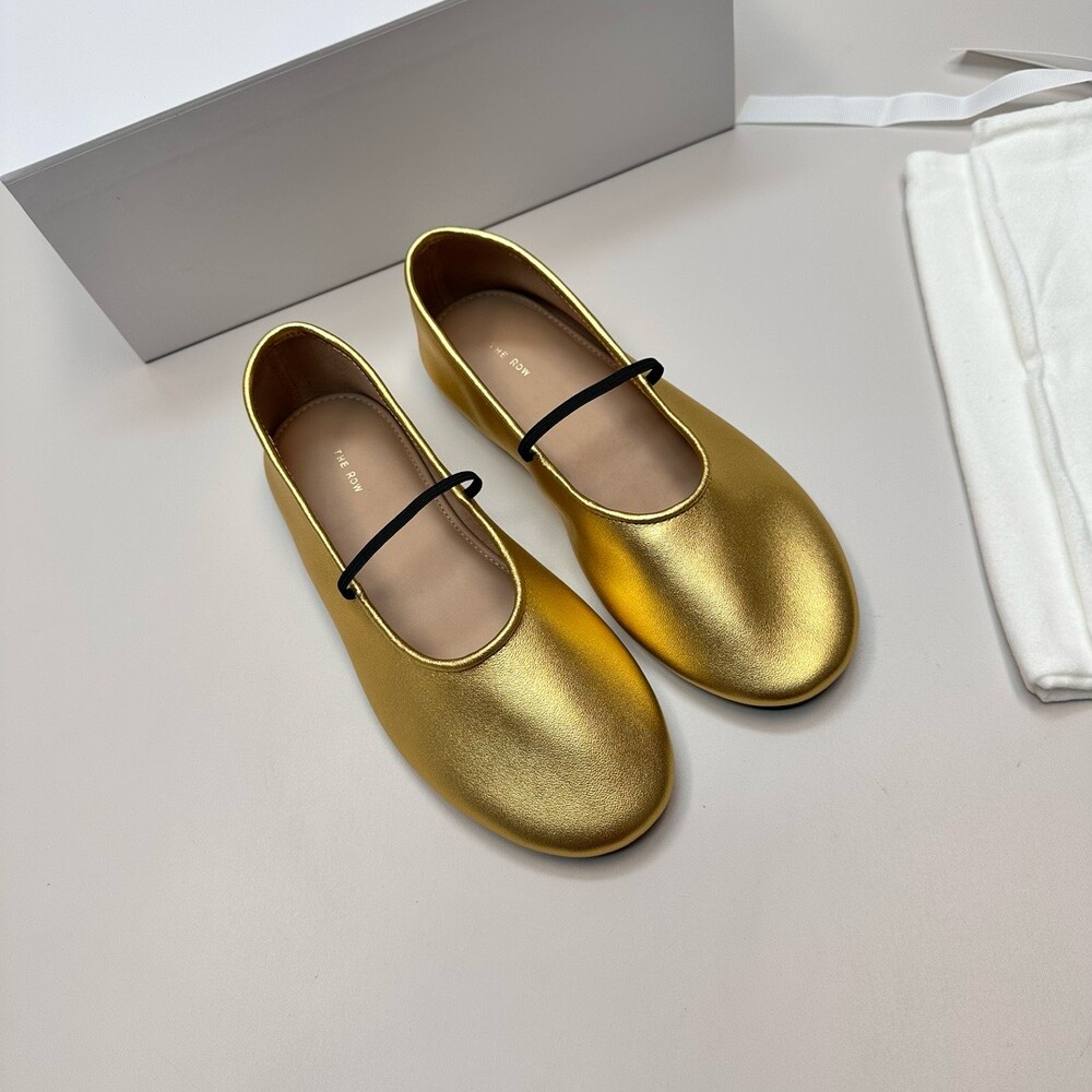 유연한 디컨스트럭티드 카프스킨 나파 가죽 소재의 클래식 발레 슬리퍼. 라운드 토 및 발등 부분의 섬세한 엘라스틱 스트랩.