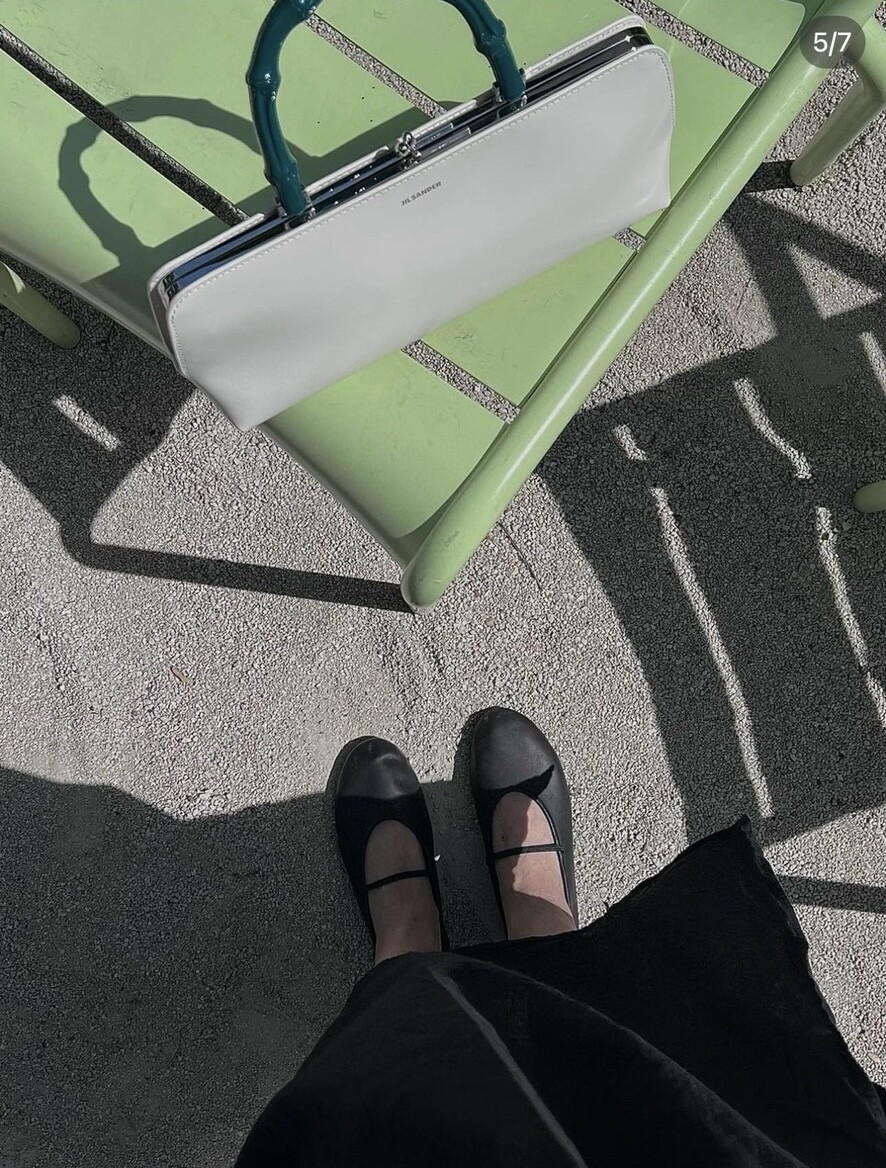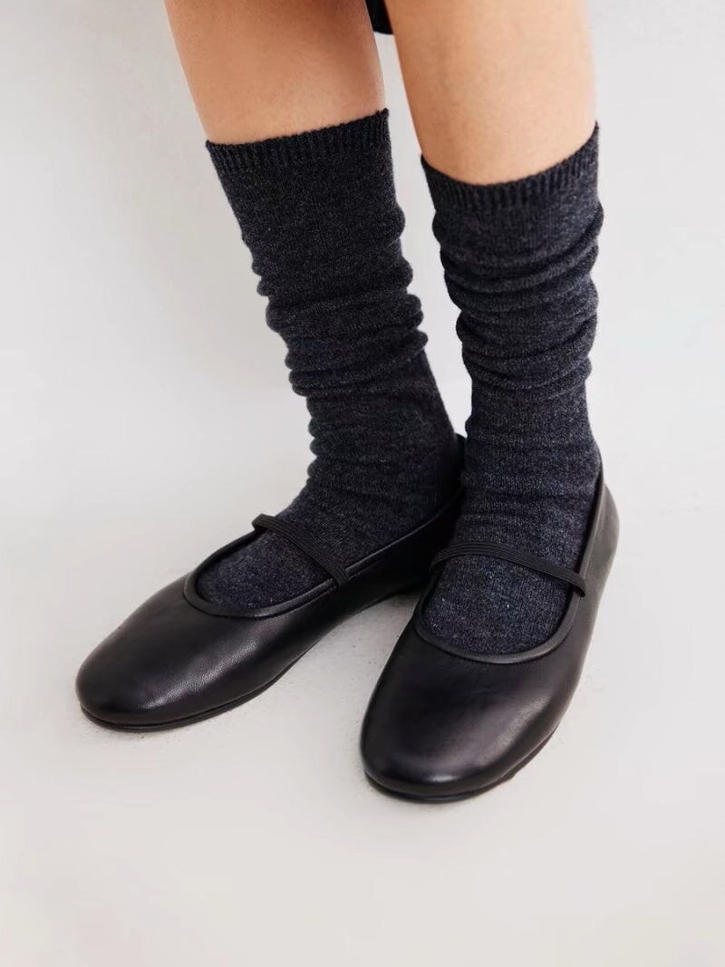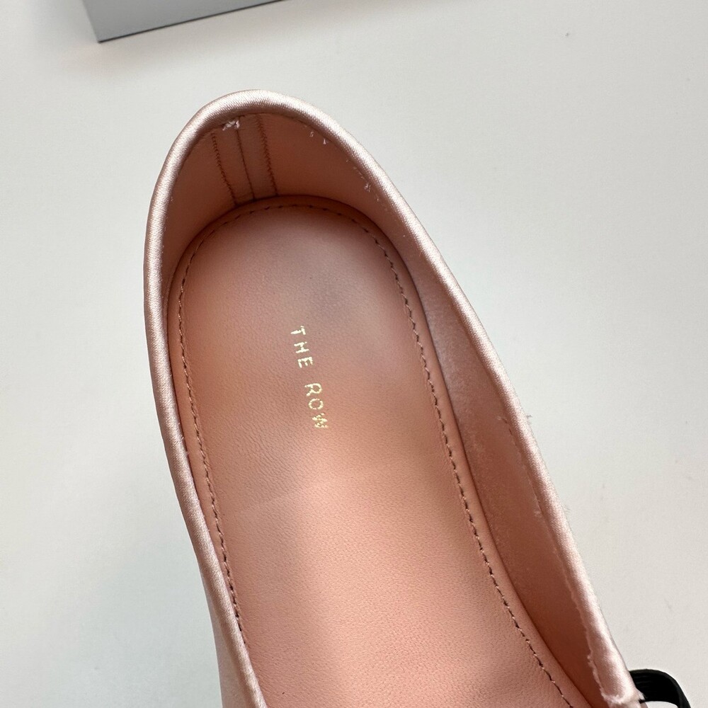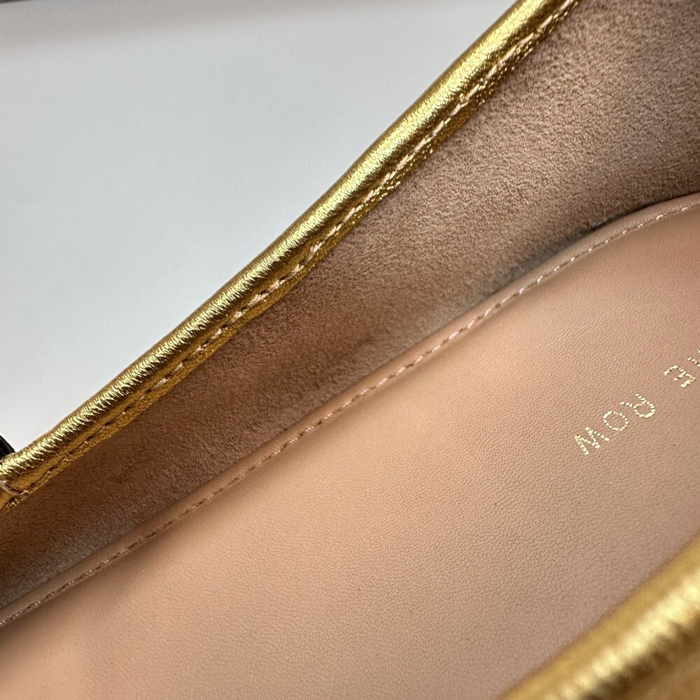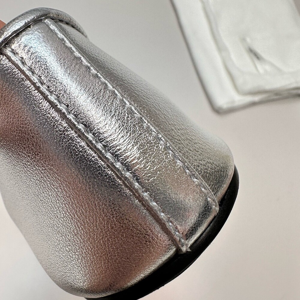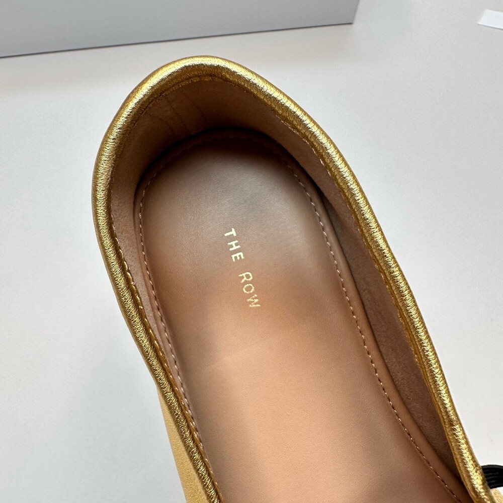 유연한 디컨스트럭티드 카프스킨 나파 가죽 소재의 클래식 발레 슬리퍼. 라운드 토 및 발등 부분의 섬세한 엘라스틱 스트랩.