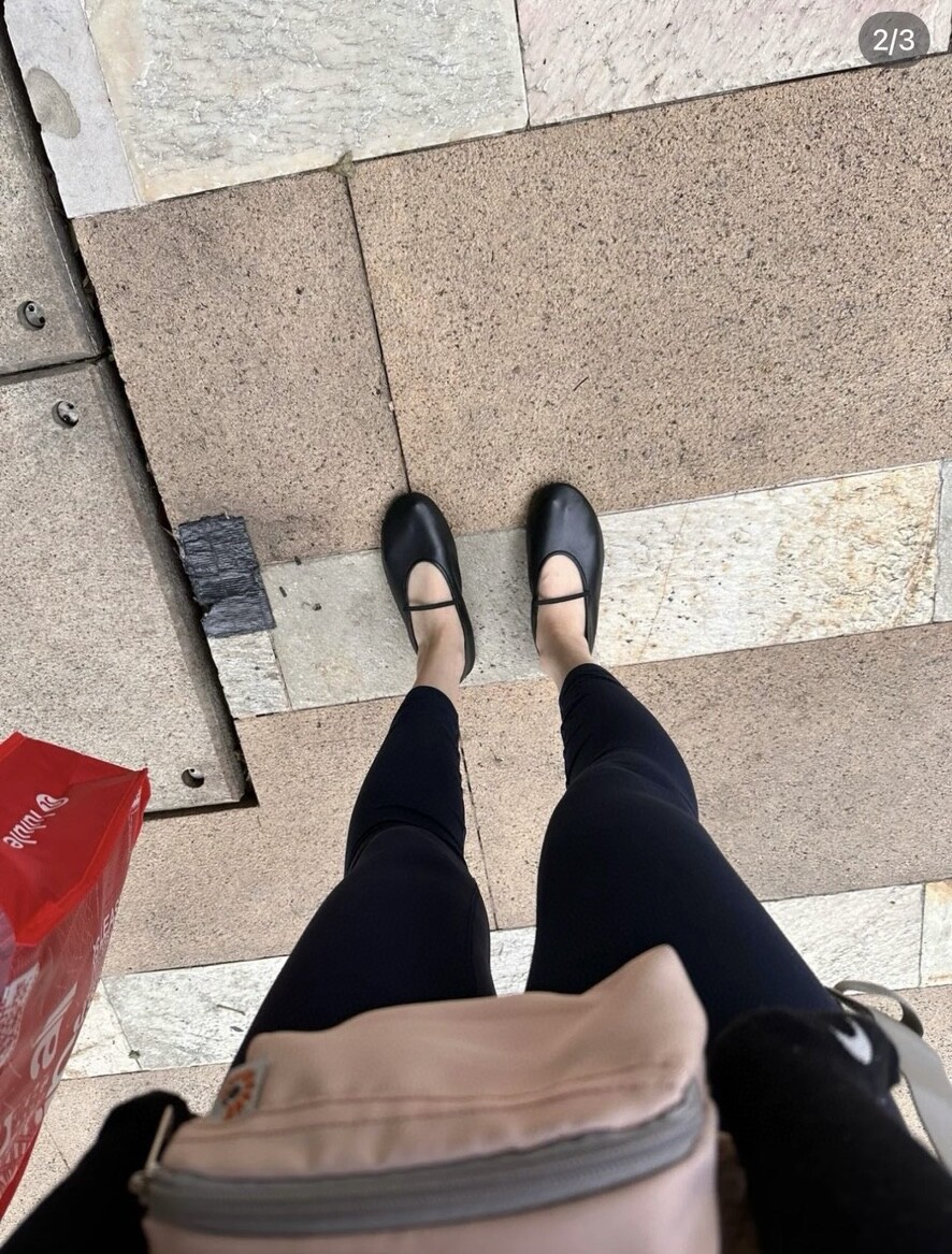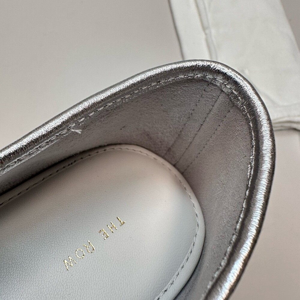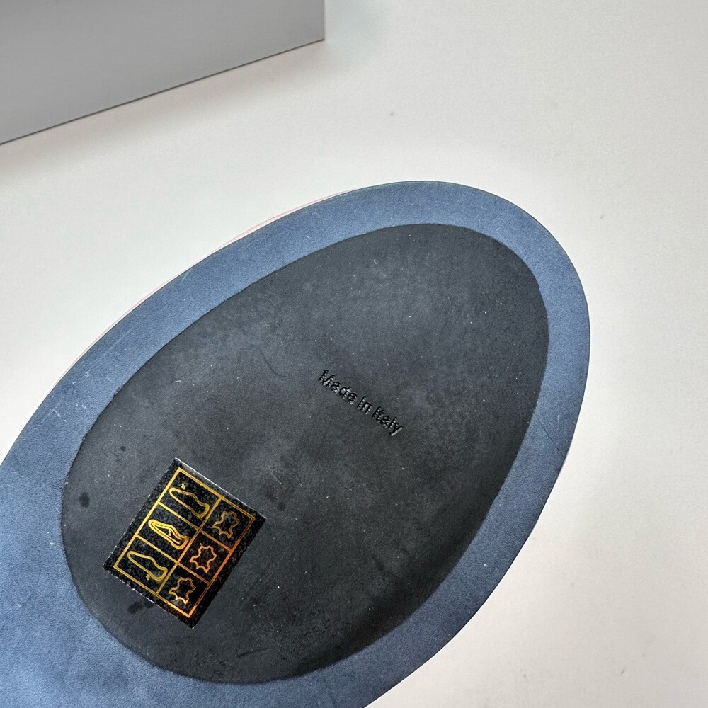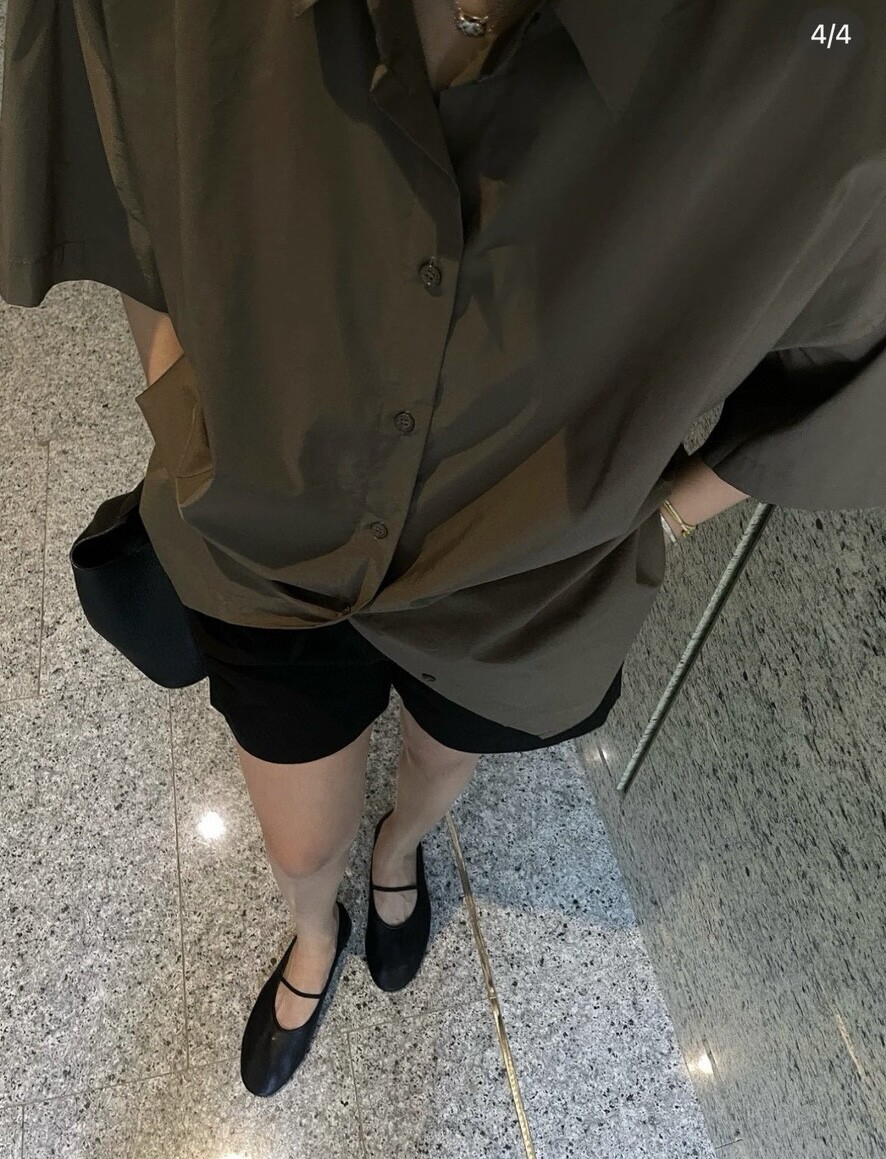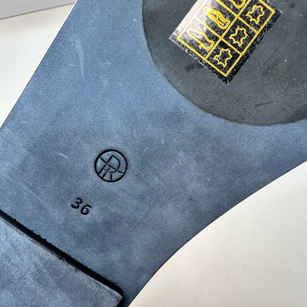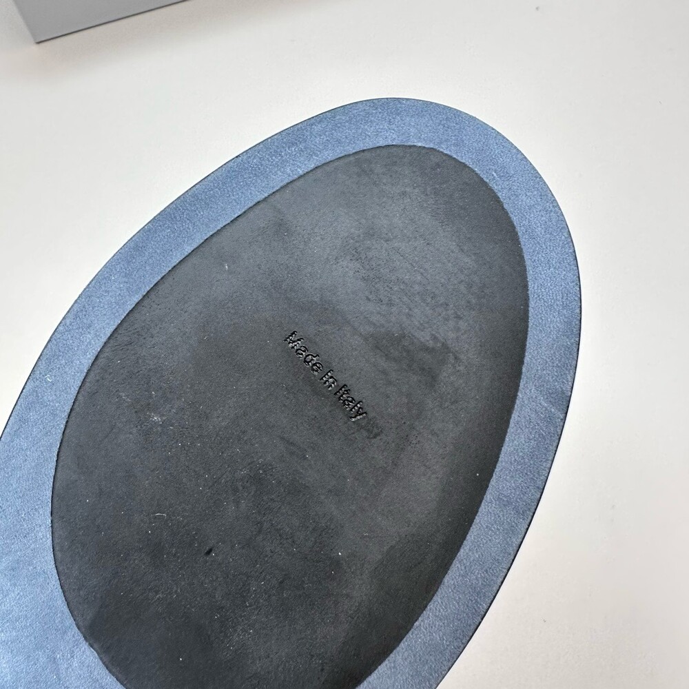 유연한 디컨스트럭티드 카프스킨 나파 가죽 소재의 클래식 발레 슬리퍼. 라운드 토 및 발등 부분의 섬세한 엘라스틱 스트랩.