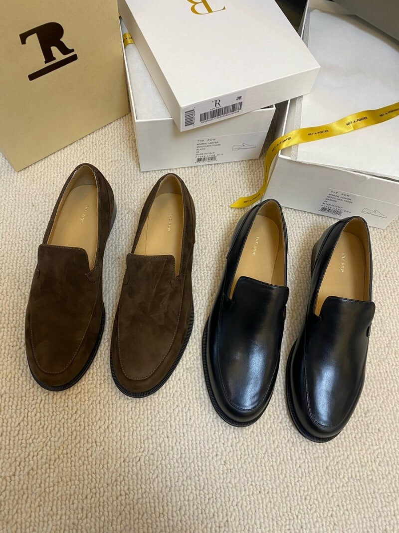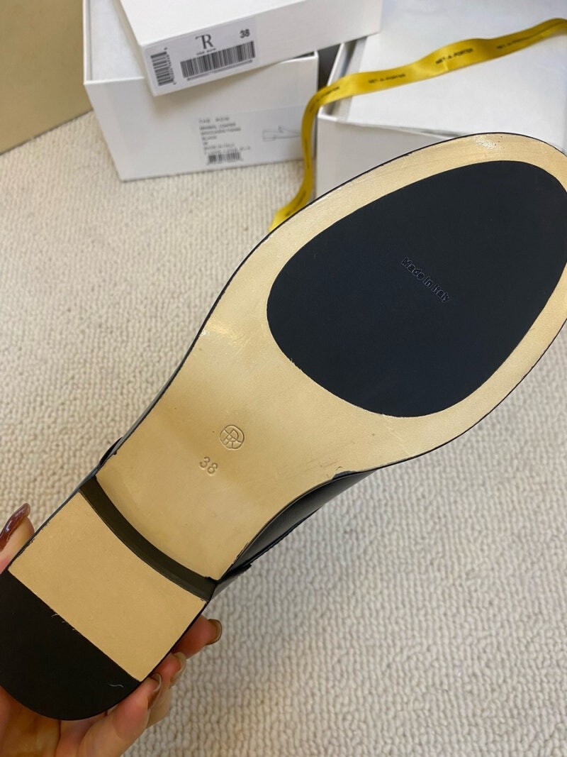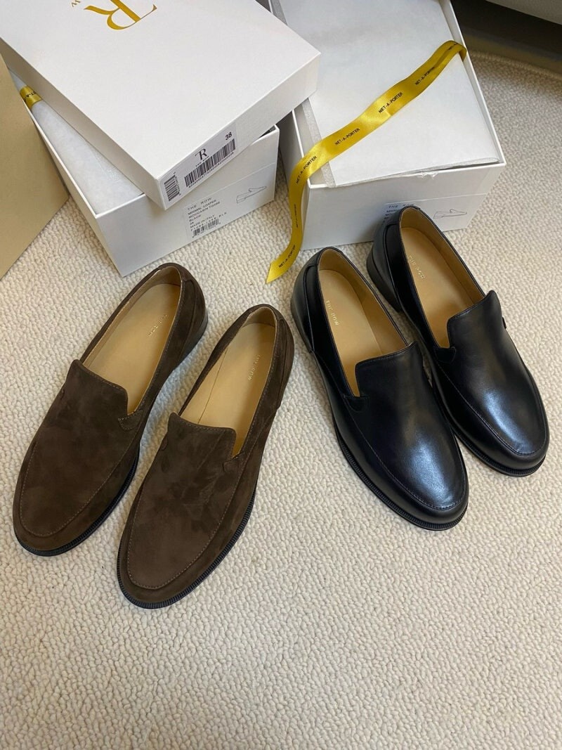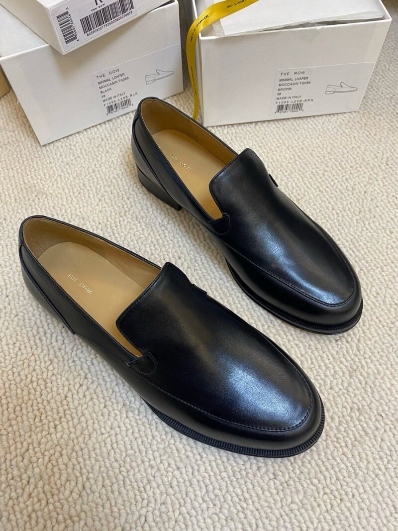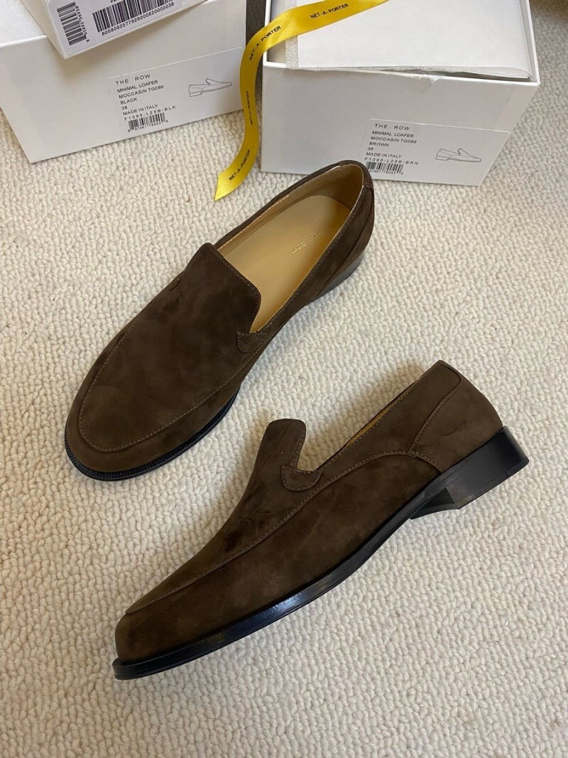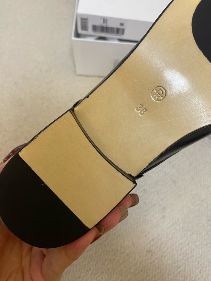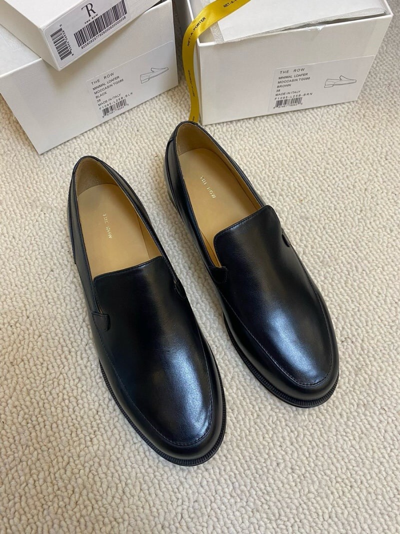 폴리시드 나파 가죽 소재의 모카신 스타일 로퍼. 길게 디자인된 토 및 낮은 스택 힐.