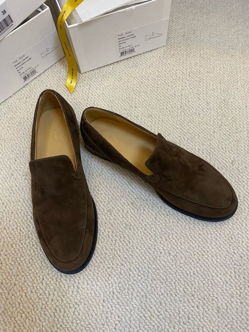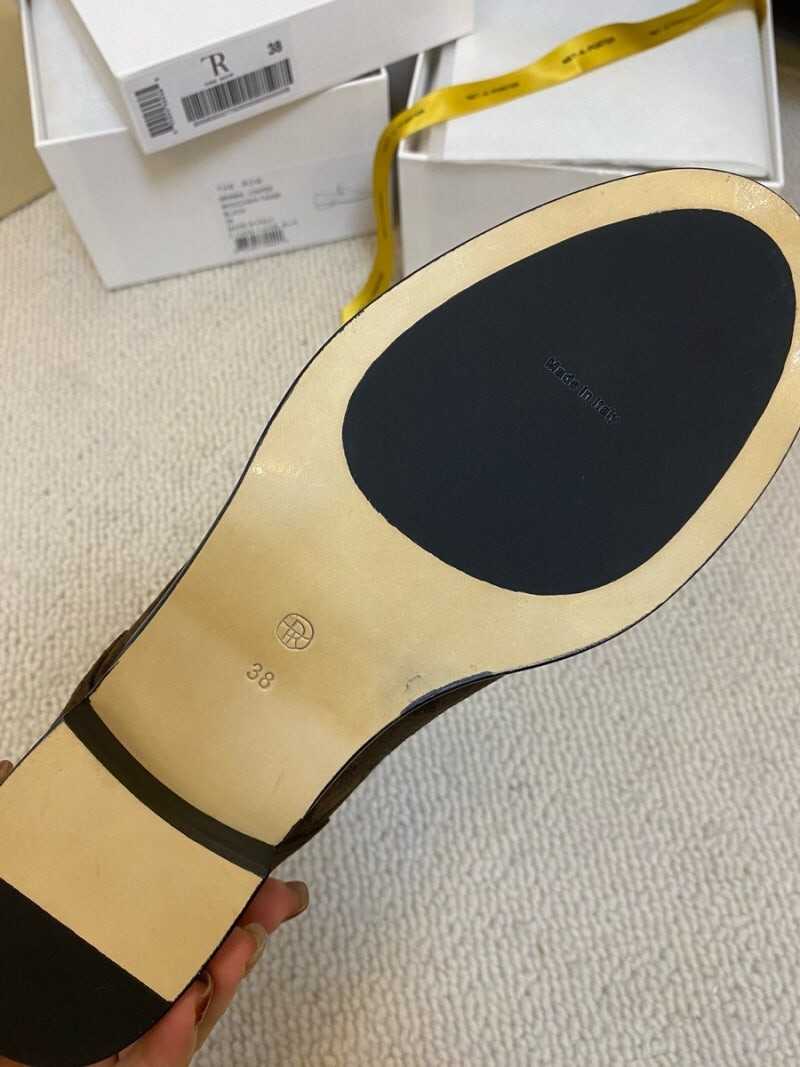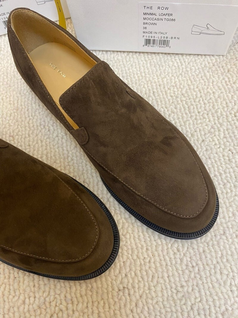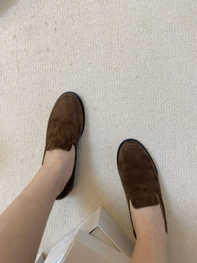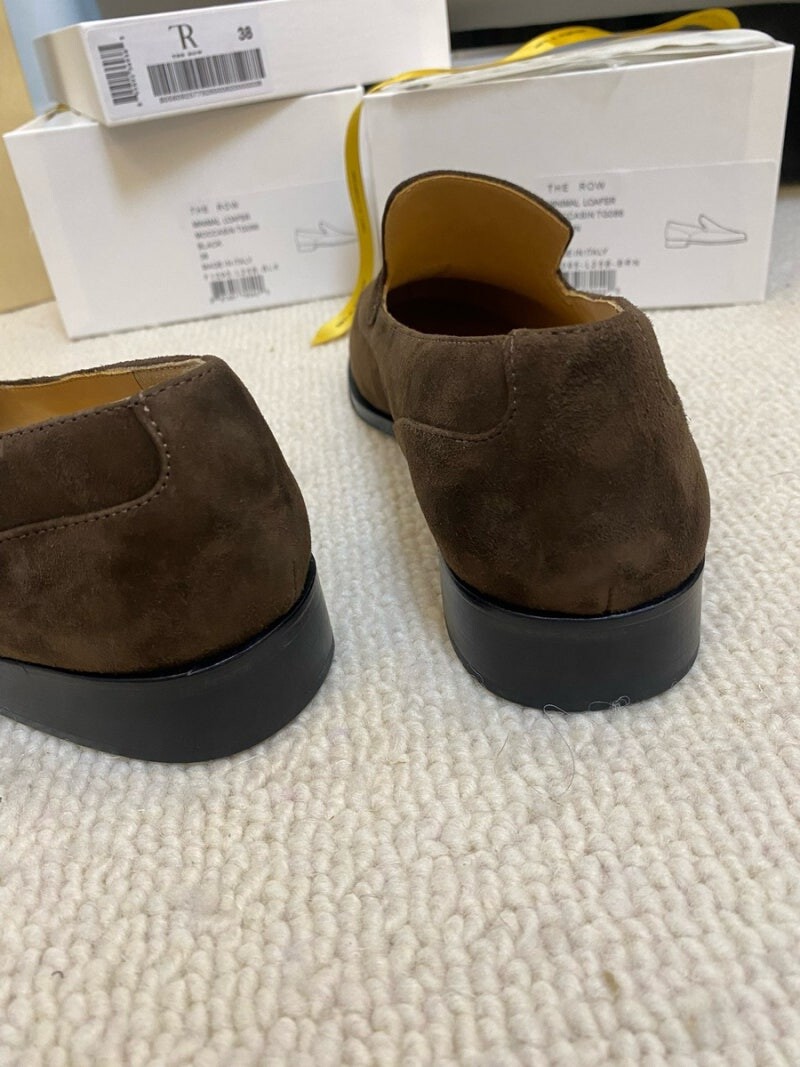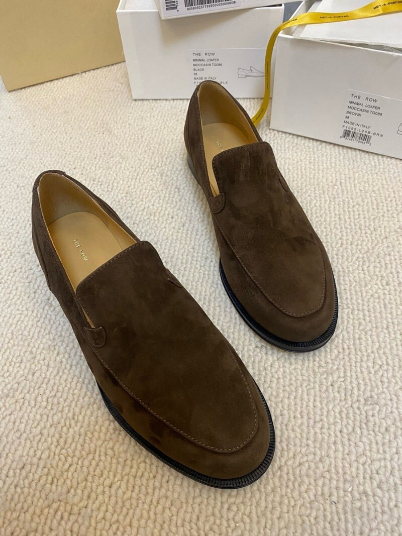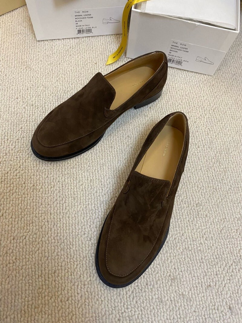 폴리시드 나파 가죽 소재의 모카신 스타일 로퍼. 길게 디자인된 토 및 낮은 스택 힐.