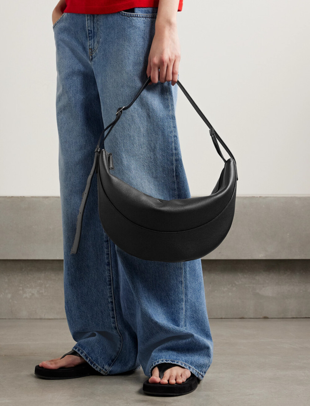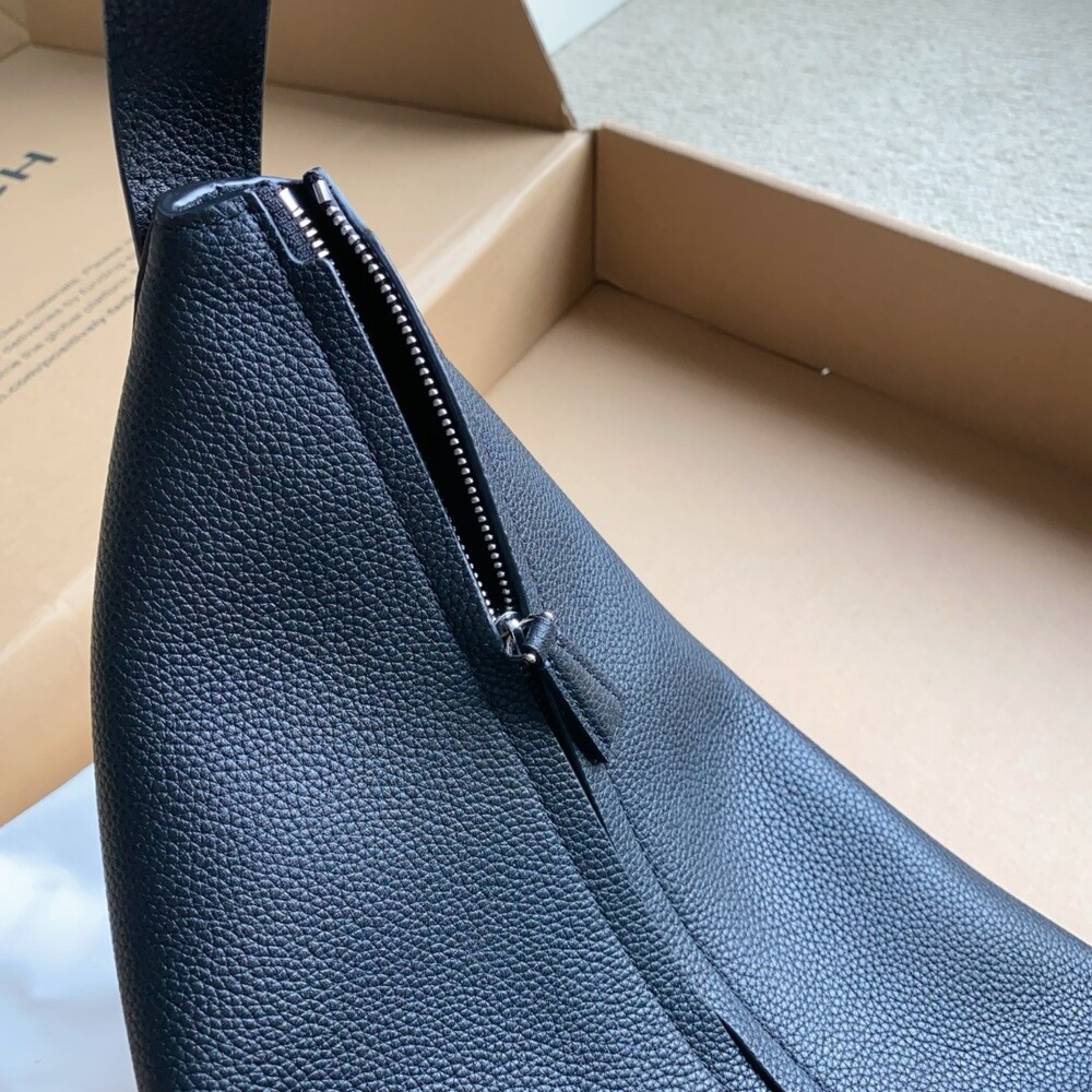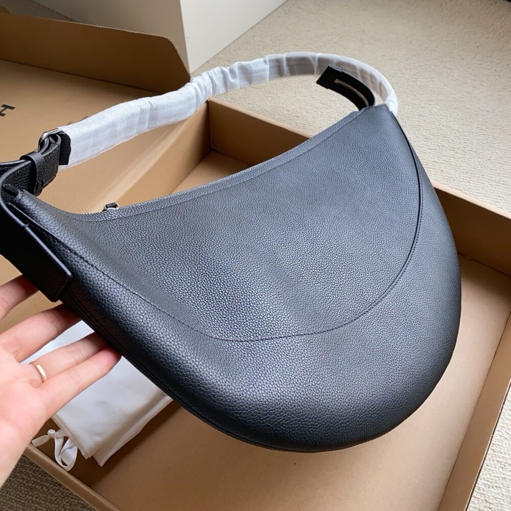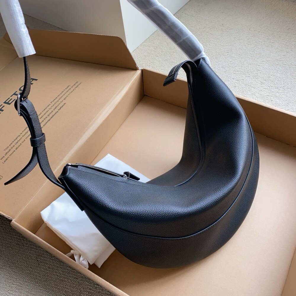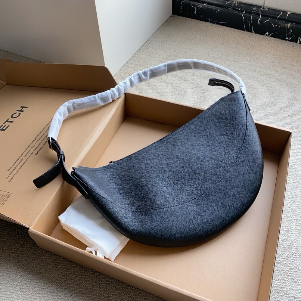 부드럽고 가벼운 나파 가죽 소재로 선보이는 초승달 형태의 크로스바디 백. 지퍼 클로저 및 메탈 버클이 달린 조절 가능한 스트랩.