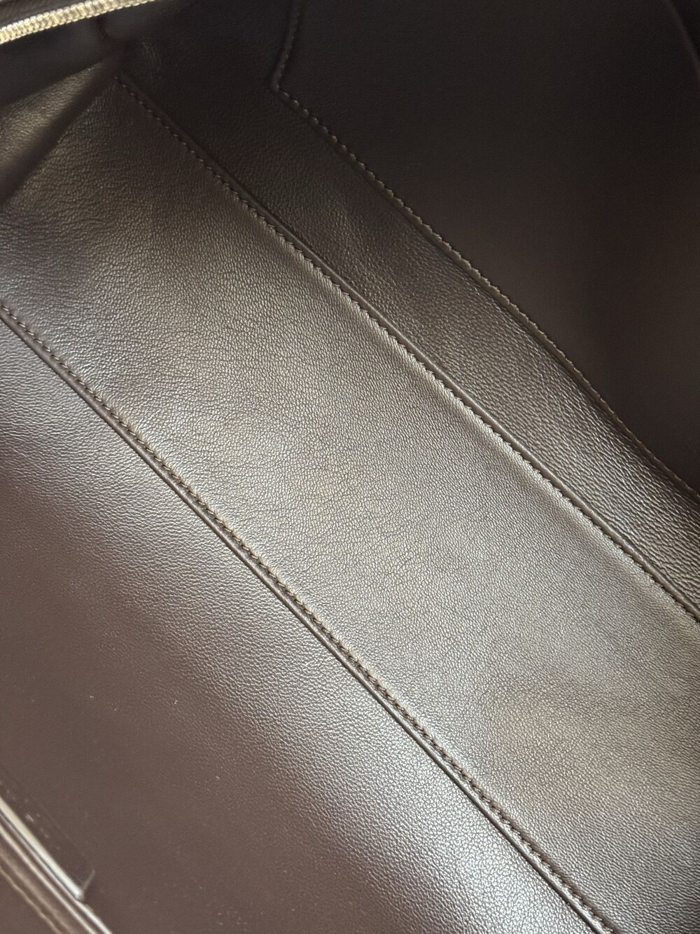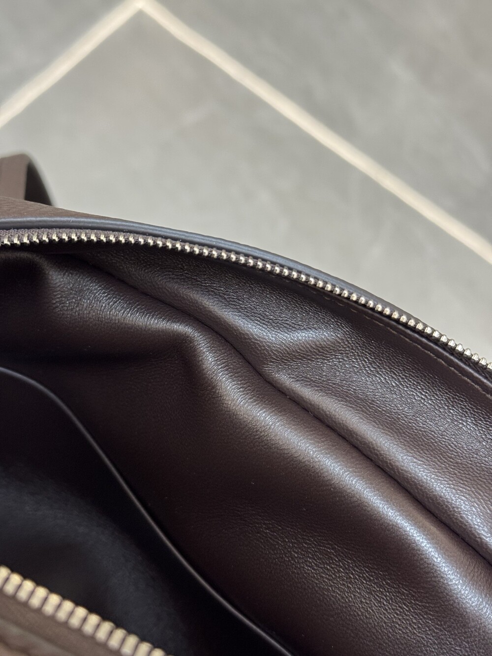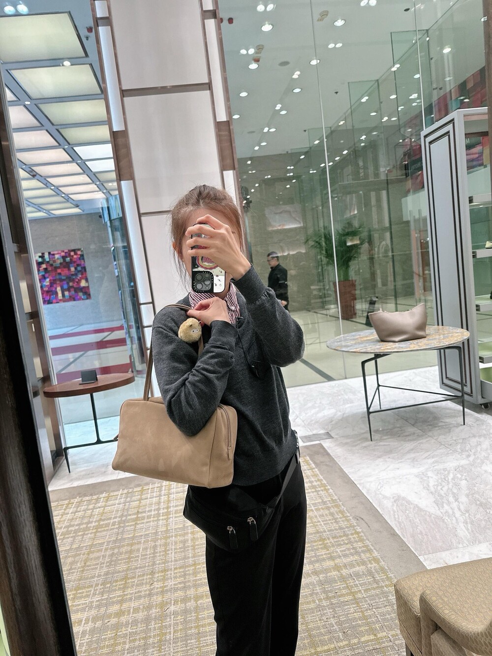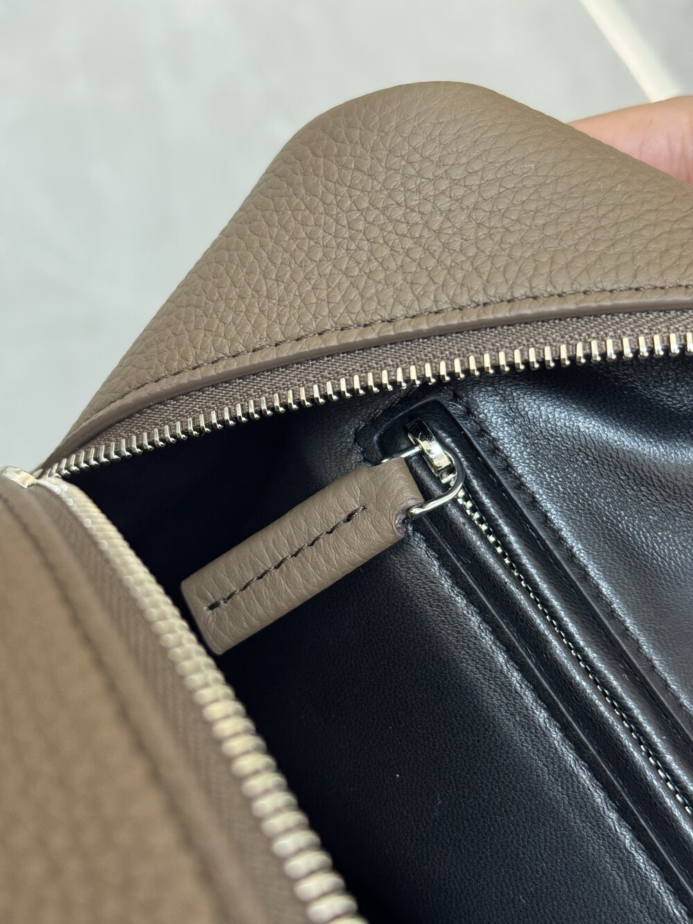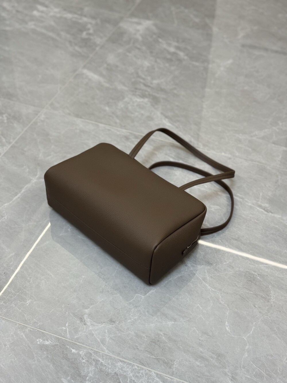 둥근 가장자리 구조, 긴 플랫 핸들과 듀얼 지퍼 클로저가 특징인 부드러운 가죽 소재의 소프트 볼링 백. 자연스러운 그레인의 표면을 가볍게 닦아내 세련된 스웨이드 느낌을 연출했습니다.
