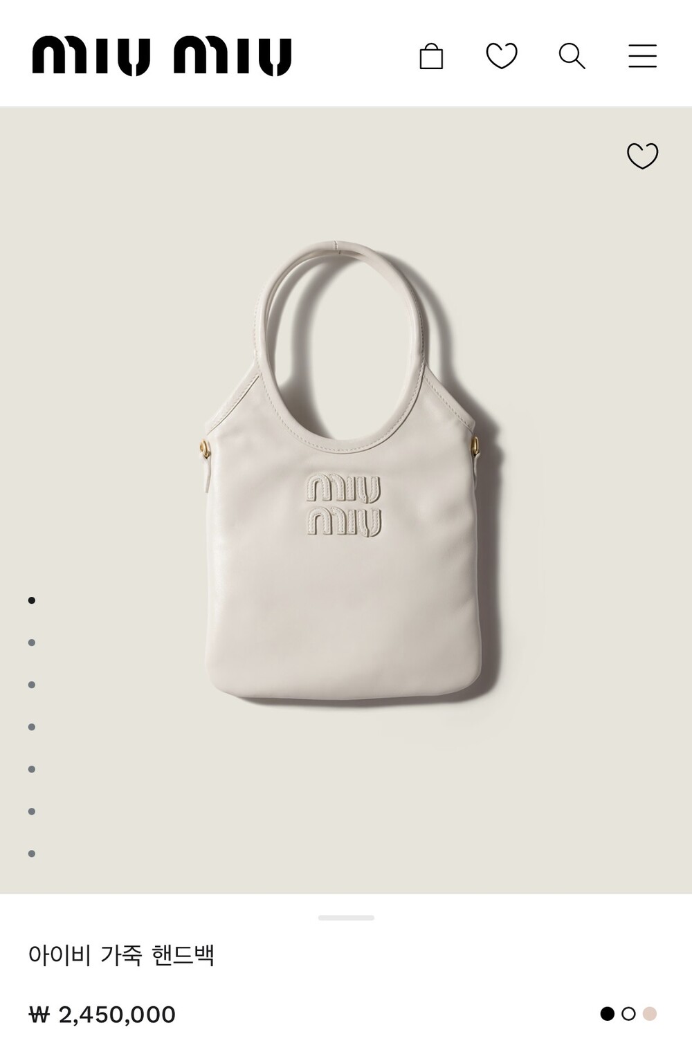 미우미우 아이비 가죽 핸드백