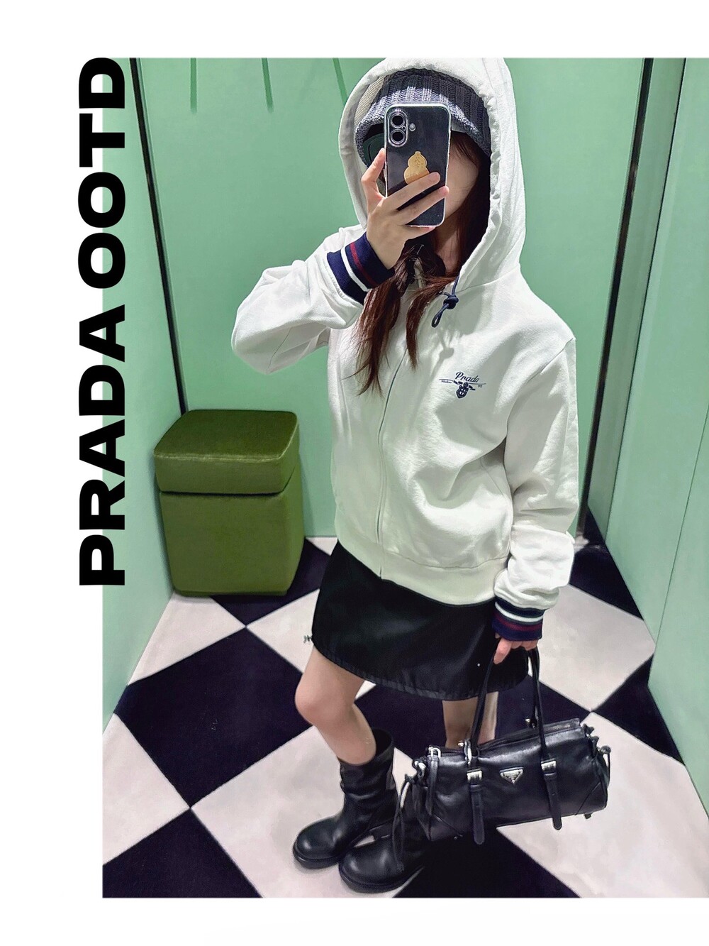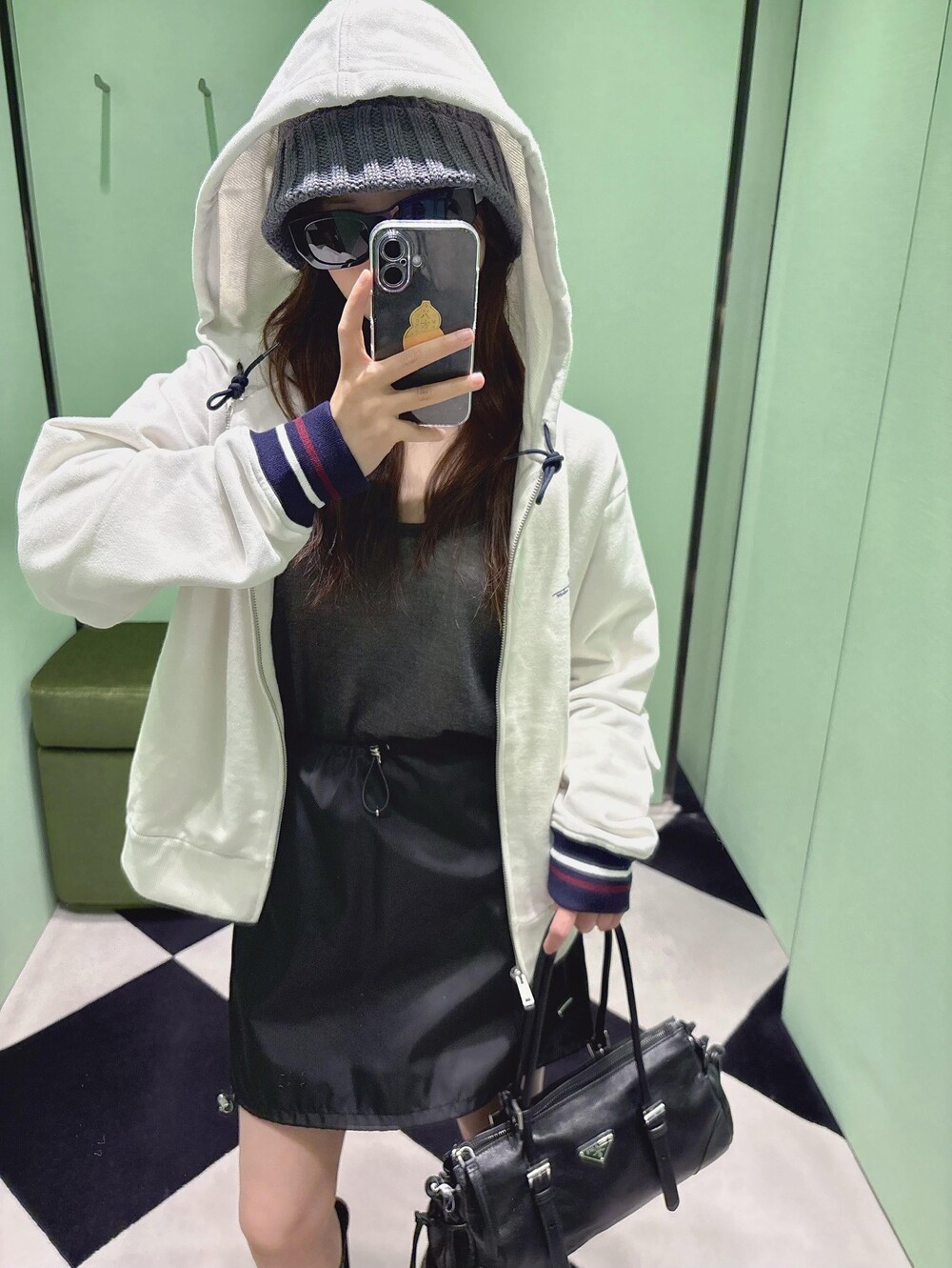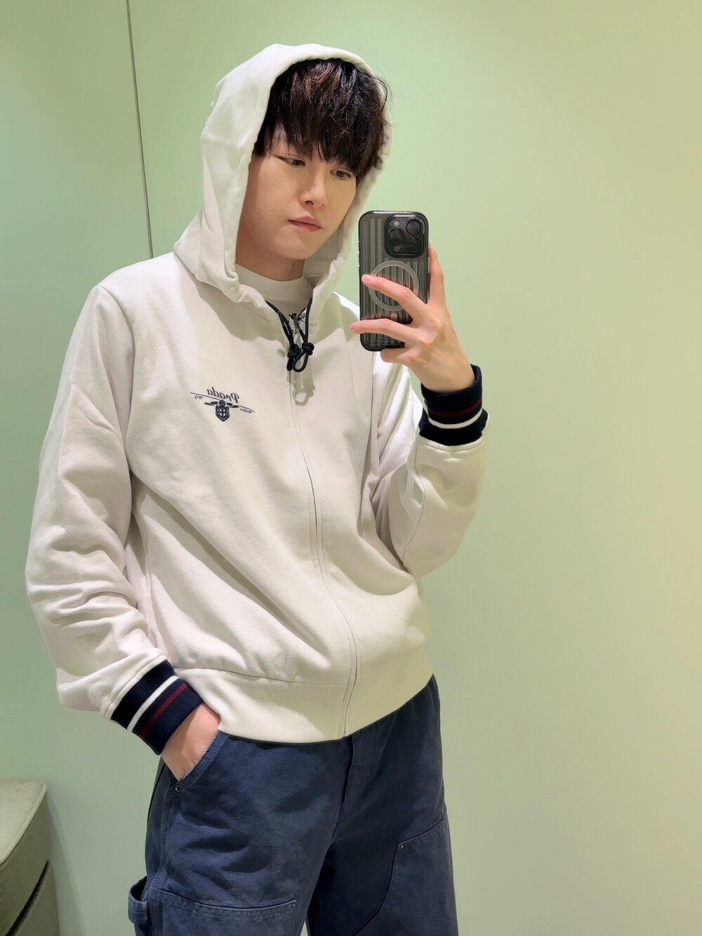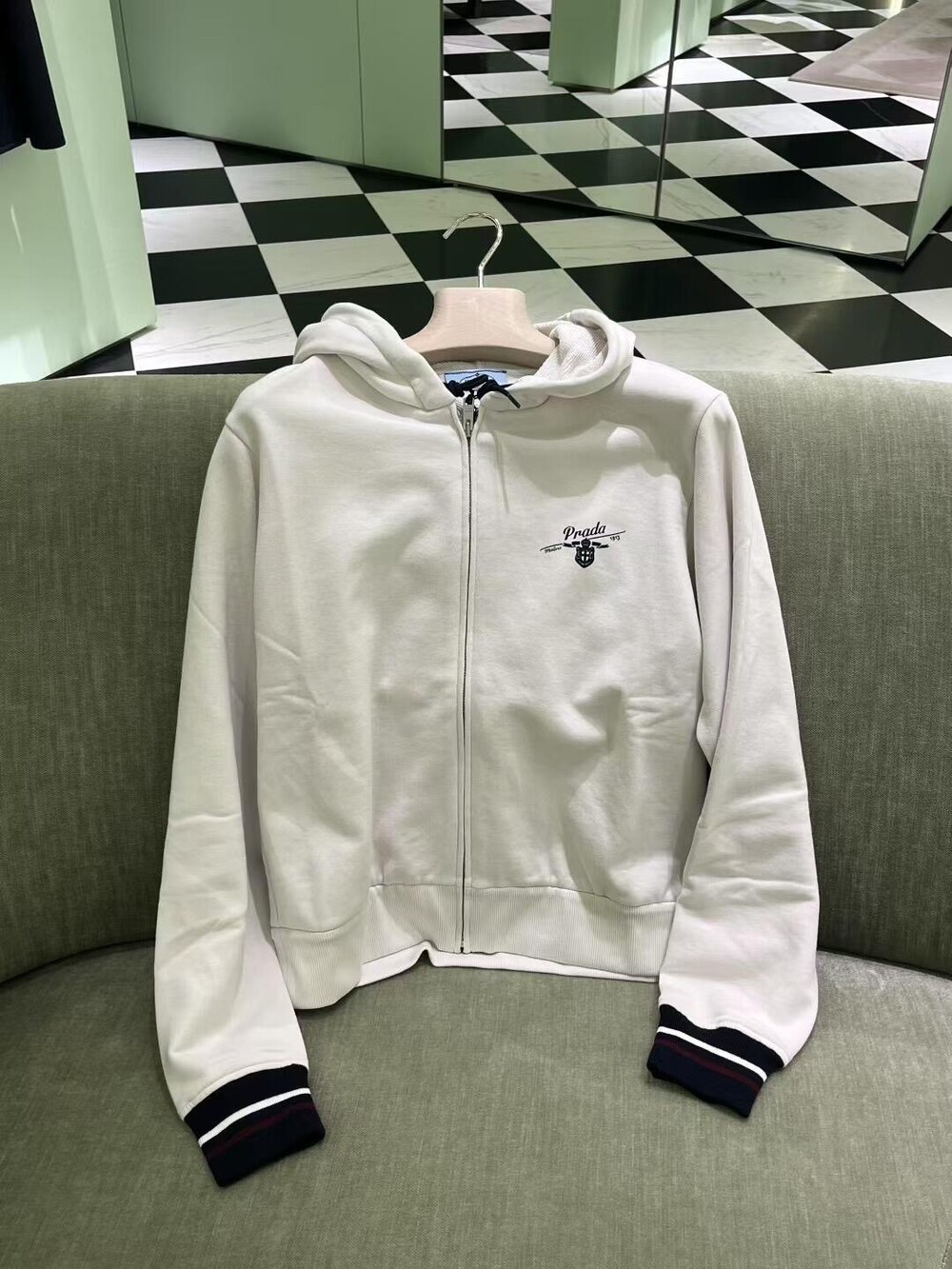 프라다 코튼 플리스 후드 집업