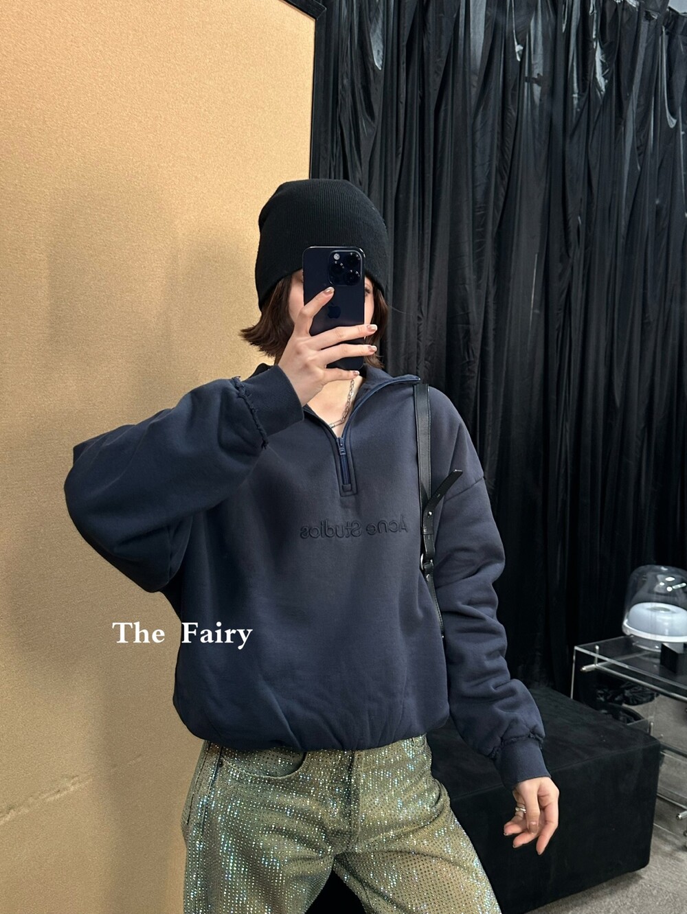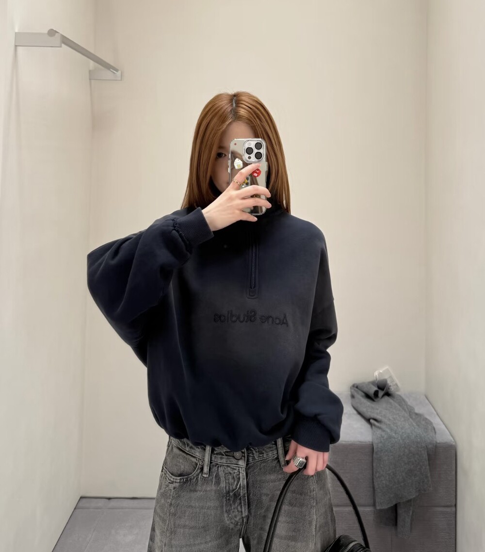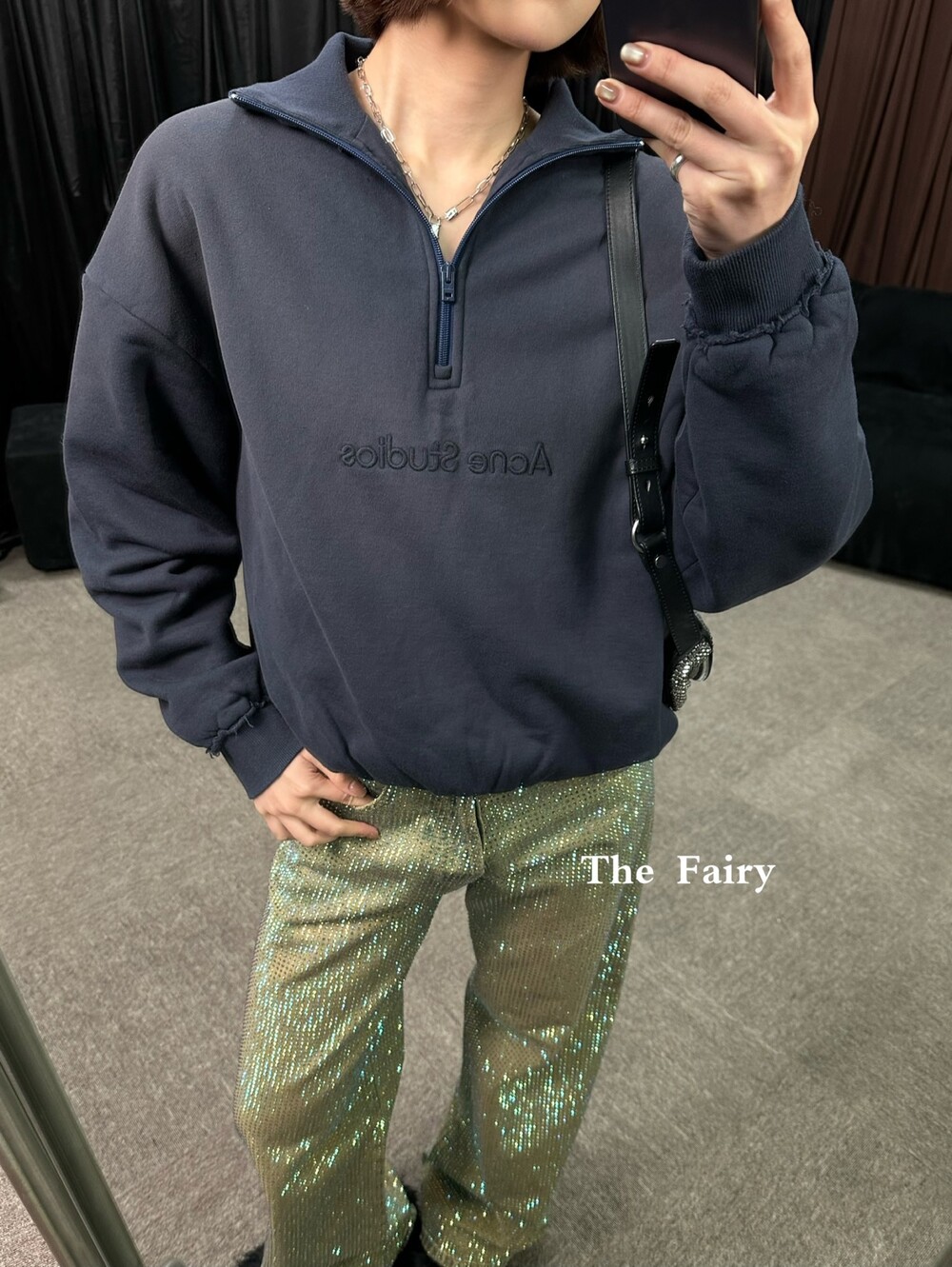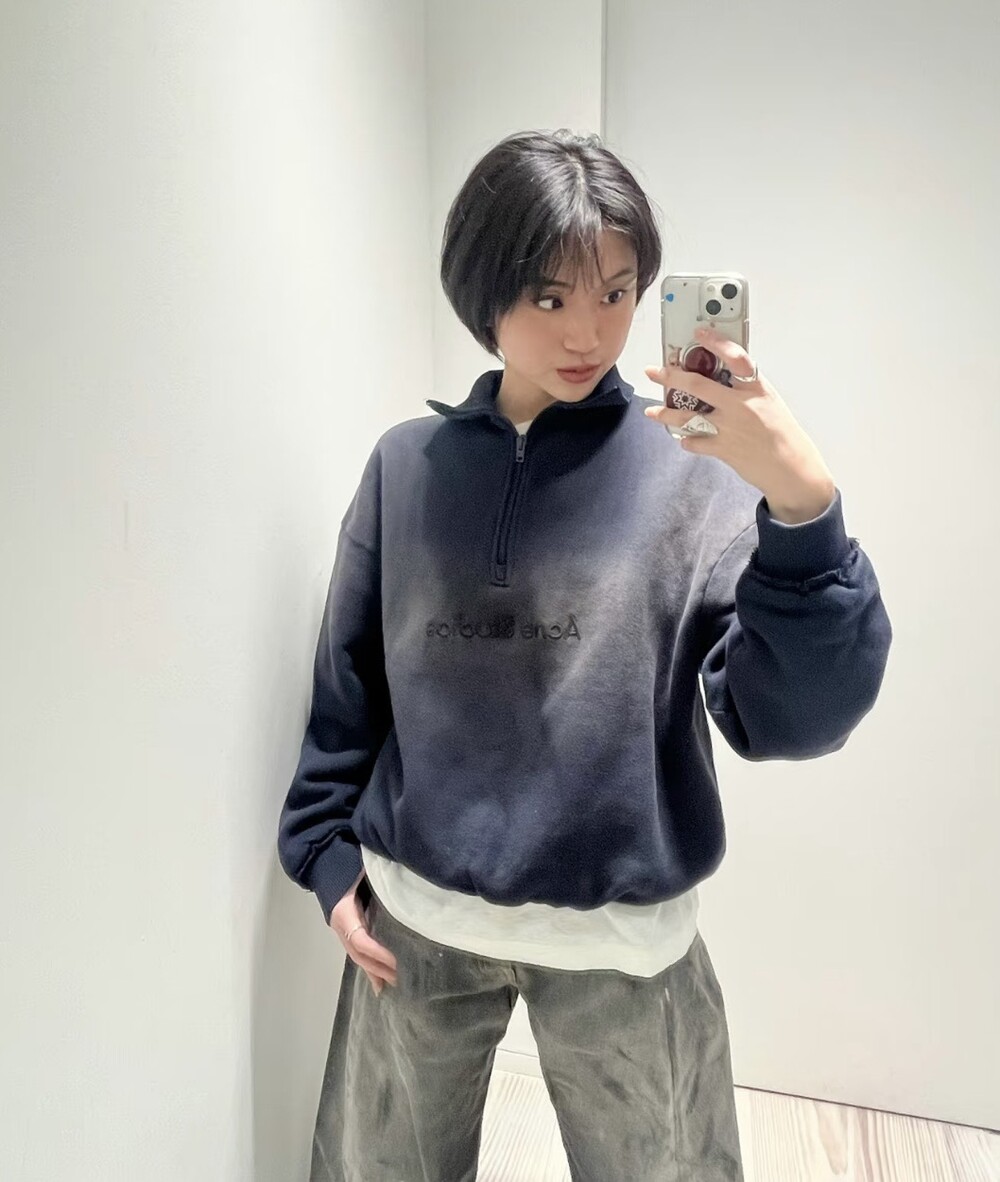 부드러운 플리스 소재에 피치 가공 처리와 가먼트 다잉 마감으로 제작된 스웨터입니다. 시즌 컬러의 아크네 스튜디오 로고가 포인트입니다. 골지 하이넥과 지퍼 여밈으로 디자인되었으며, 편안한 핏에 엉덩이까지 오는 기장, 그리고 신축성 있는 밑단으로 마무리되었습니다.