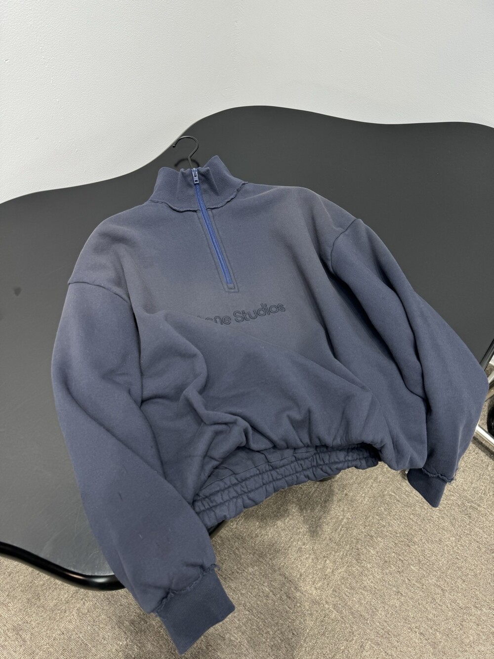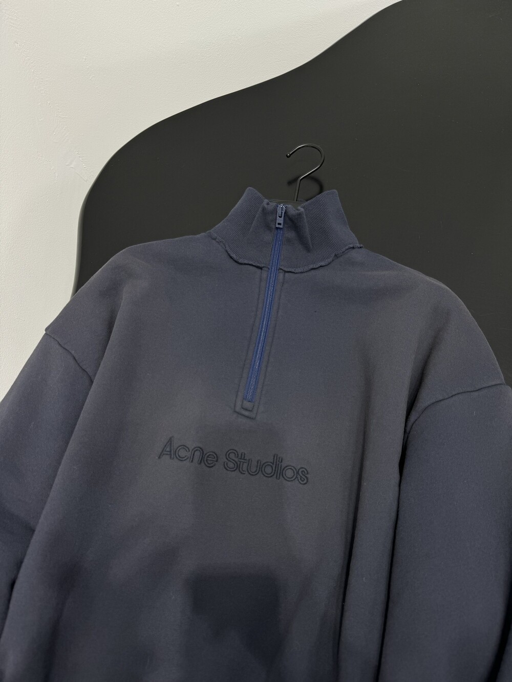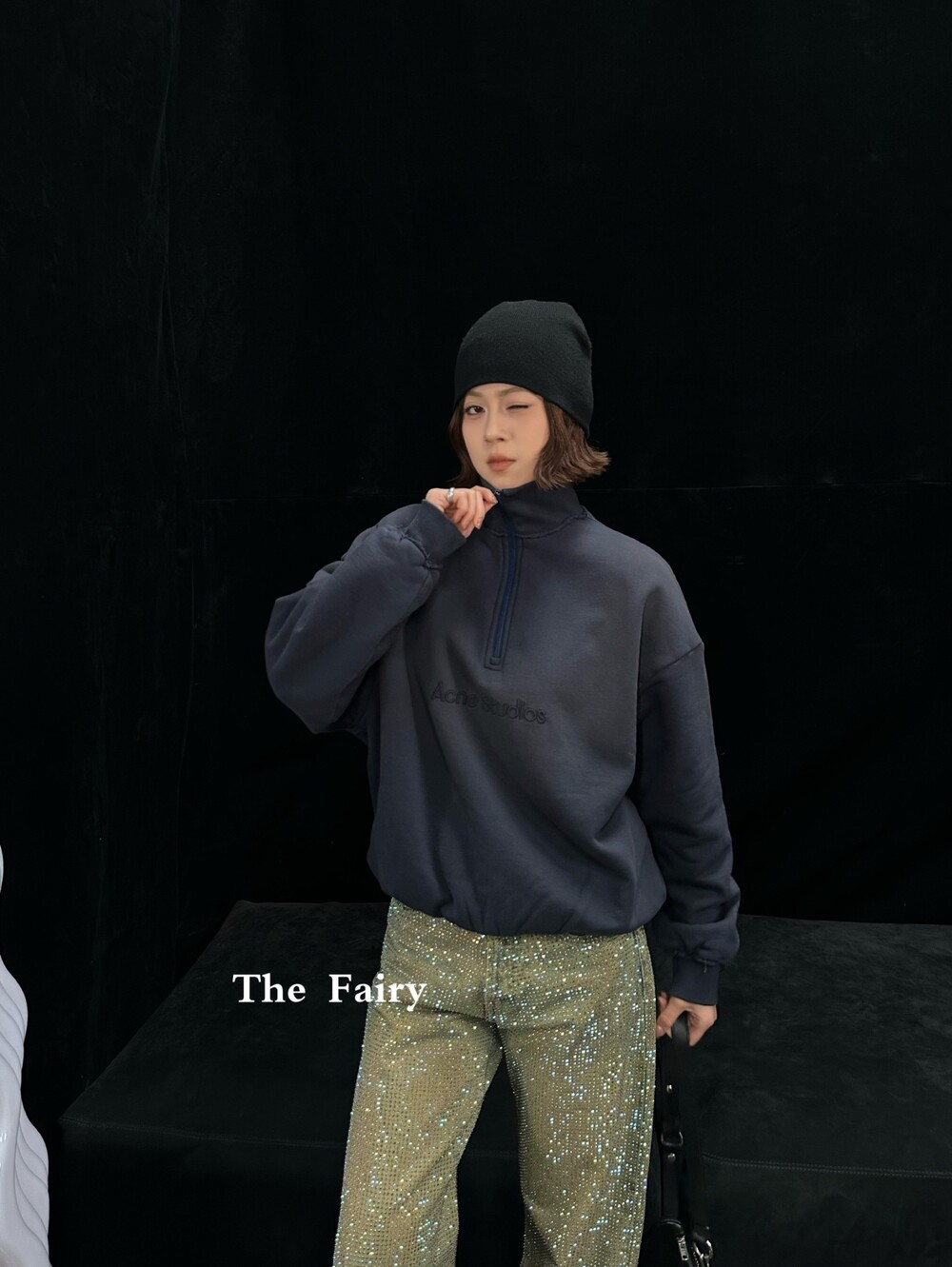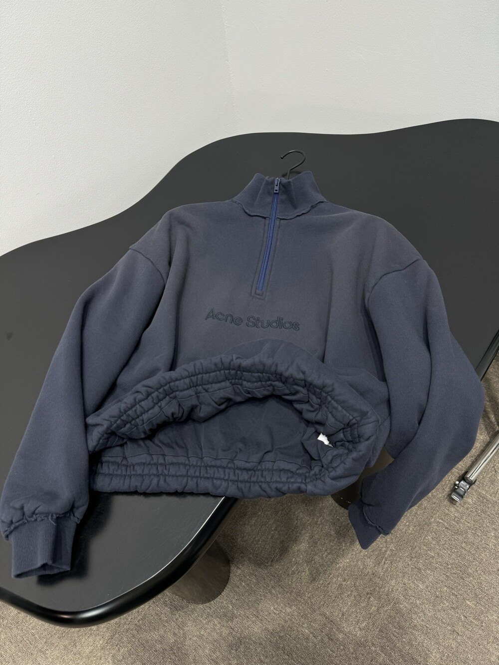 부드러운 플리스 소재에 피치 가공 처리와 가먼트 다잉 마감으로 제작된 스웨터입니다. 시즌 컬러의 아크네 스튜디오 로고가 포인트입니다. 골지 하이넥과 지퍼 여밈으로 디자인되었으며, 편안한 핏에 엉덩이까지 오는 기장, 그리고 신축성 있는 밑단으로 마무리되었습니다.