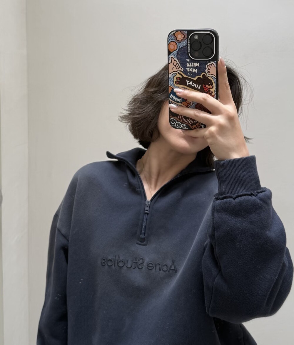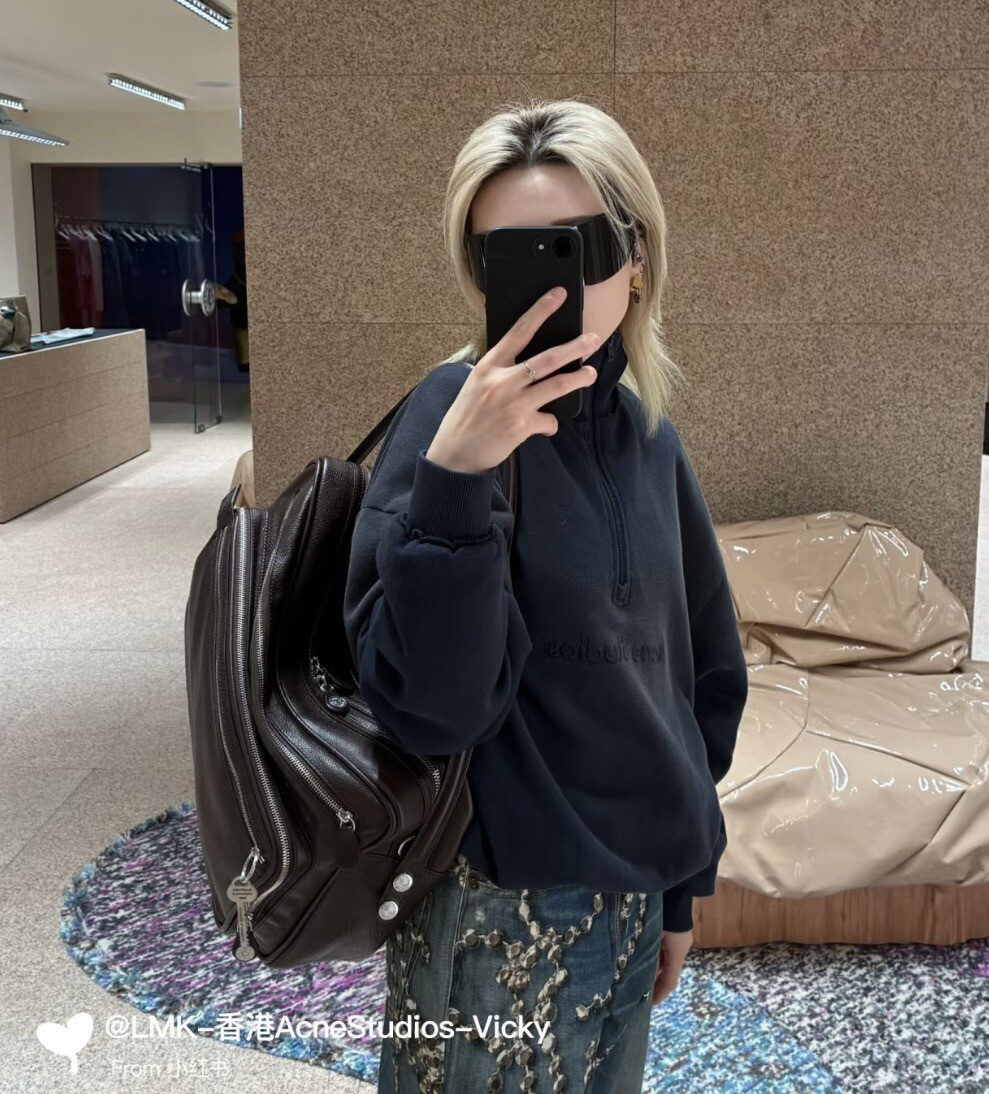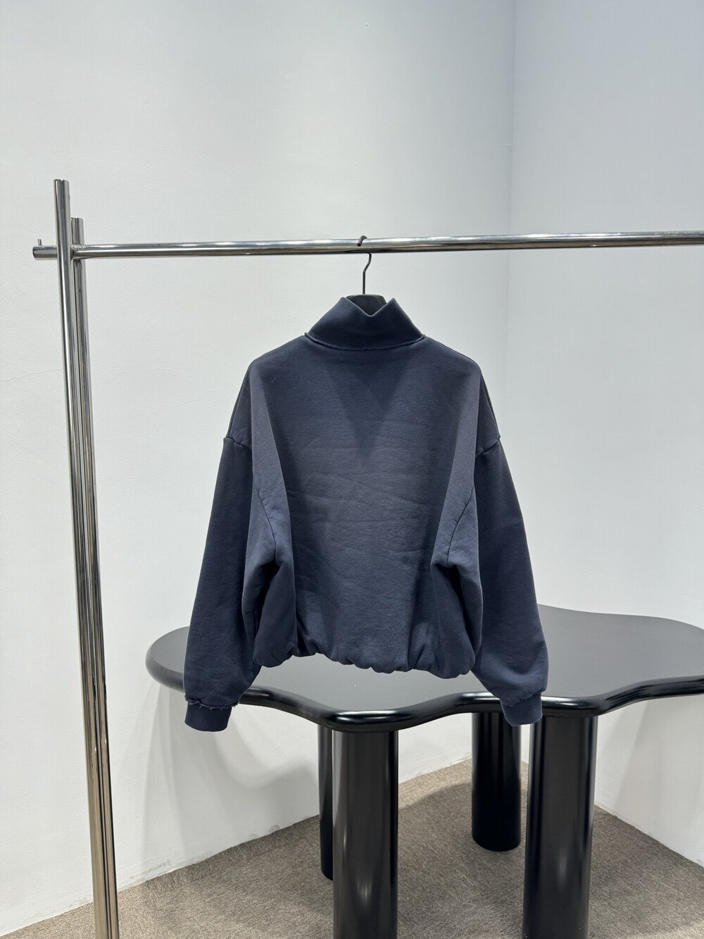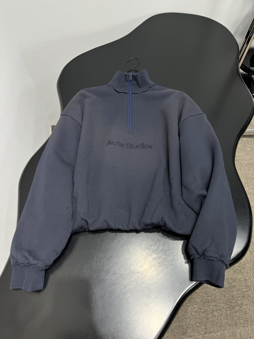 부드러운 플리스 소재에 피치 가공 처리와 가먼트 다잉 마감으로 제작된 스웨터입니다. 시즌 컬러의 아크네 스튜디오 로고가 포인트입니다. 골지 하이넥과 지퍼 여밈으로 디자인되었으며, 편안한 핏에 엉덩이까지 오는 기장, 그리고 신축성 있는 밑단으로 마무리되었습니다.