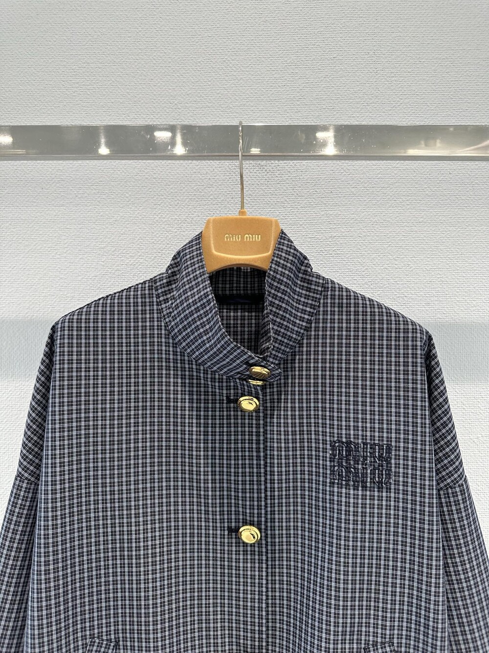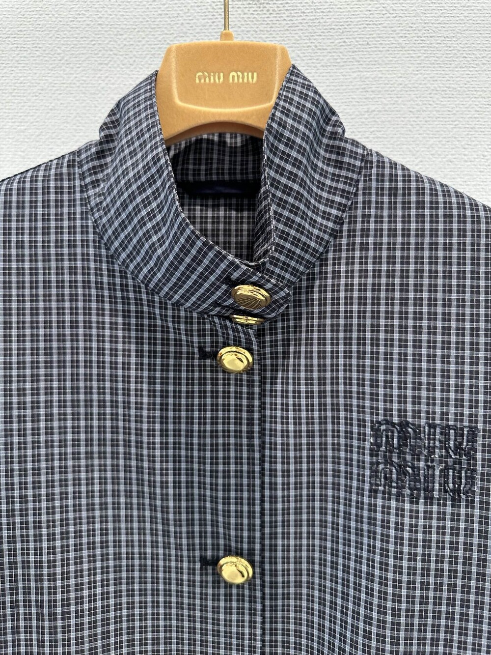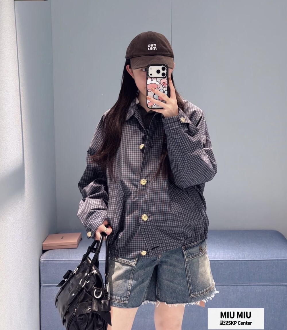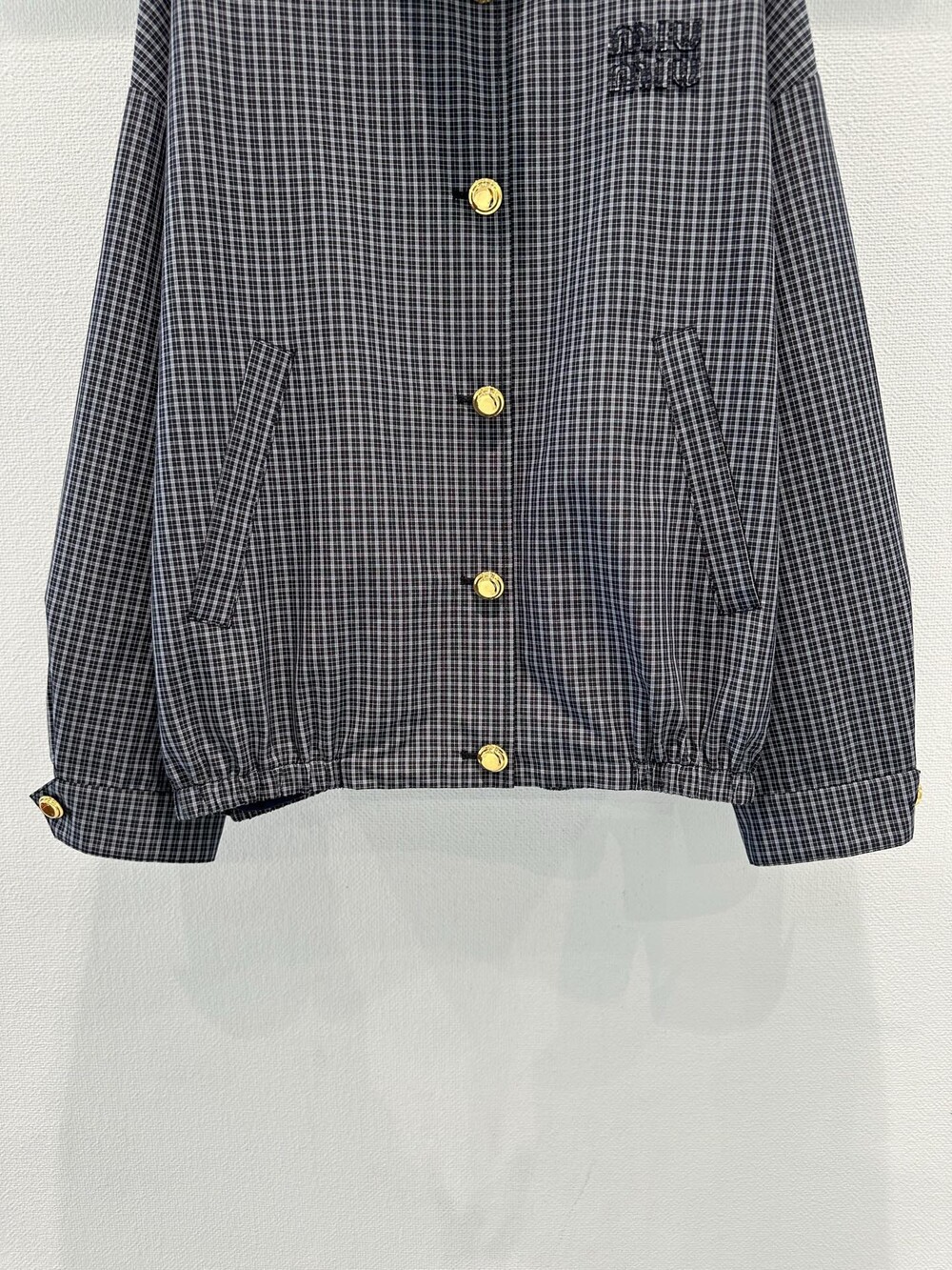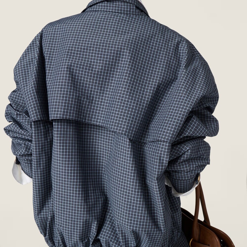미우미우 체크 테크니컬 패브릭 블루종 재킷