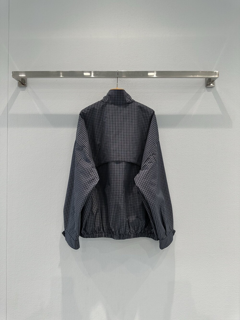 체크 테크니컬 패브릭 블루종 재킷
