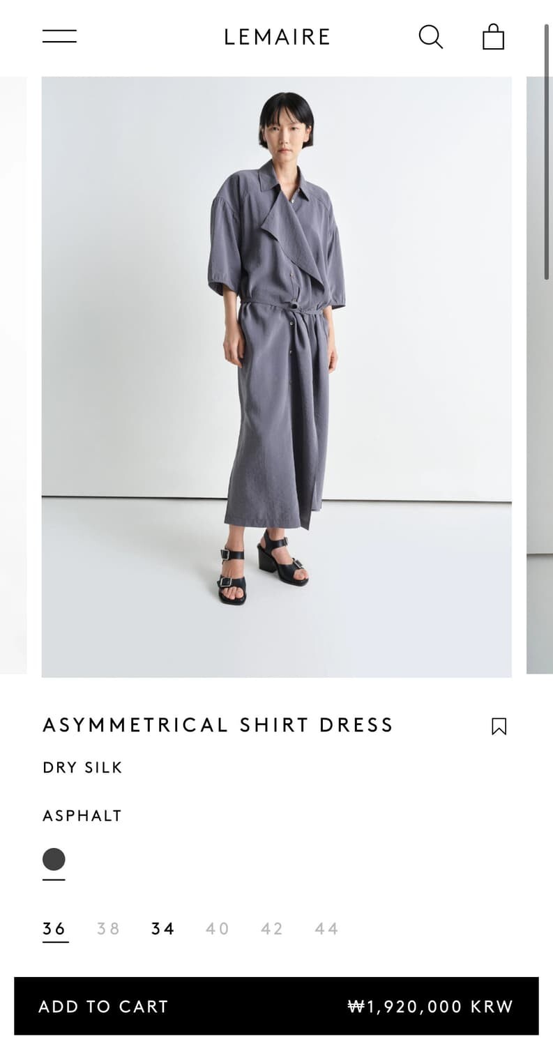 르메르 어시메트리컬 셔츠 드레스