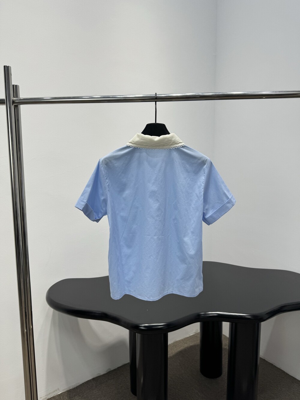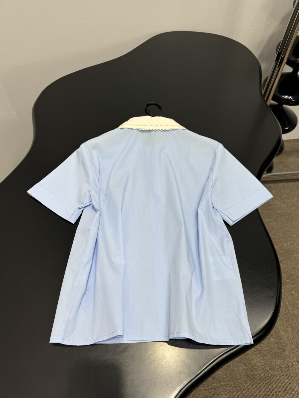 어린 시절의 워드로브에서 영감을 얻은 디테일이 돋보이는 셔츠입니다. 런웨이 모티프를 담은 정교한 자수 칼라와 클래식한 실루엣이 어우러져 미우미우만의 아이코닉한 감성을 드러냅니다.