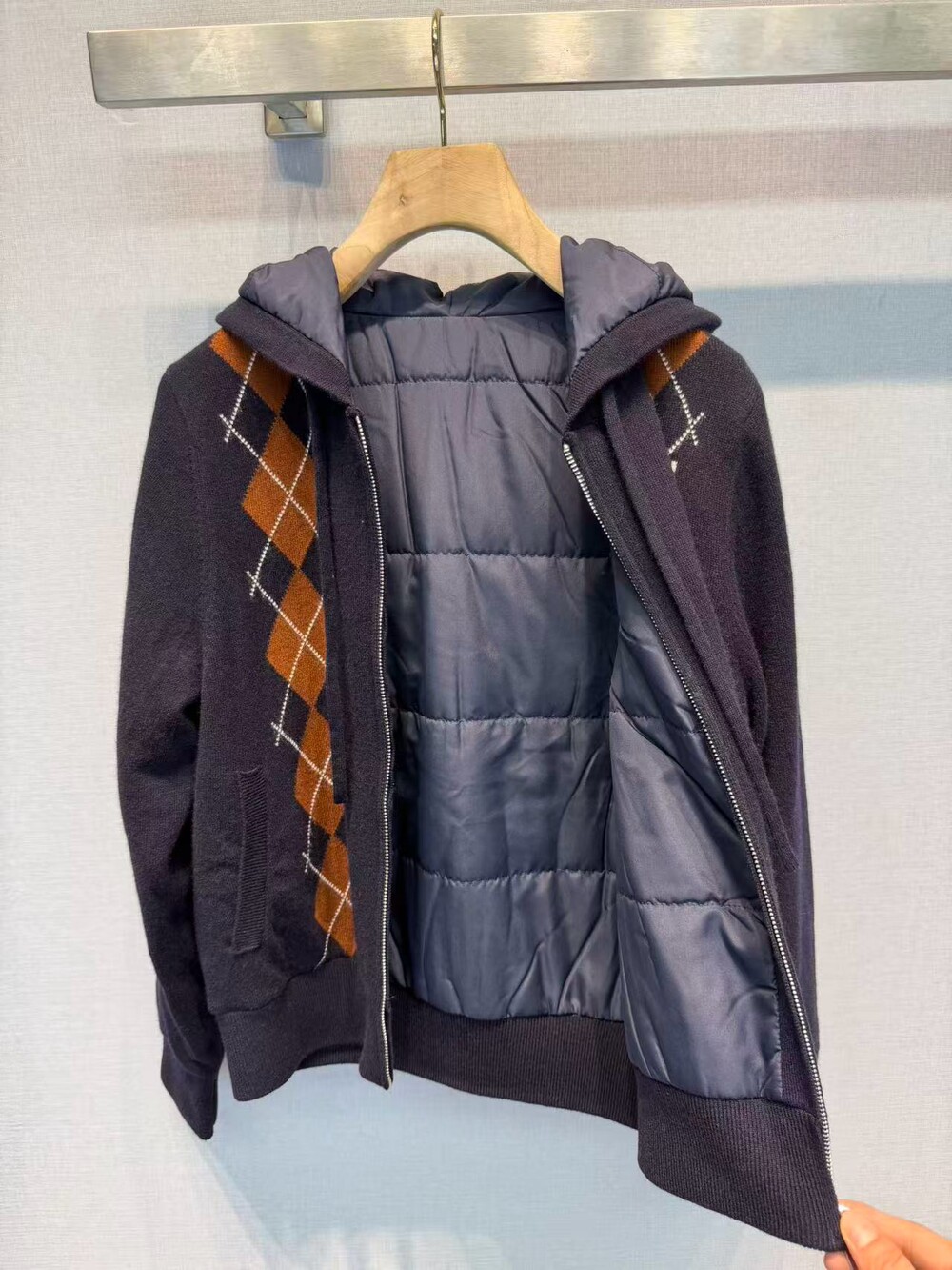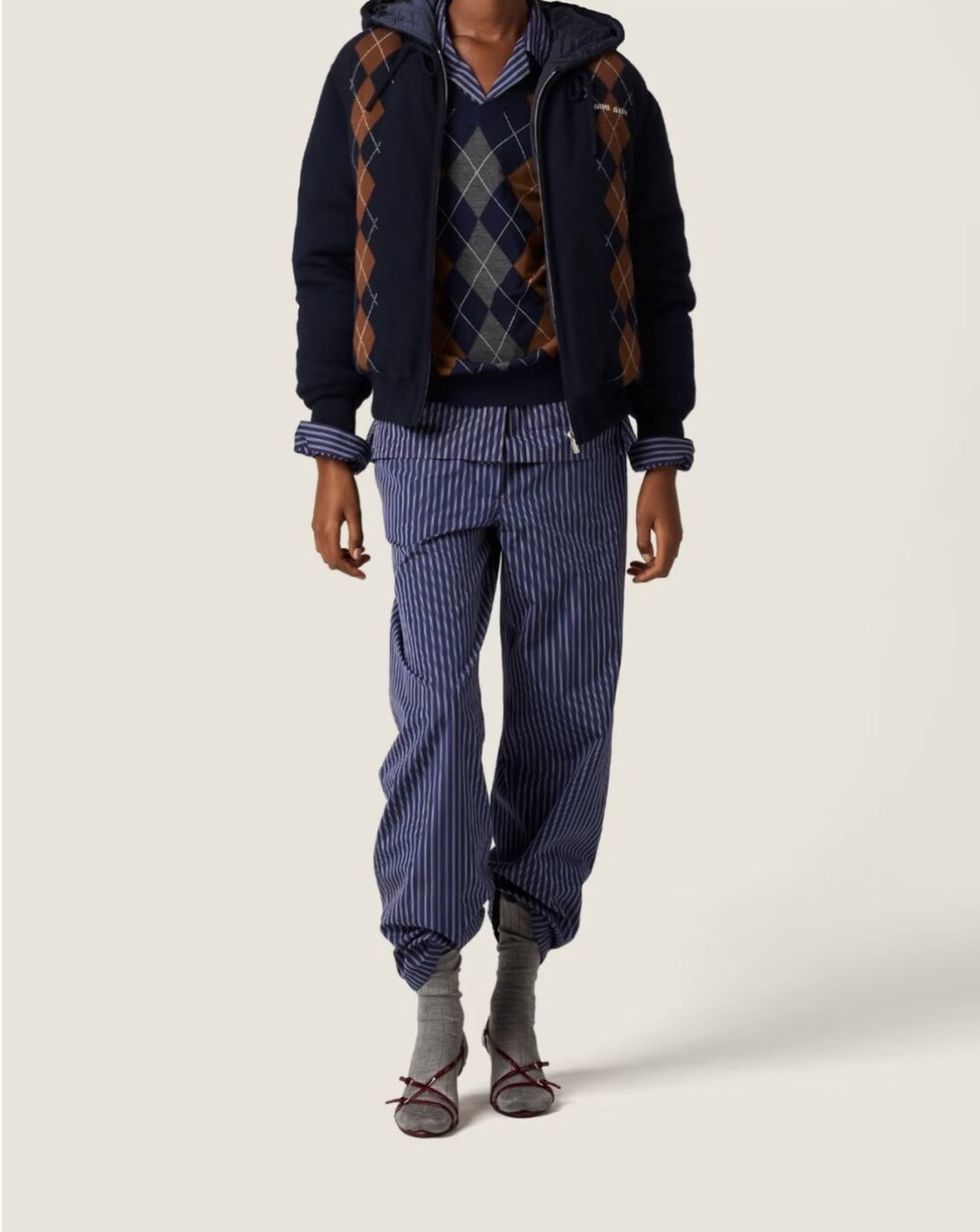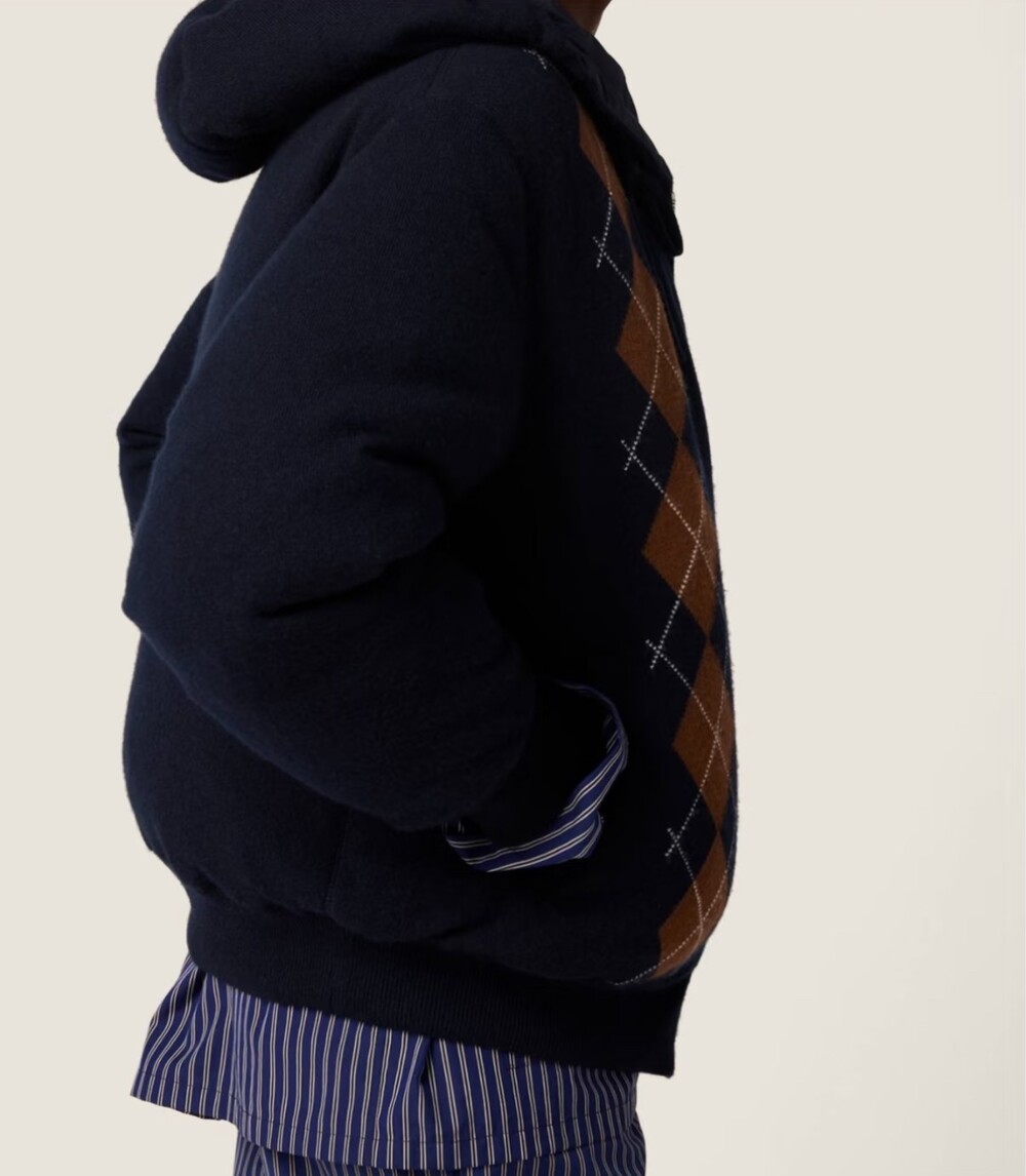 아이코닉한 아가일 스웨터를 재해석한 다운 재킷으로, 기능성 소재 안감과 구스다운 패딩으로 다재다능한 지퍼를 더했습니다. 기능성과 아이코닉한 우아함이 조화를 이루는 제품입니다.