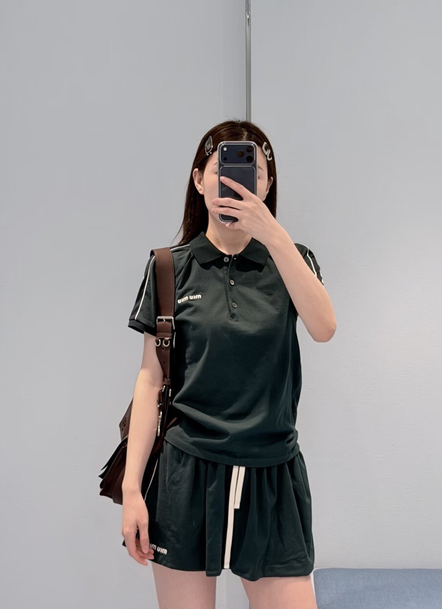 미우미우 코튼 저지 폴로 셔츠