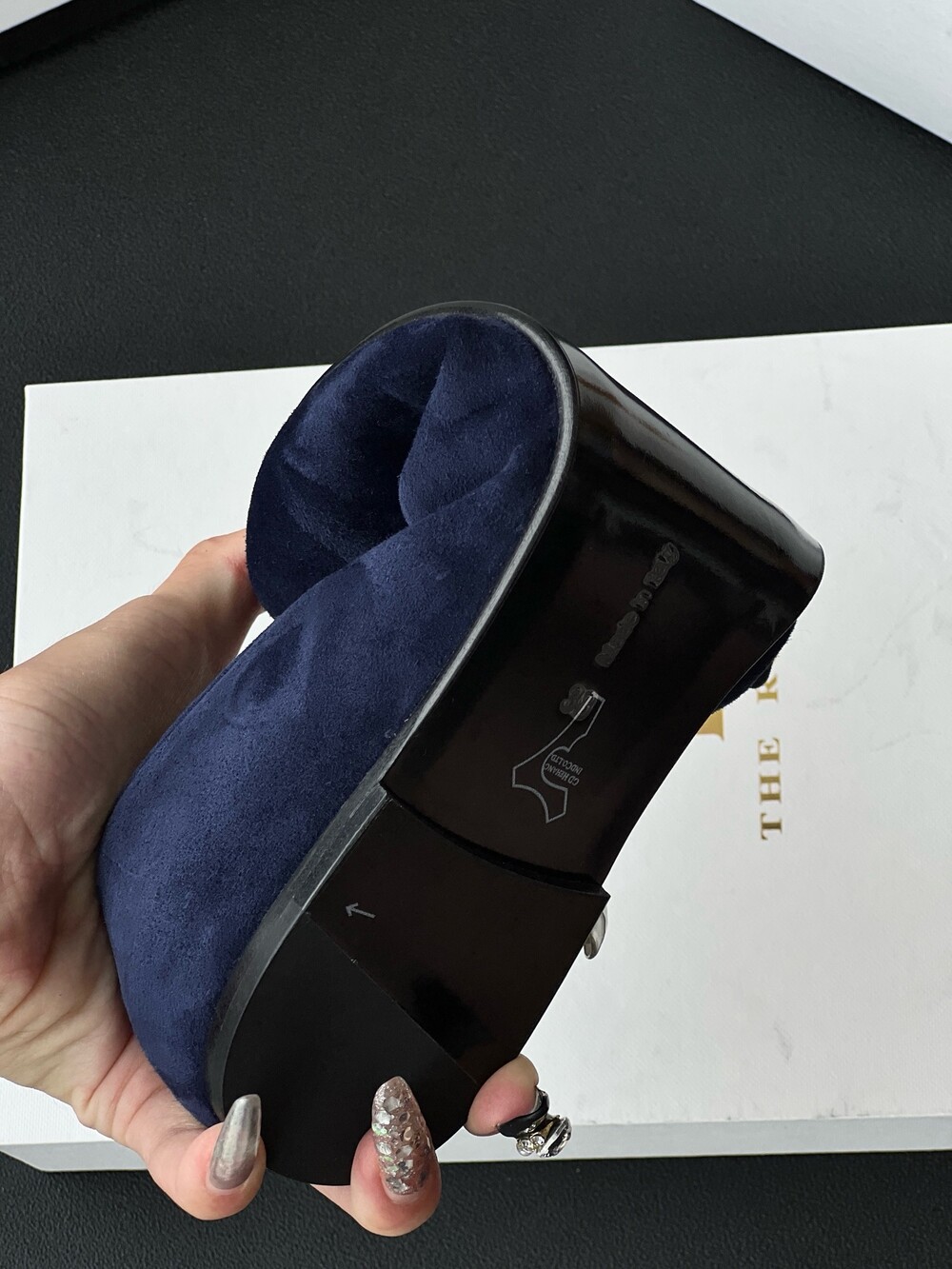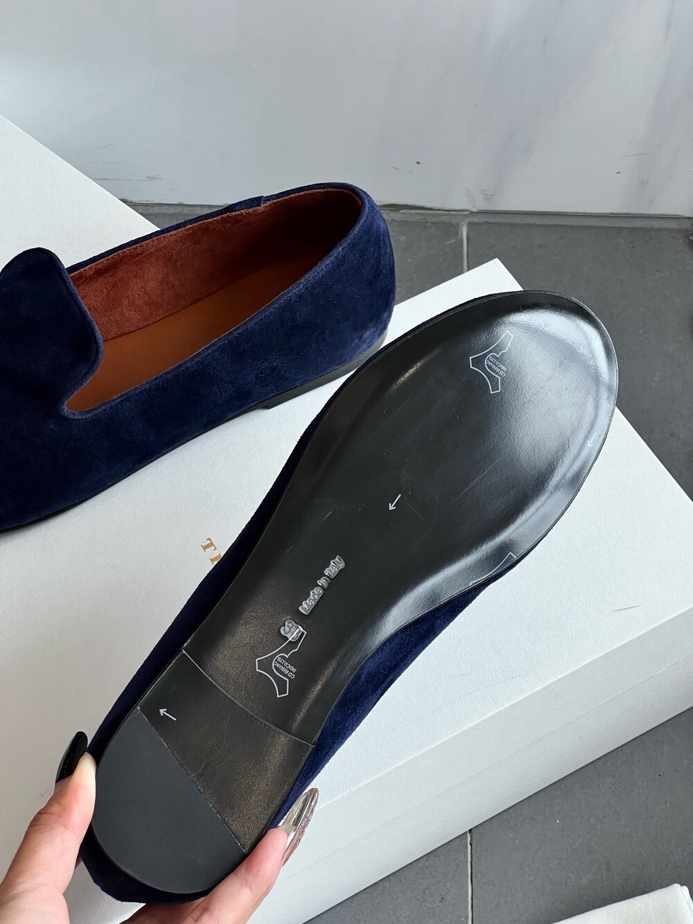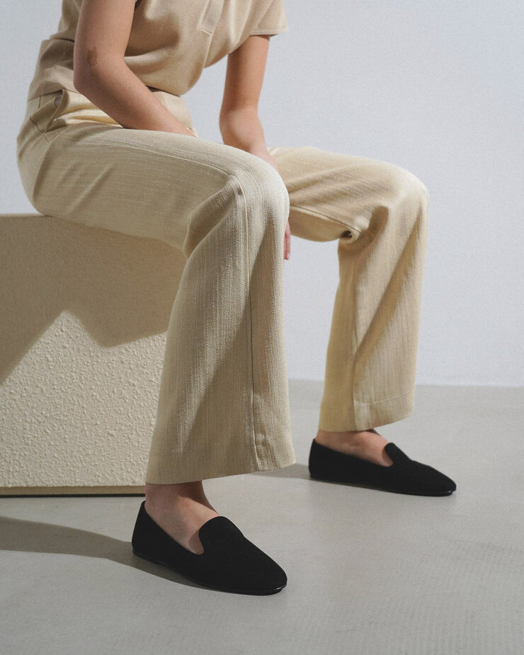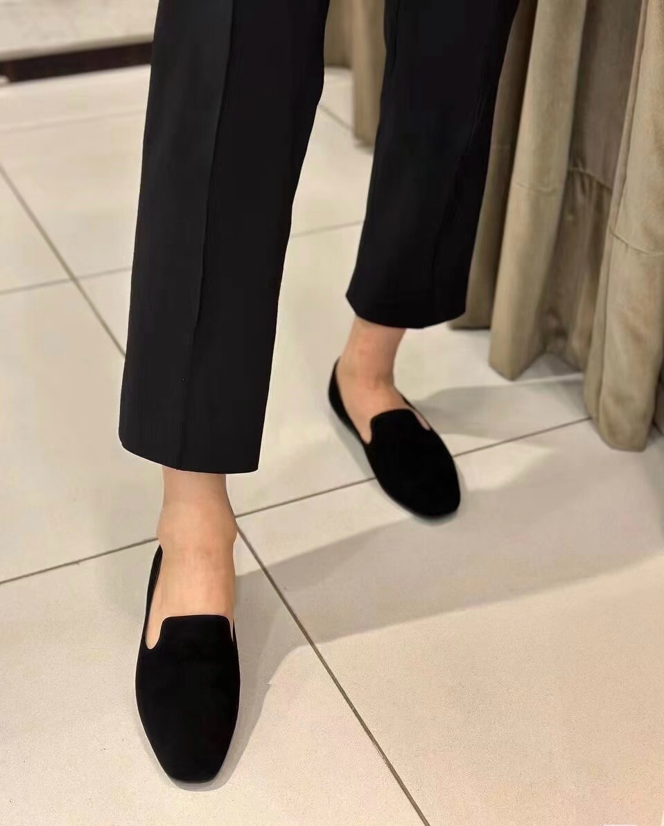 티피(Tippi) 로퍼는 고급 스웨이드 소재로 제작되었으며, 슬리퍼 실루엣에 둥근 앞코가 특징이며, 핸드스티치 디테일이 돋보입니다.