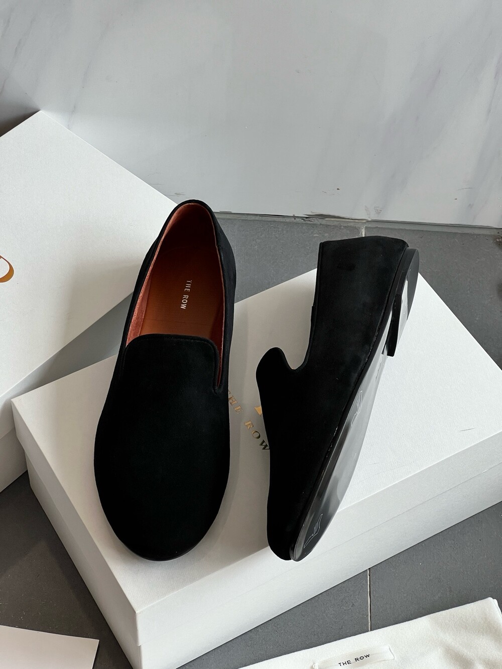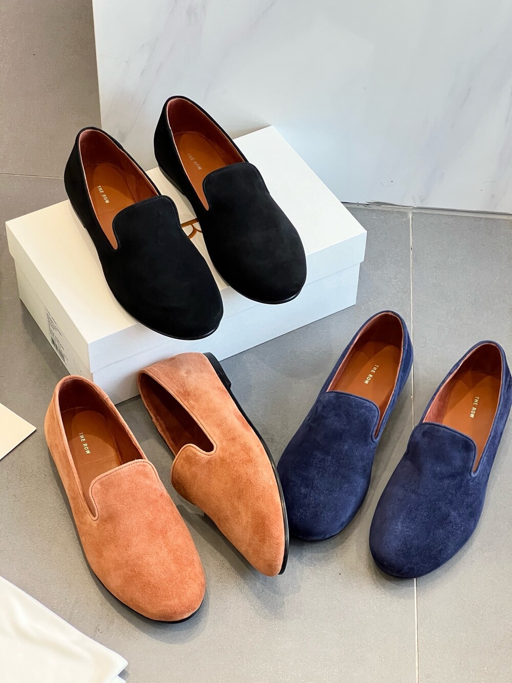 The row Tippi suede loafers